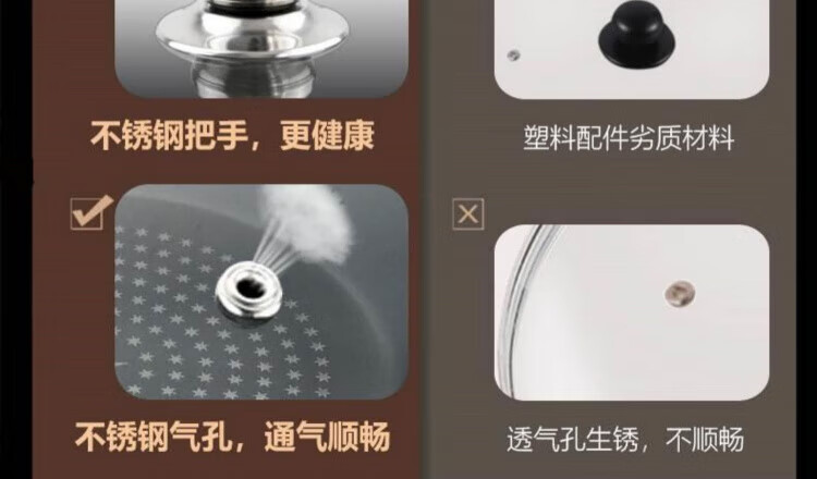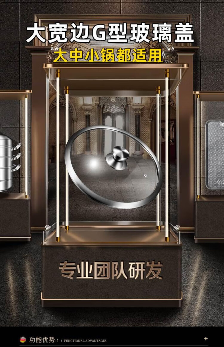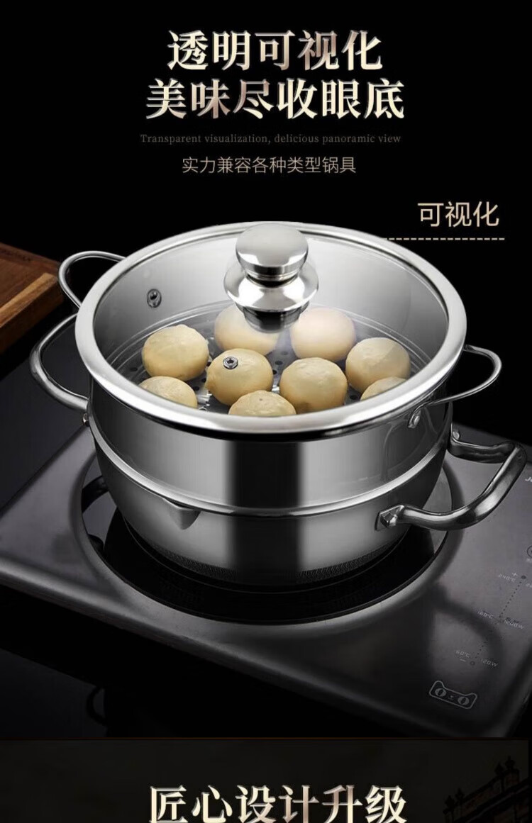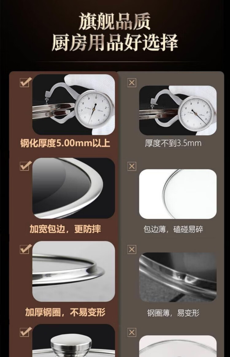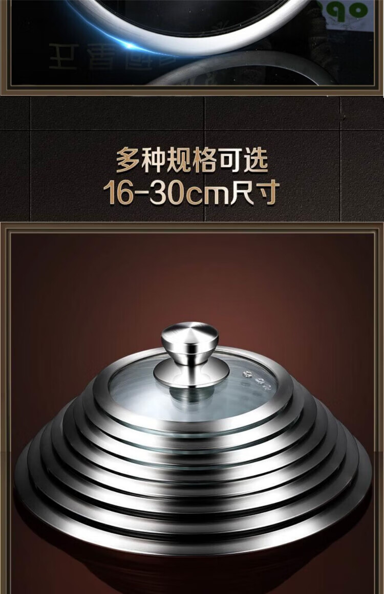 JCZS German brand pot lid household tempered glass 32cm wok 30/28 stainless steel steamer high temperature resistant lid thickened tempered/round handle 30cm glass lid (adaptive inner diameter 29.