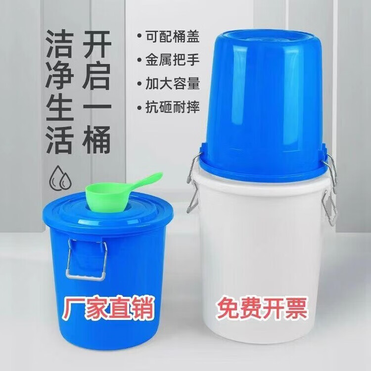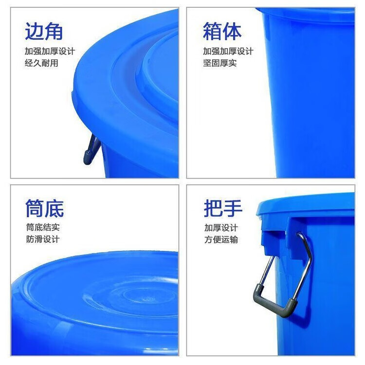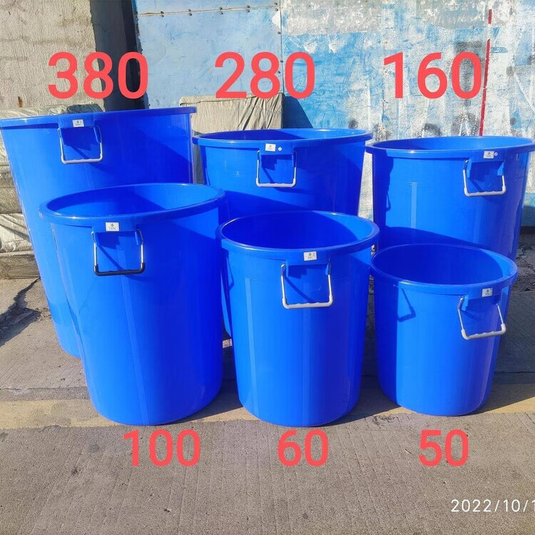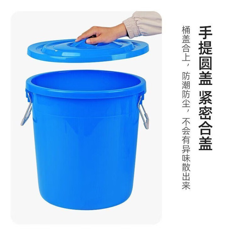 Diaohuang trash can thickened, strong, extra thick, large thickened round barrel, food grade water storage barrel, household plastic outdoor round commercial large capacity barrel, white lidless 60L thickened barrel