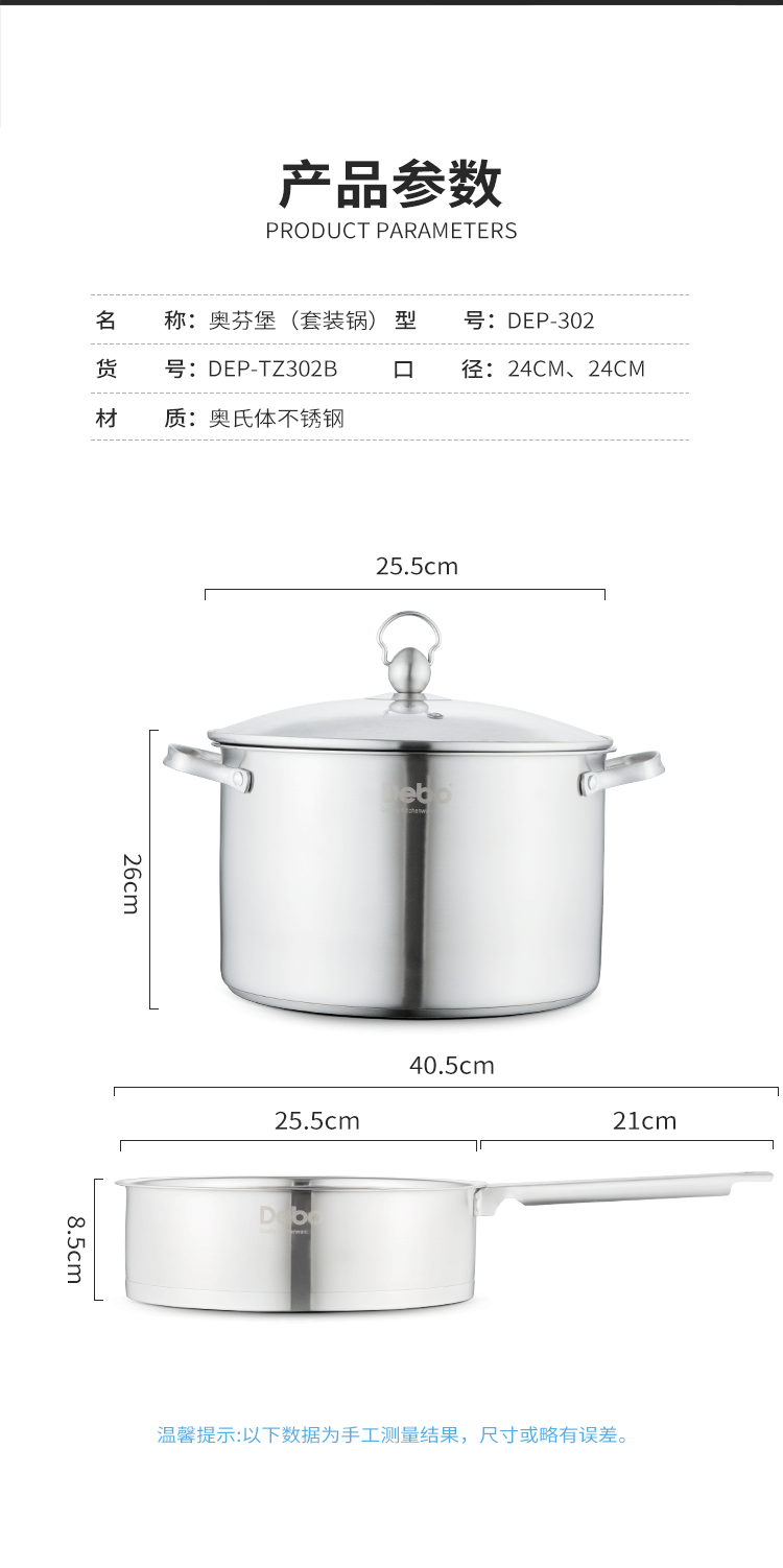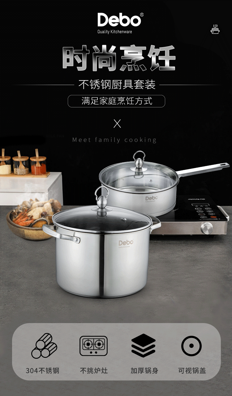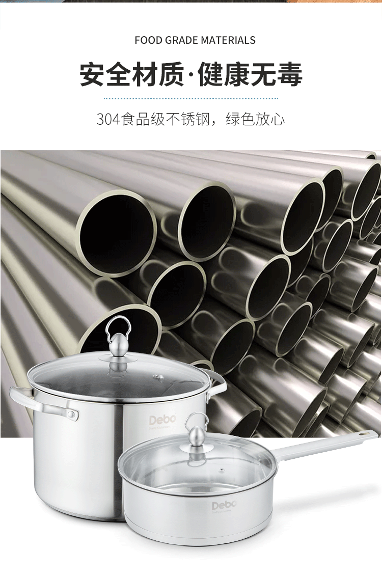 Debo Debo 304 stainless steel soup pot and frying pan set of two pieces