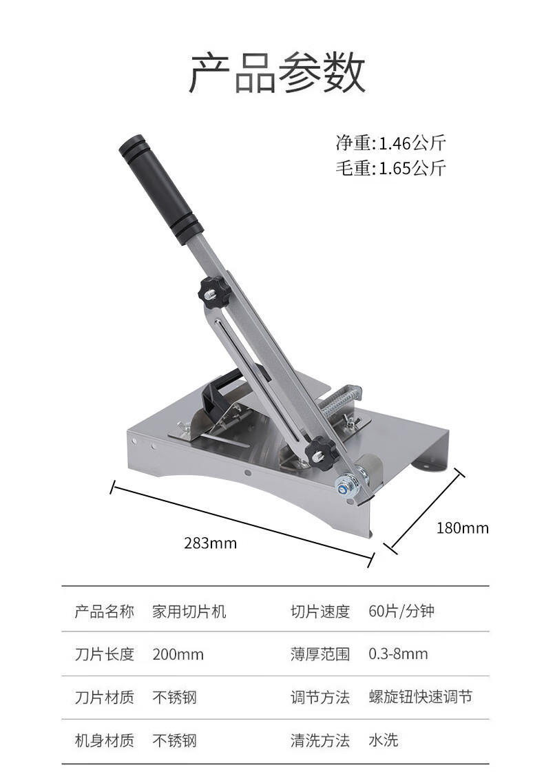 Jingyan meat slicer, mutton roll slicer, household meat slicer, fat beef 304 stainless steel, commercial guillotine meat slicer, easy to cut frozen meat, thickened 304 stainless steel + meat tray, reinforced bottom plate, meat jam does not slide, foam handle does not hurt your hands
