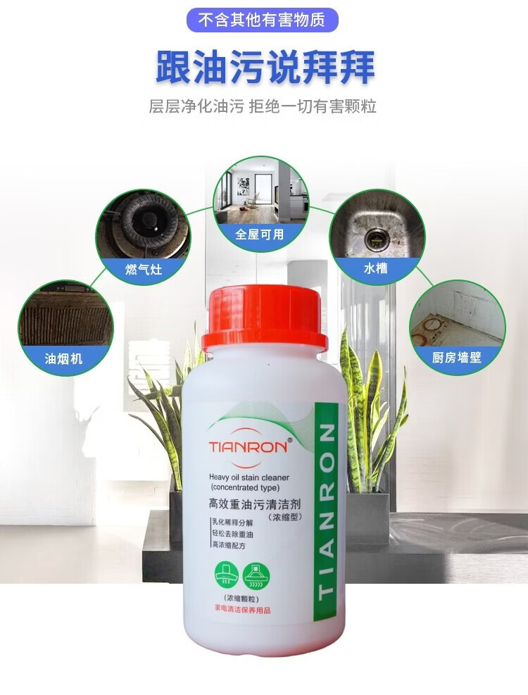 TIANRON high-efficiency heavy oil stain cleaning agent, range hood and stove heavy oil stain cleaner, oil stain cleaning powder, dedicated for home appliance cleaning service engineers, 1 bottle trial pack