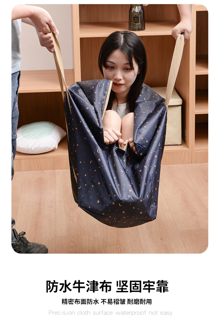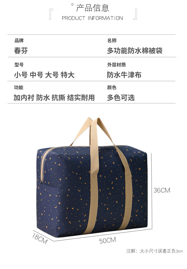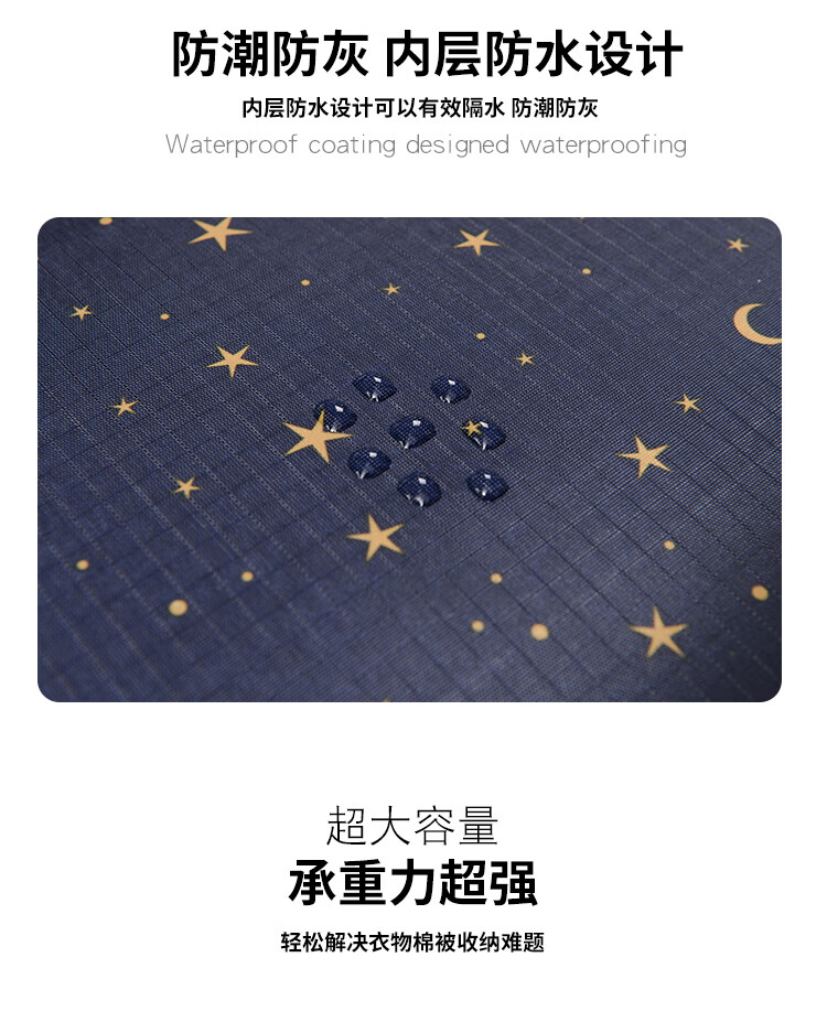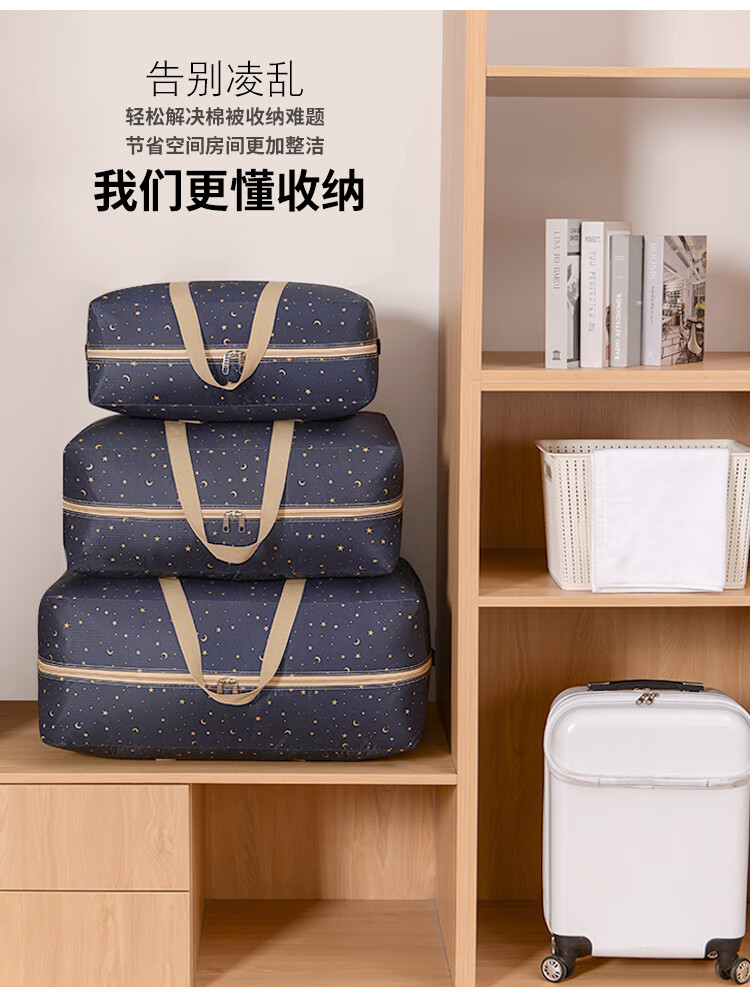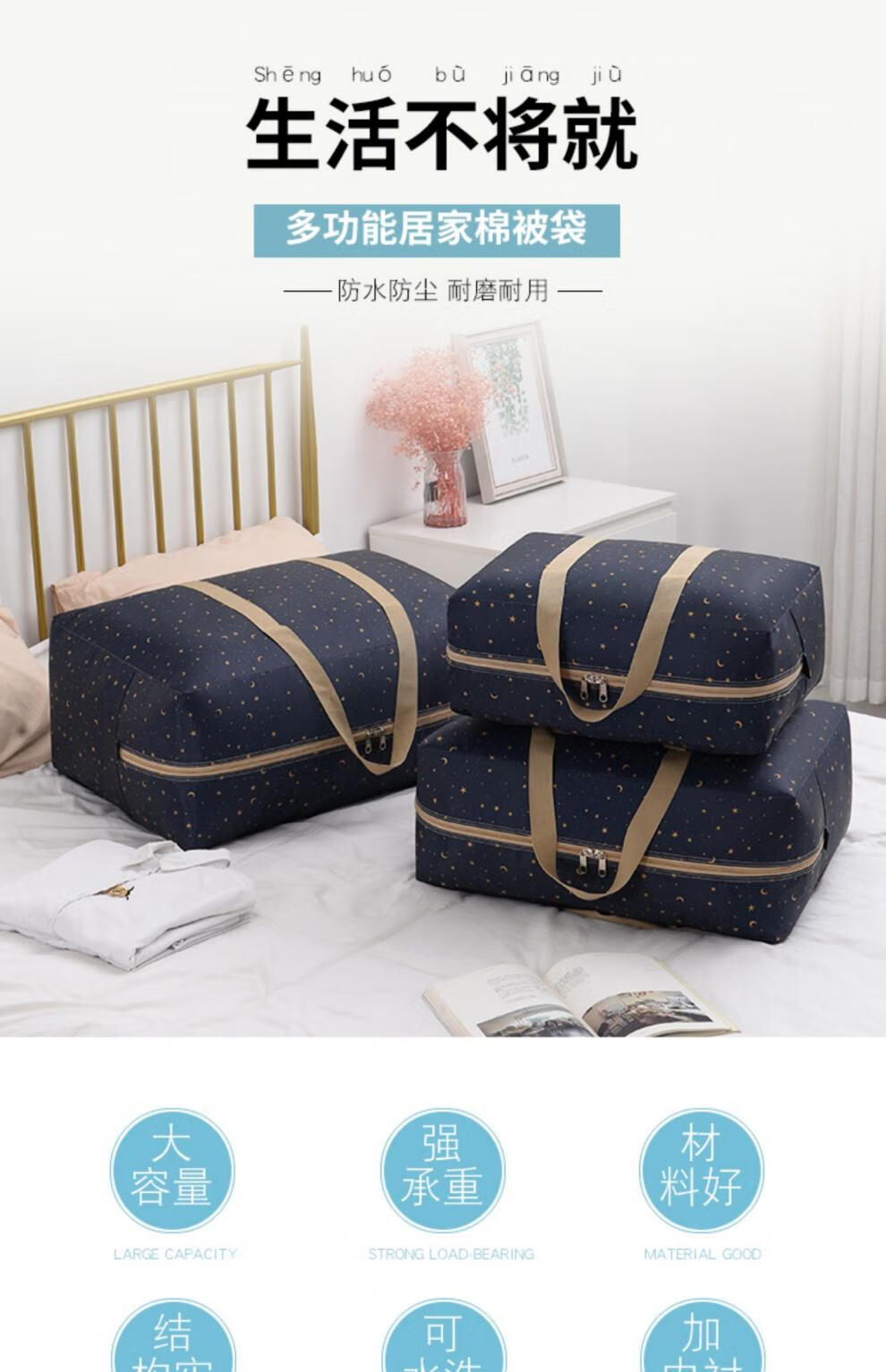 Shijanu waterproof Oxford cloth storage bag for quilts and clothing, home moving packaging, dark blue cat, small size 50*38*18, double layer inside, 35 liters