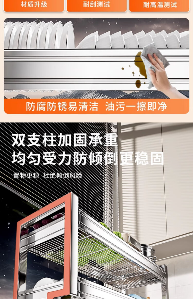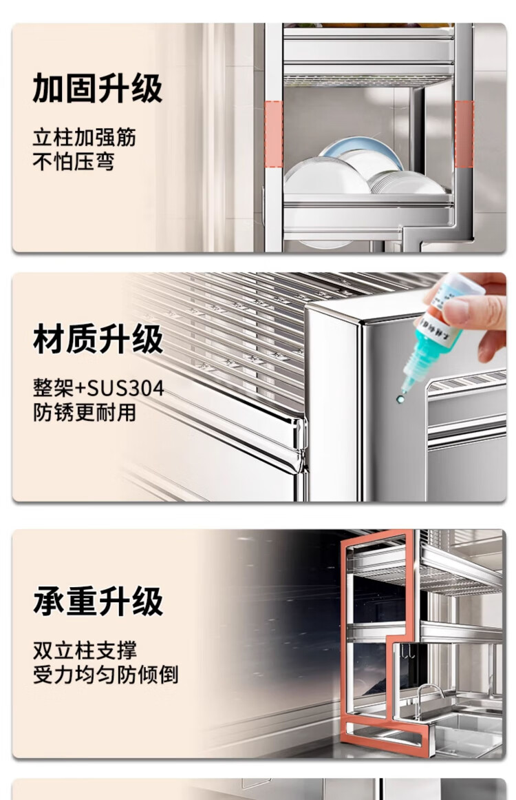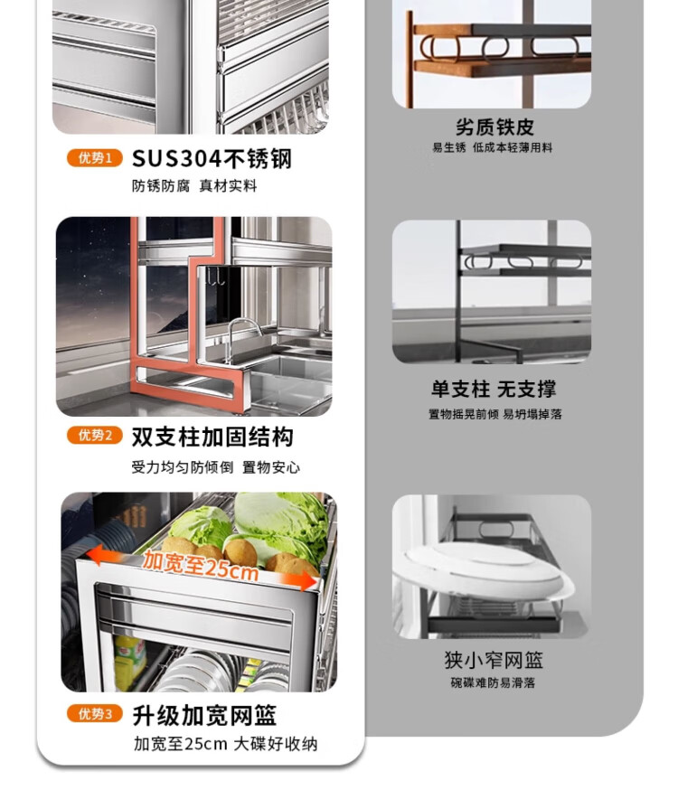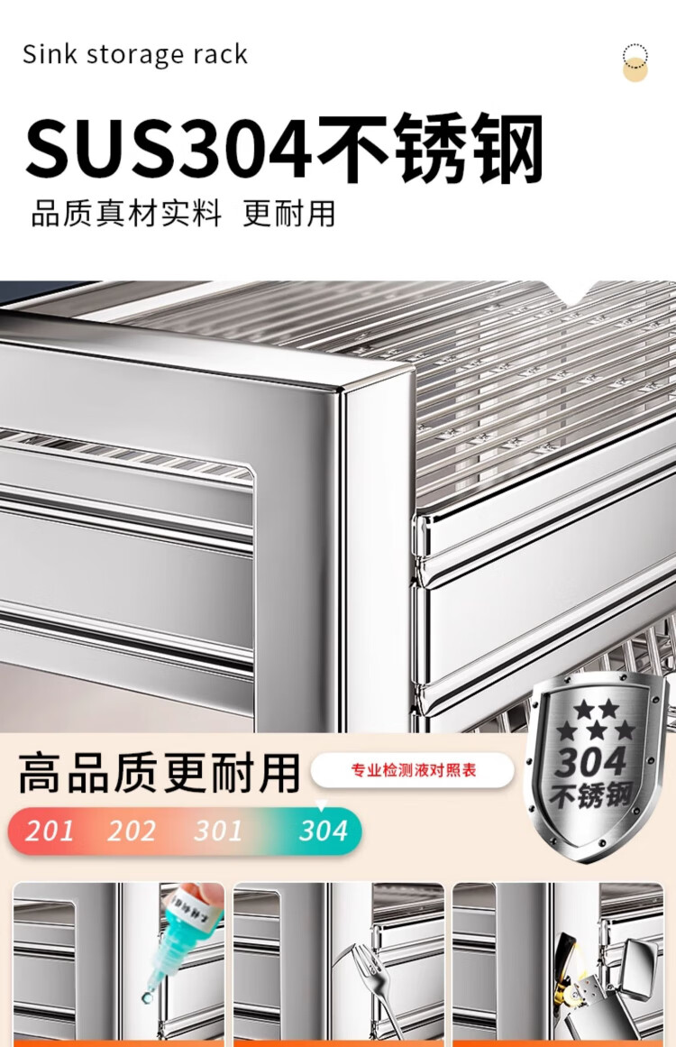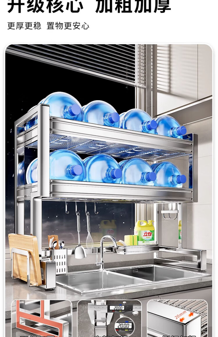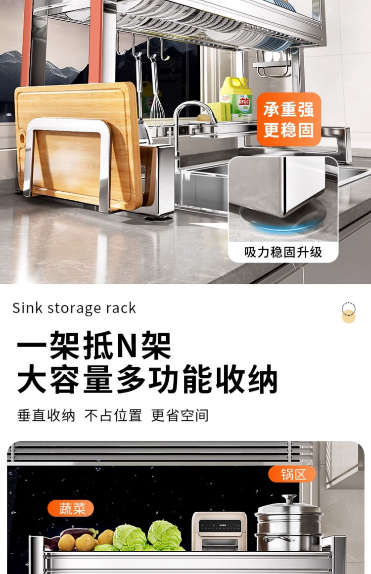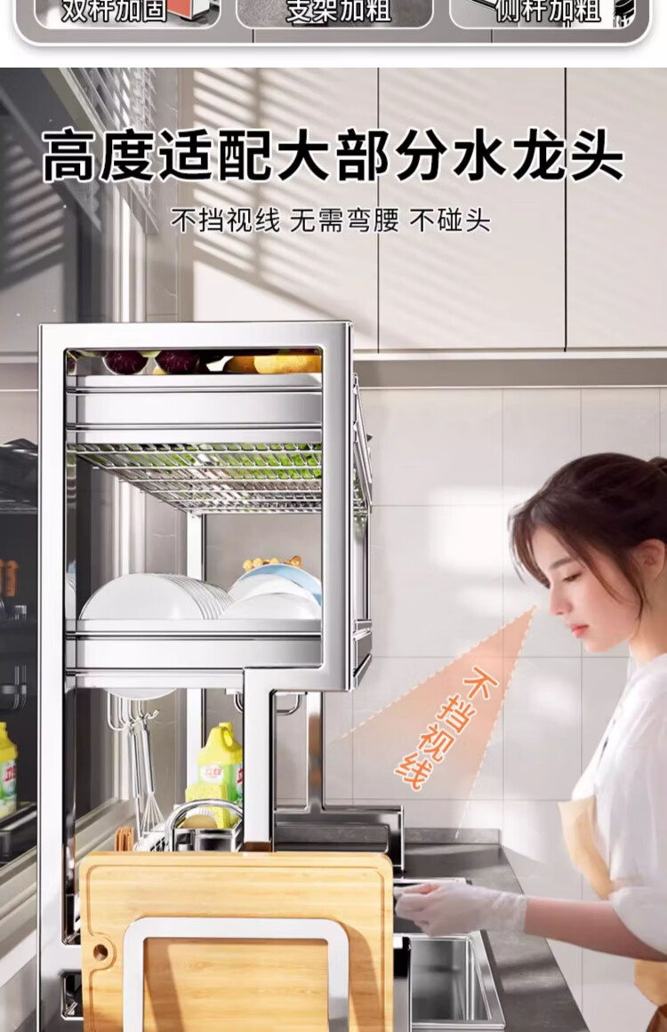 Benwang (BW) stainless steel thickened kitchen sink storage rack drain rack sink side drain basket countertop sink dish storage rack double layer thickened 304 stainless steel 66cm free five-piece set