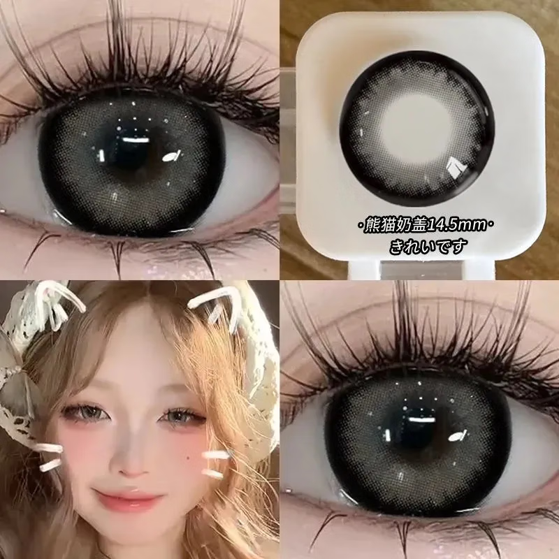Color Contact Lenses 14.5mm Large Diameter Half Yearly Disposable 2-Pack Comfortable Expanded Clear Moisturizing Color Contact Lenses Panda Milk Cap 14.5mm 0 Degree