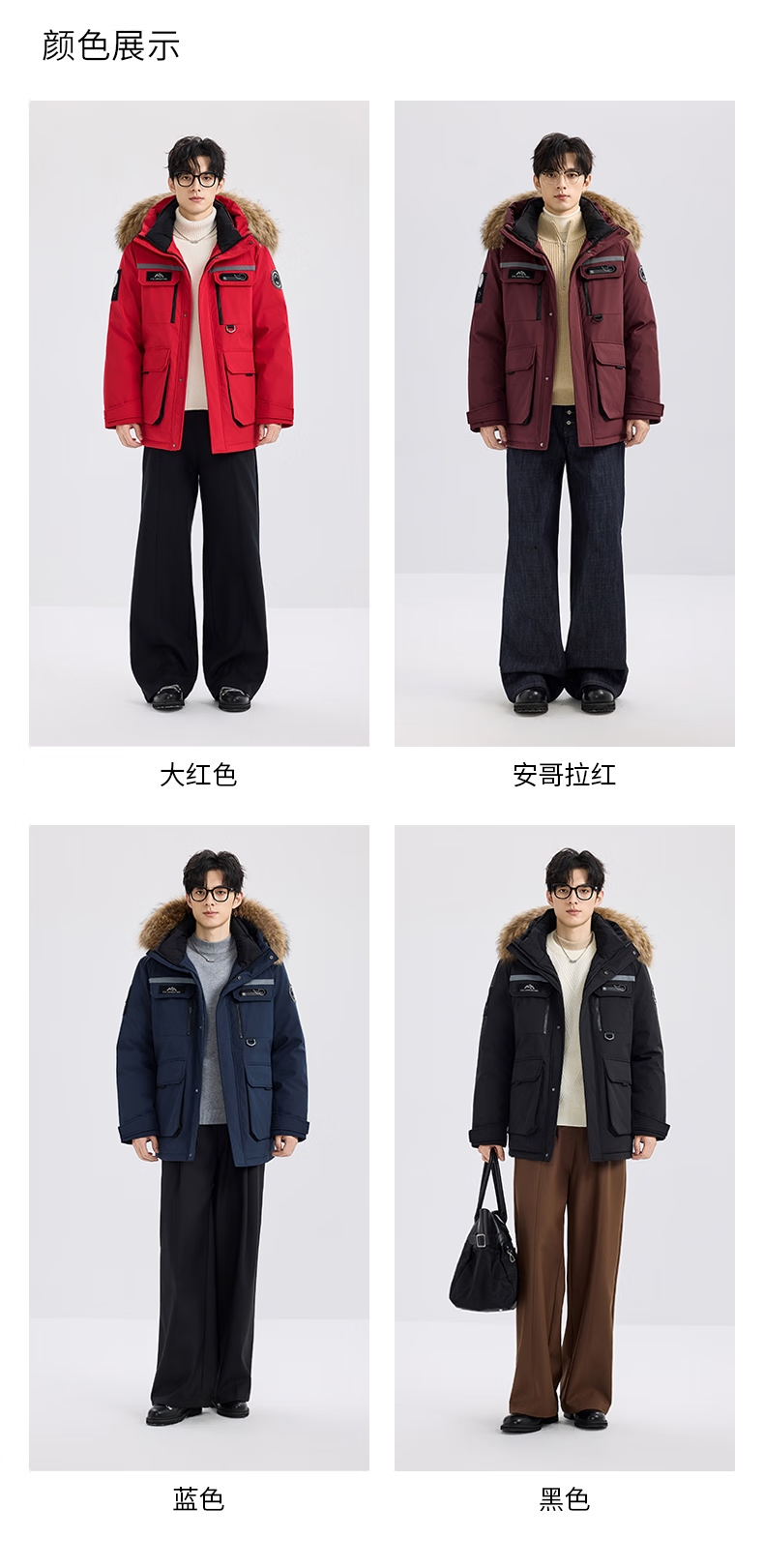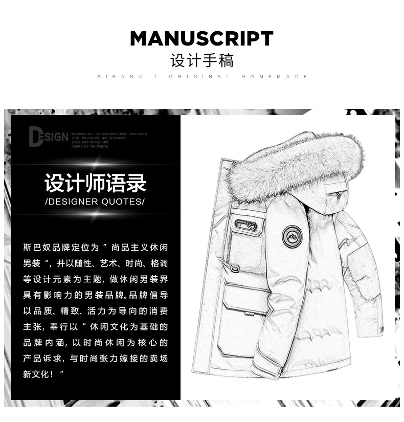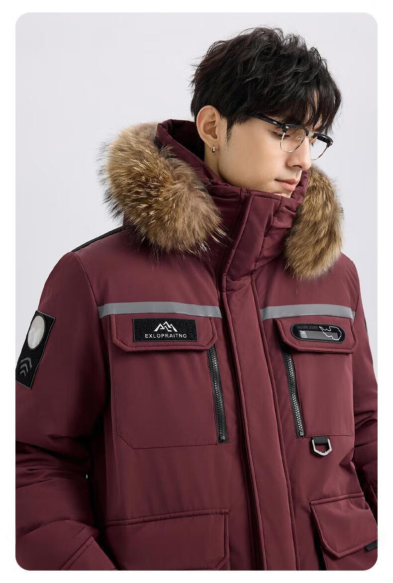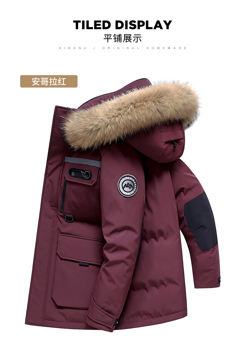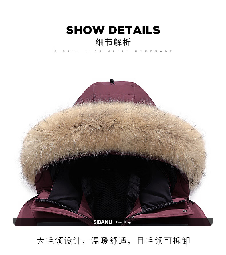 Spanu 90 white goose down up to 202g I arctic thickened down jacket for men and women mid-length 2025 winter new fur collar coat 89996I blue I arctic 90 white goose down L /175