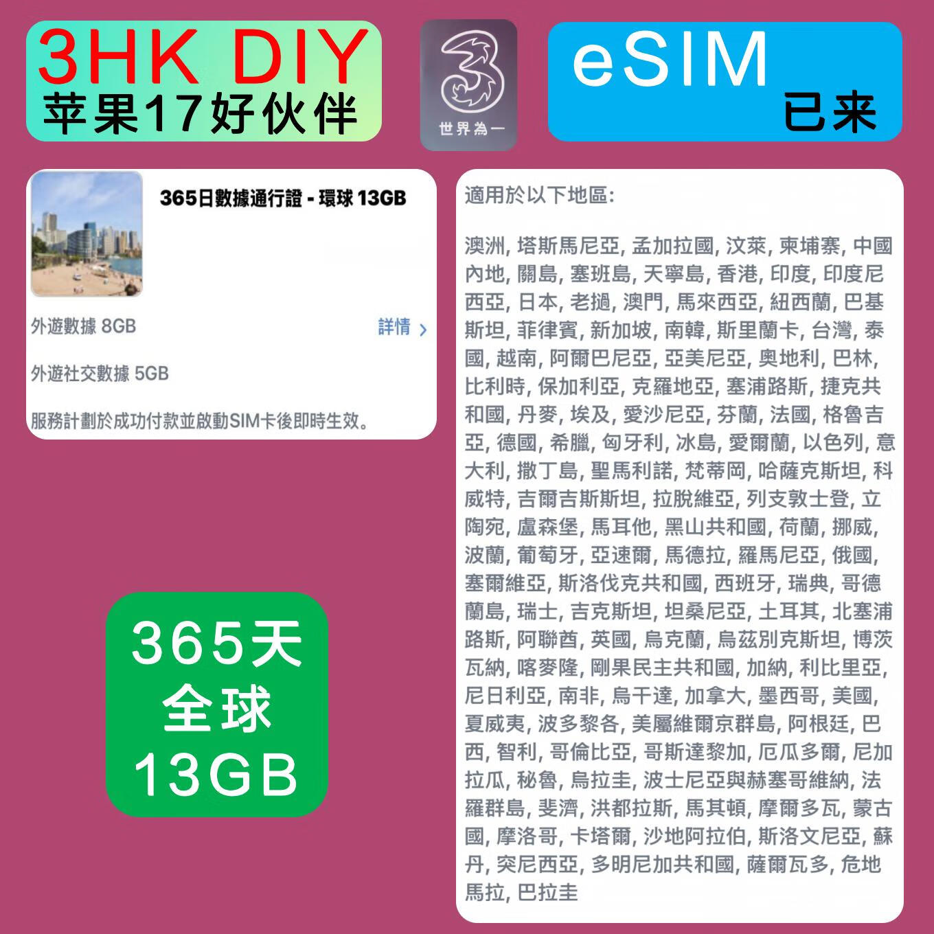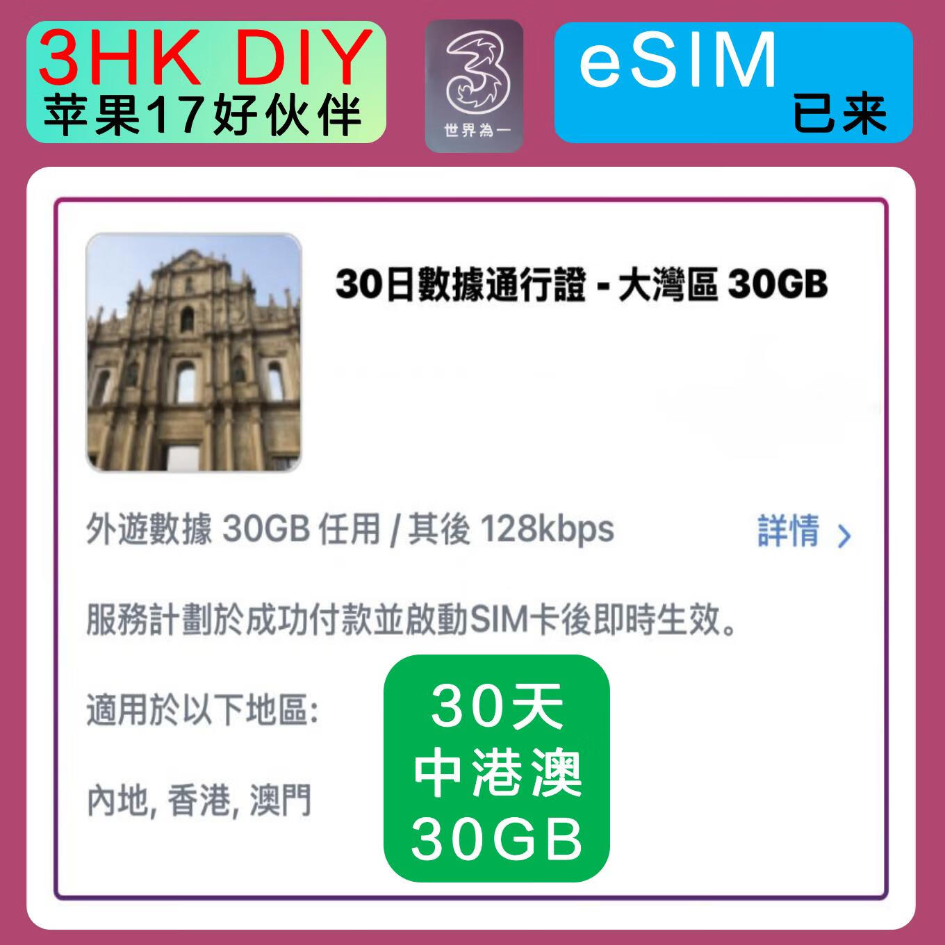 3HKDIY eSIM Hong Kong phone card traffic card Internet card US and Hong Kong version iPhone17 Apple external board esim 40G general traffic + 5GB directional traffic esim (not supported by the National Bank)