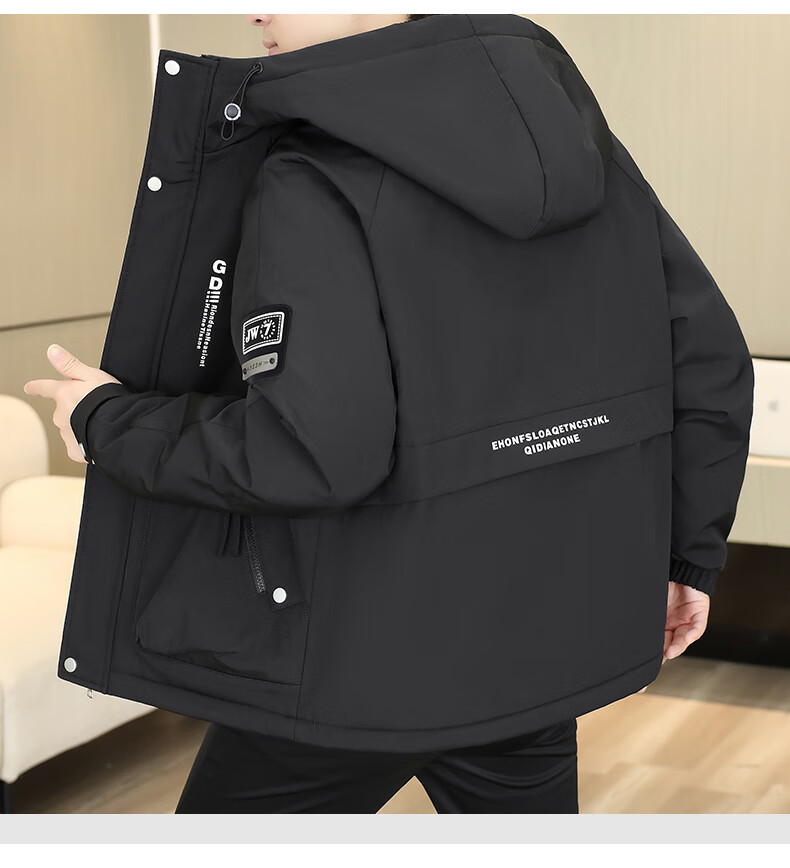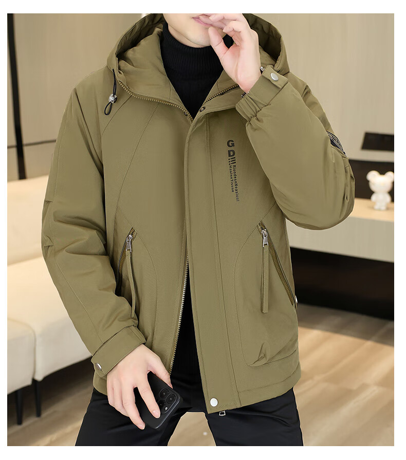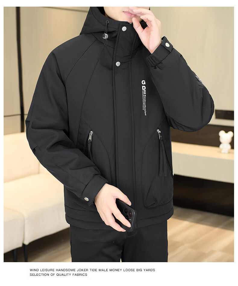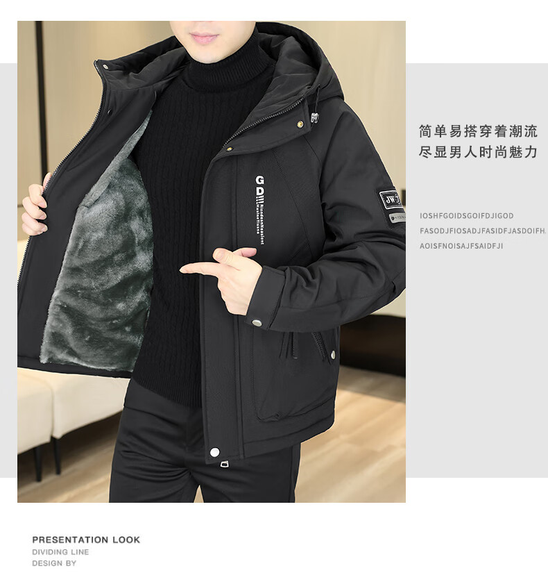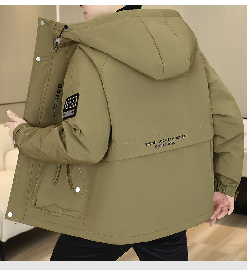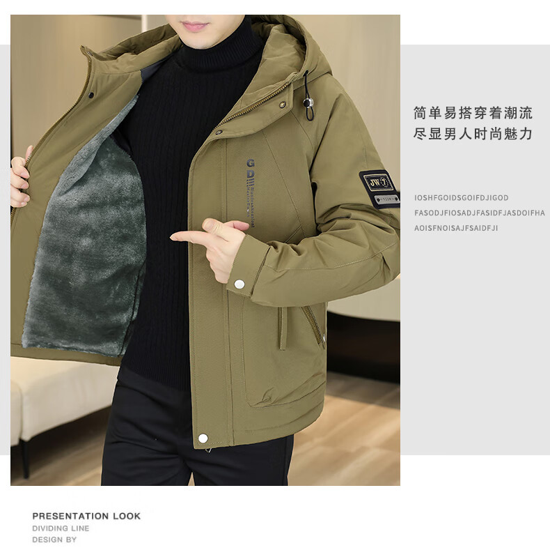 Woodpecker winter new velvet thickened hooded jacket men's loose casual parka winter fashion cotton jacket 8802 khaki velvet thickened 2XL 150-165 catties