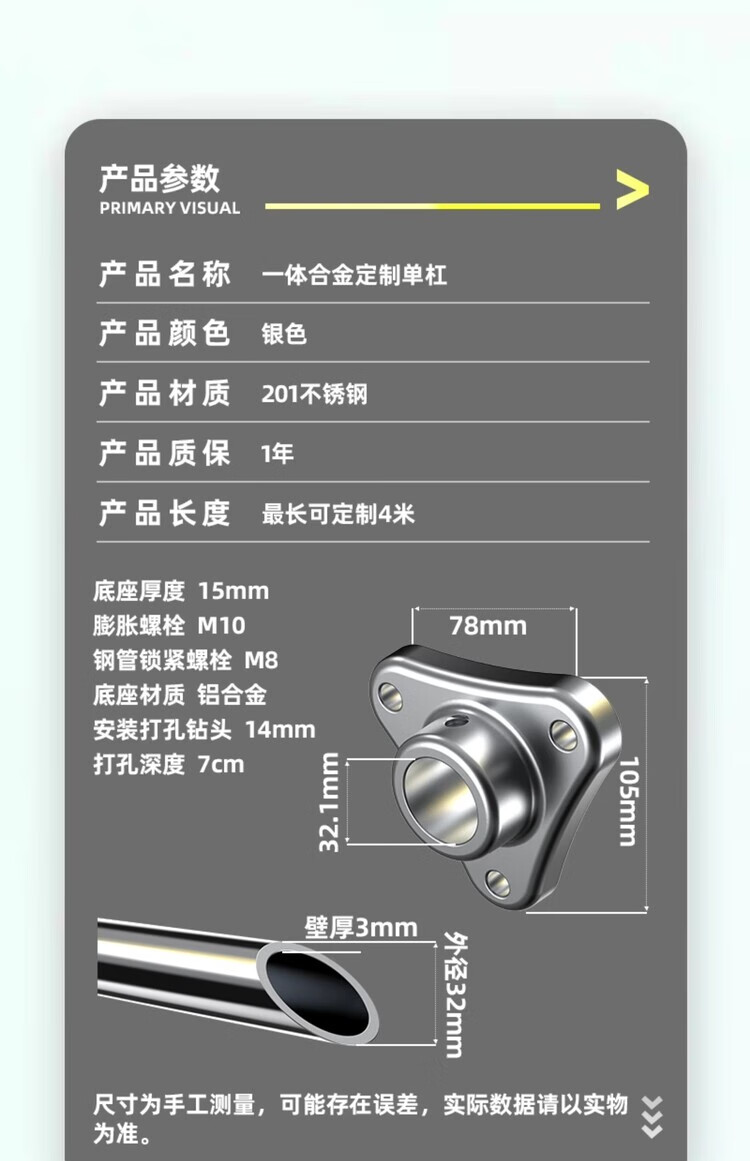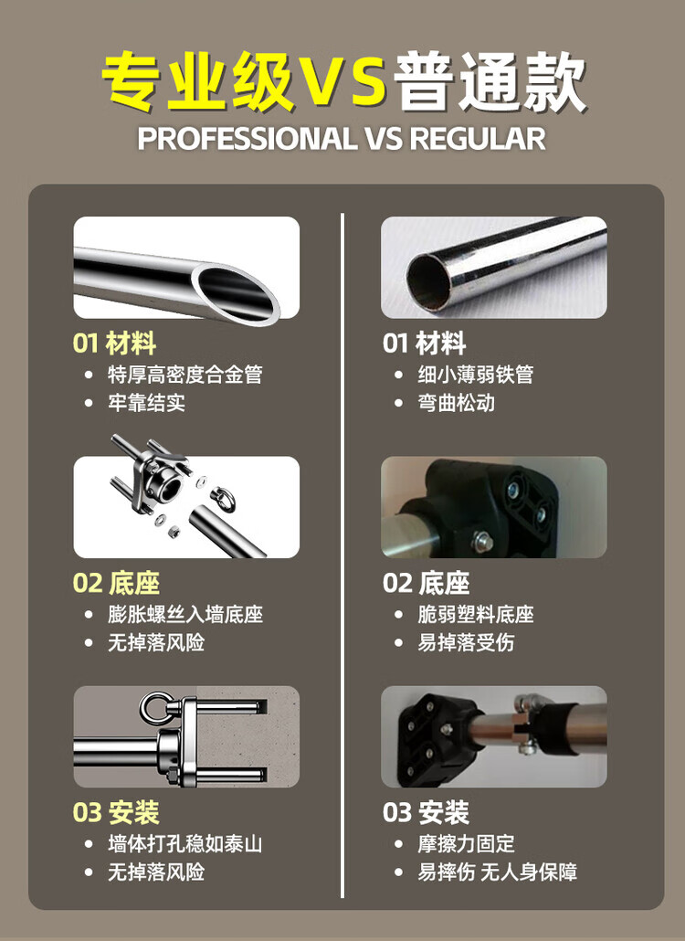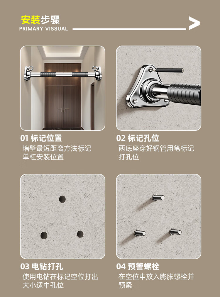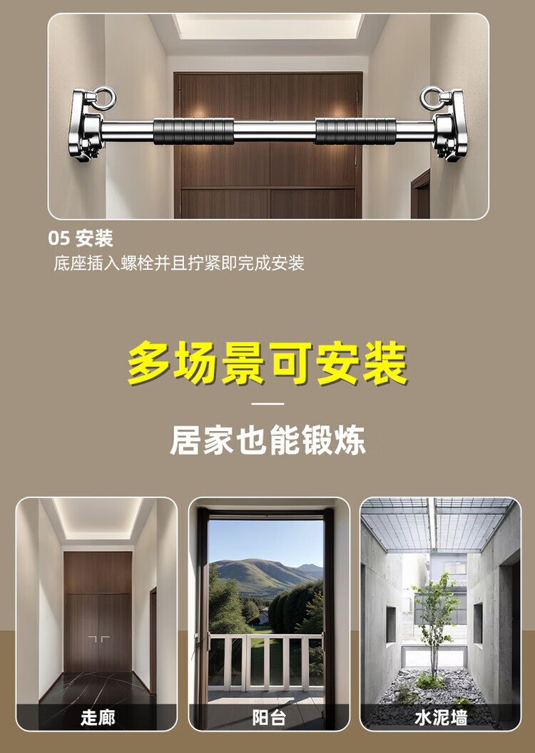 Self-tourist punched horizontal bar pull-up rack boom indoor home wall fixed wall home aisle fitness equipment stainless steel 60-70cm expansion screw punched fixation + children's hanging ring