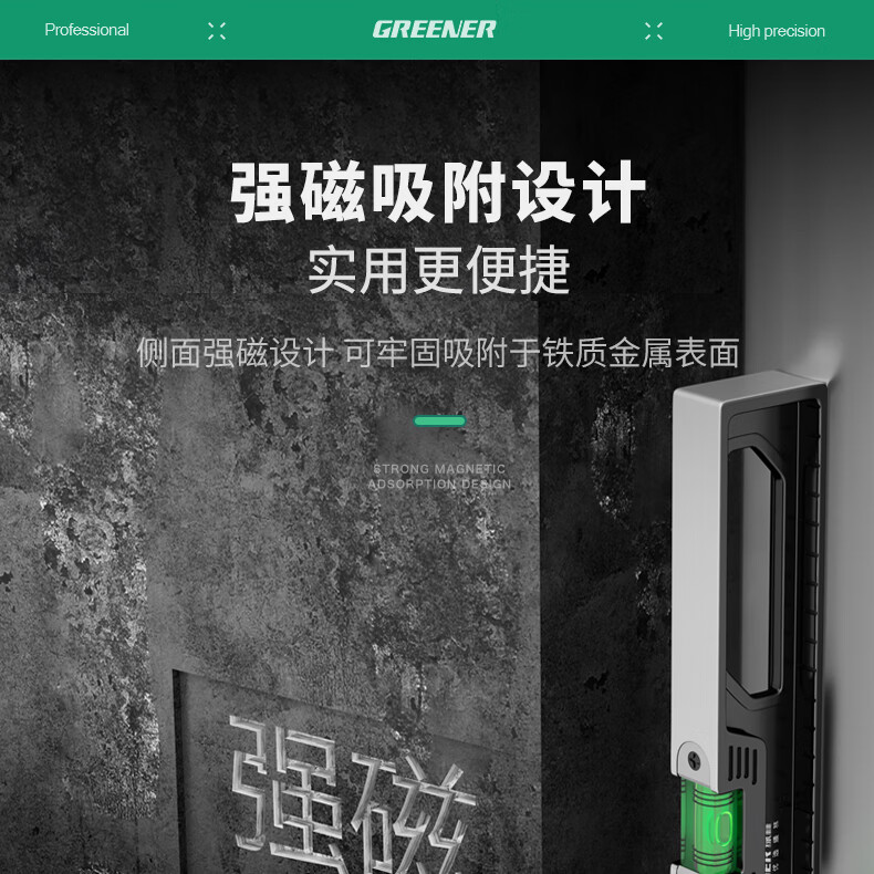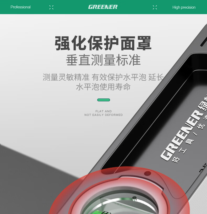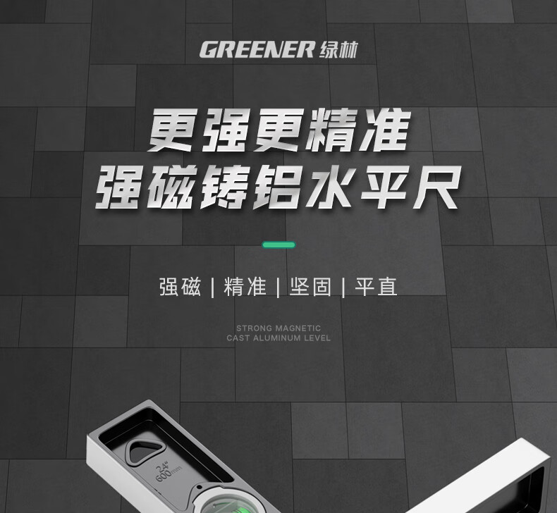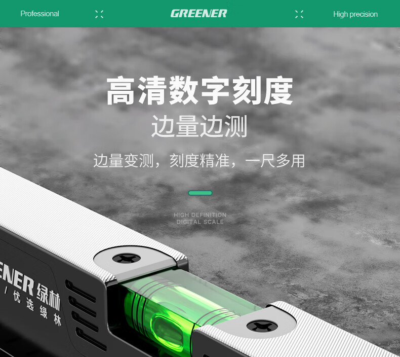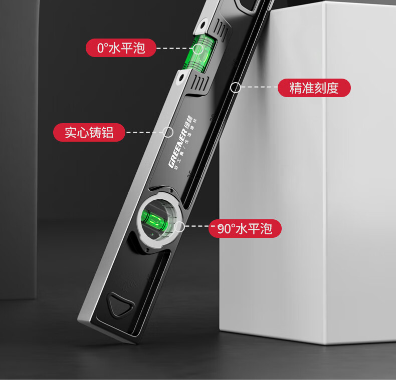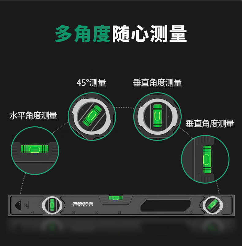 Green forest level high-precision household leveling instrument tool fan small strong magnetic ruler solid anti-fall multi-function ruler 300mm solid cast aluminum non-magnetic industrial grade high precision