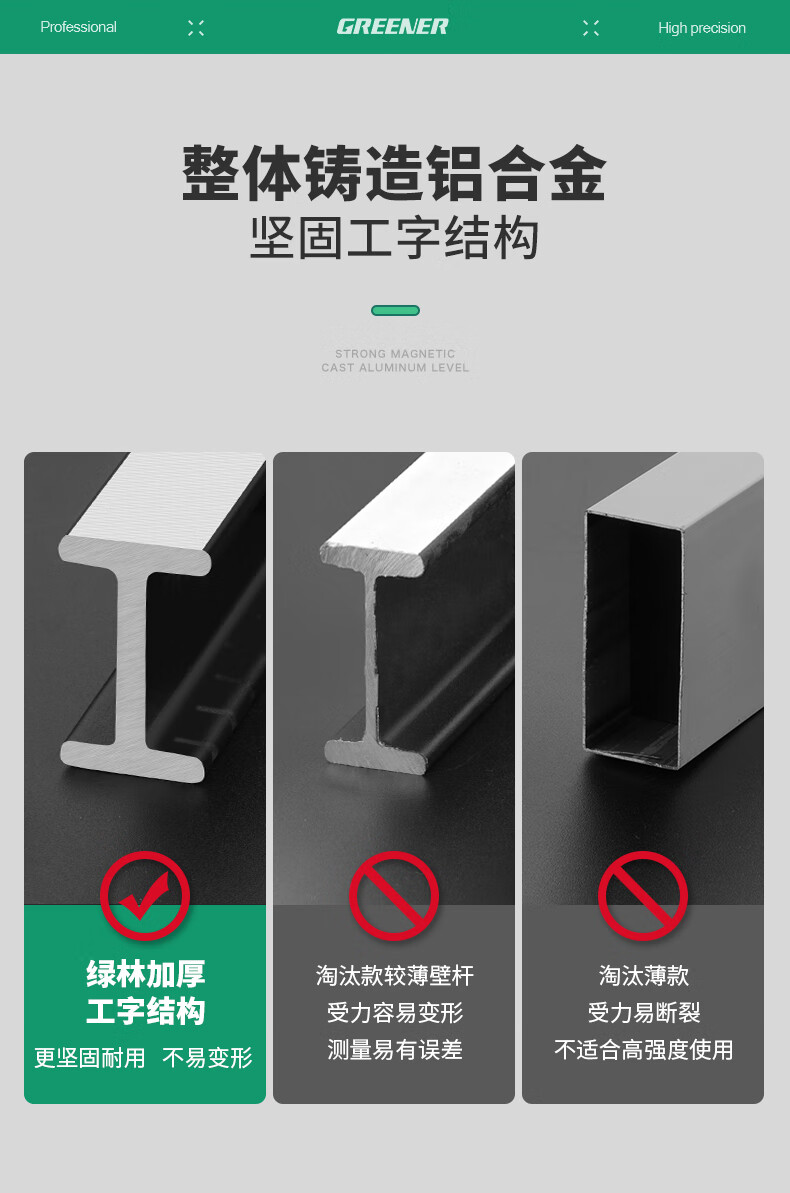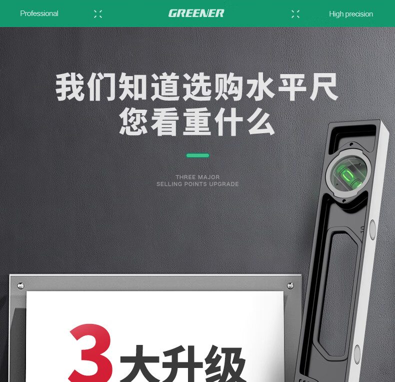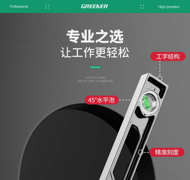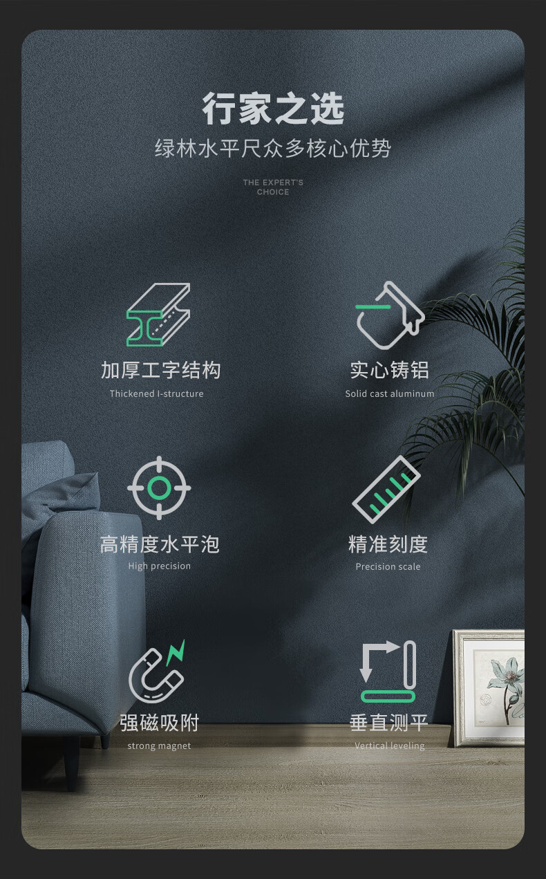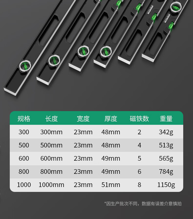 Green forest level high-precision household leveling instrument tool fan small strong magnetic ruler solid anti-fall multi-function ruler 300mm solid cast aluminum non-magnetic industrial grade high precision