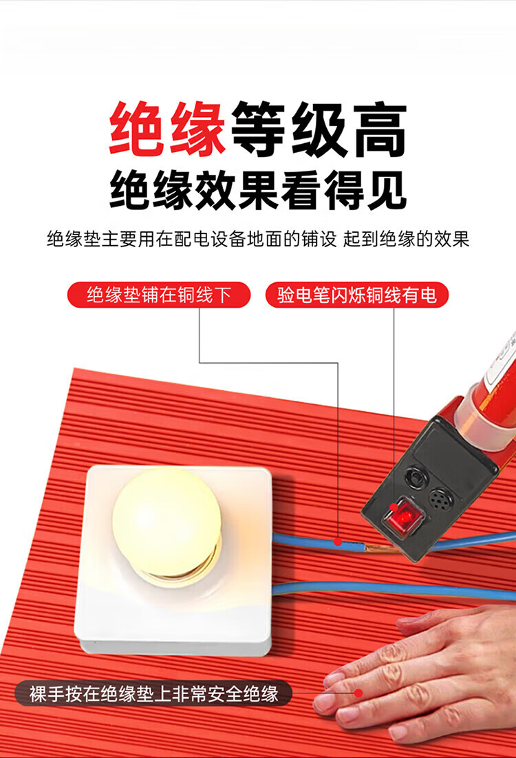 Insulating plastic mat 5mm power distribution room anti-high voltage floor mat power distribution room rubber mat 10kv rubber rubber sheet stripe 3mm 1.5m*10m red withstand voltage 6KV