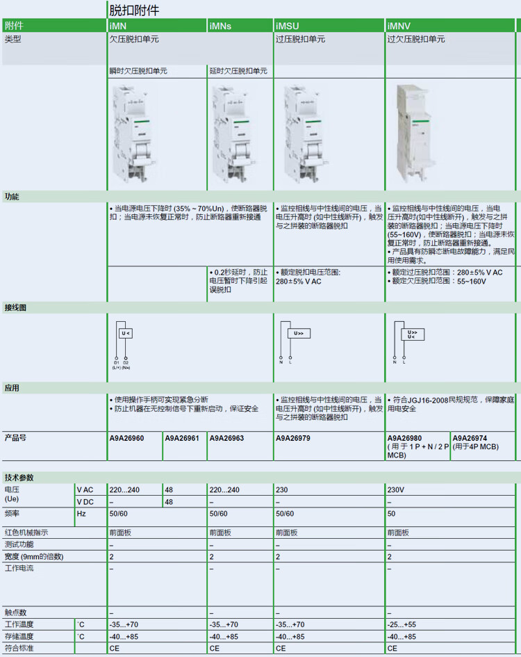Schneider IOF IMX/OF/SD/MN/MSU IC65 C120 shunt auxiliary alarm overvoltage and undervoltage ISD IOF_A9A26924_IC65N auxiliary contact