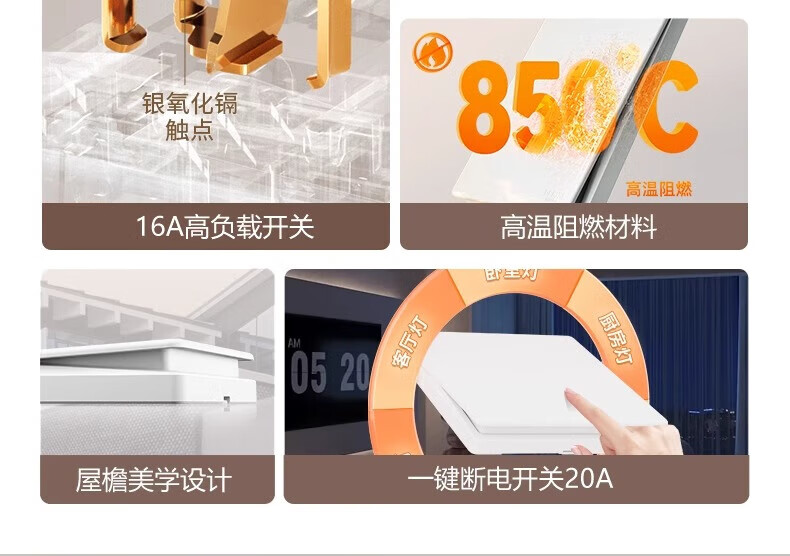 Official flagship cream style switch socket panel matte frosted 16A five-hole concealed 827 light cloud white human body induction gallery light