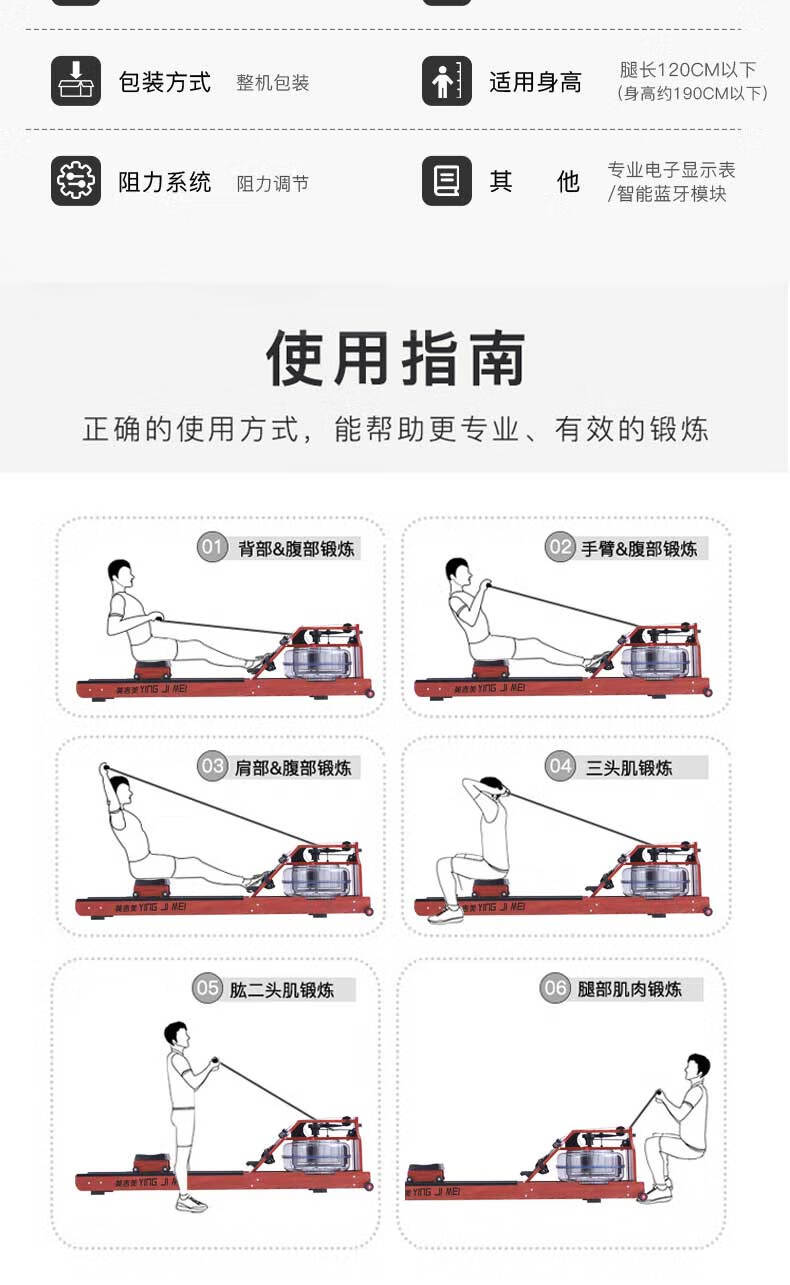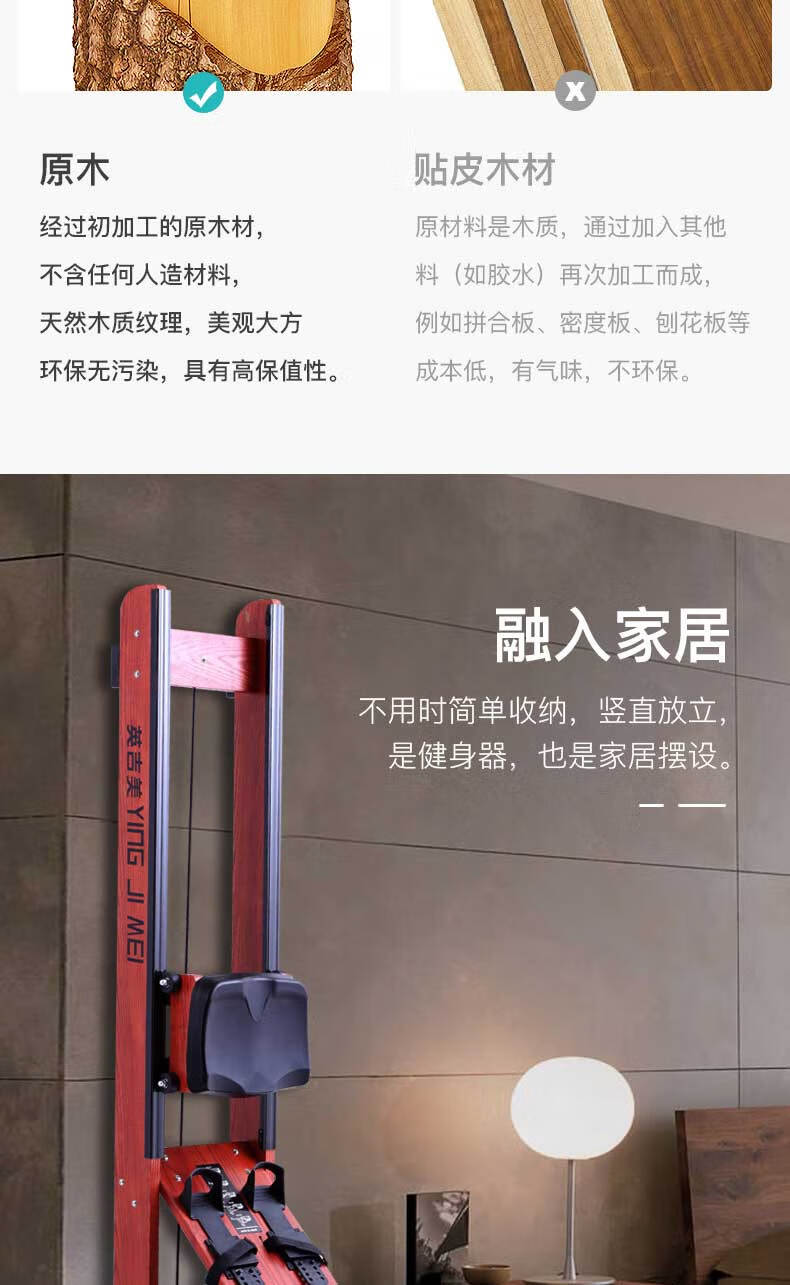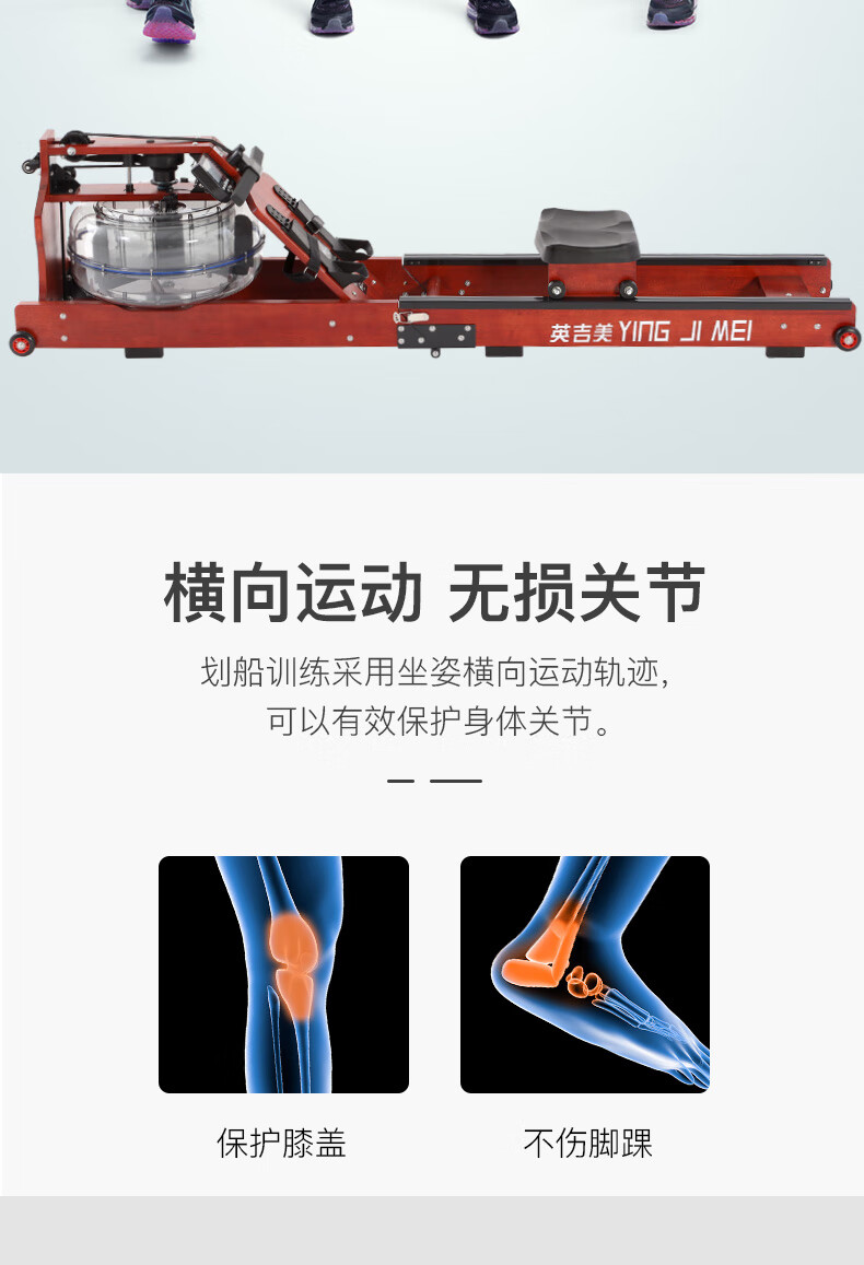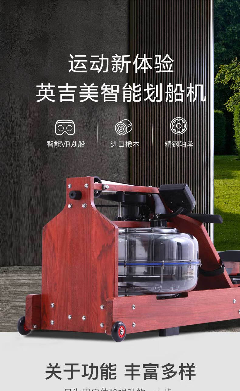 YINGJIMEI solid wood intelligent folding water resistance rowing machine home indoor fitness equipment card house water rowing machine special offer Russian imported solid wood + electric pump + water blue agent