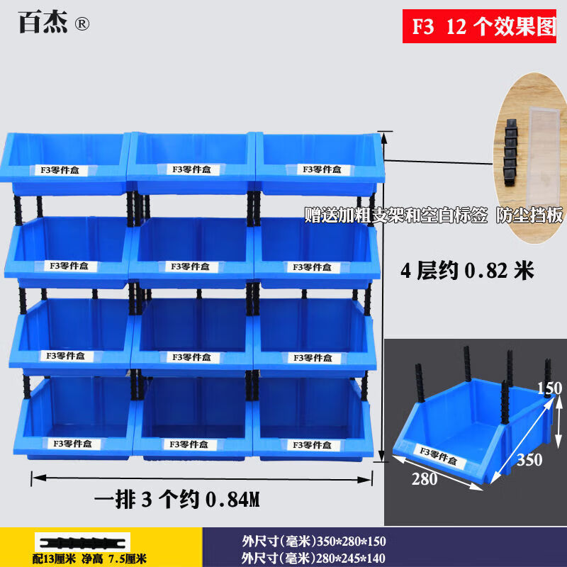 Shelf oblique parts box combined material box screw box plastic box component box classification storage box T3 number 270*165*140 a set of 24 red