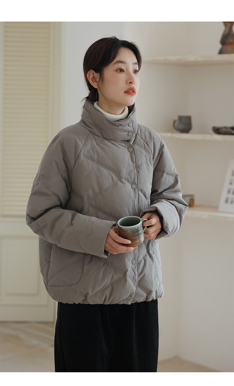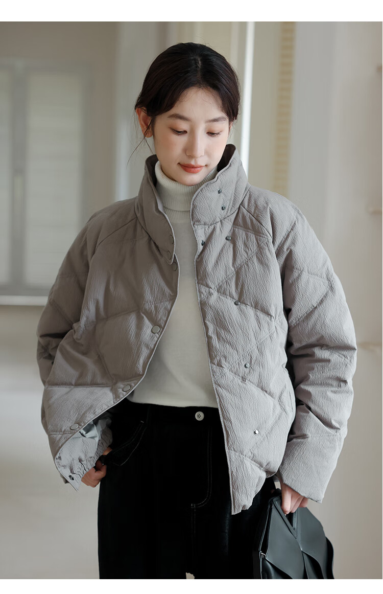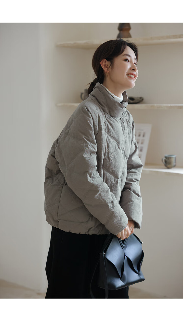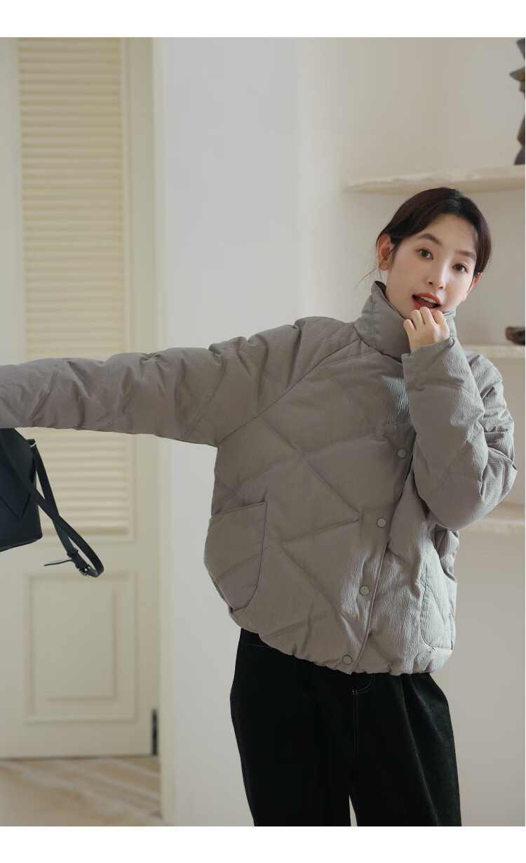 Keran Jian Zhiyan 5A grade white goose down texture high density cotton big goose down jacket warm jacket for women 2025 autumn and winter new style elephant gray S