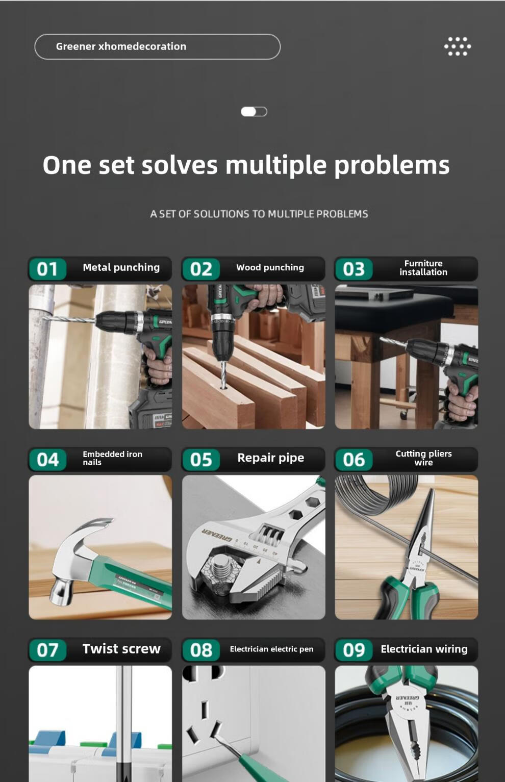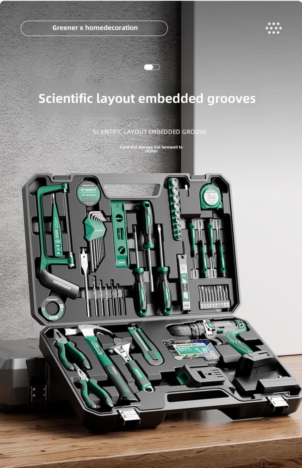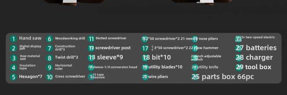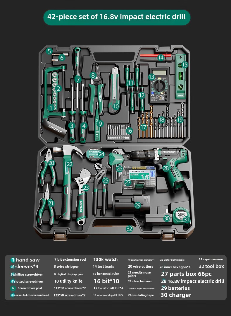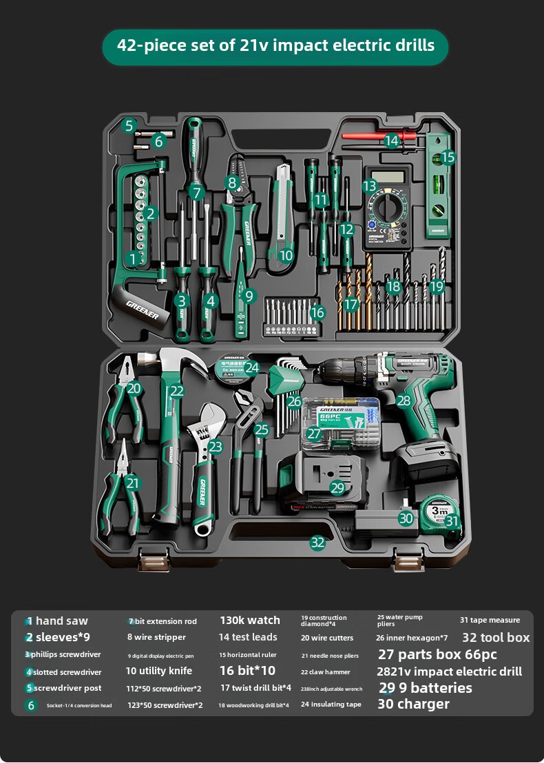 Green Forest Daily Home Hardware Tool Box Set Home Combination Electrician Special Maintenance Car Bracket Complete Set Drill Bit Set Free with Order 12V Dual Speed 34-piece Set