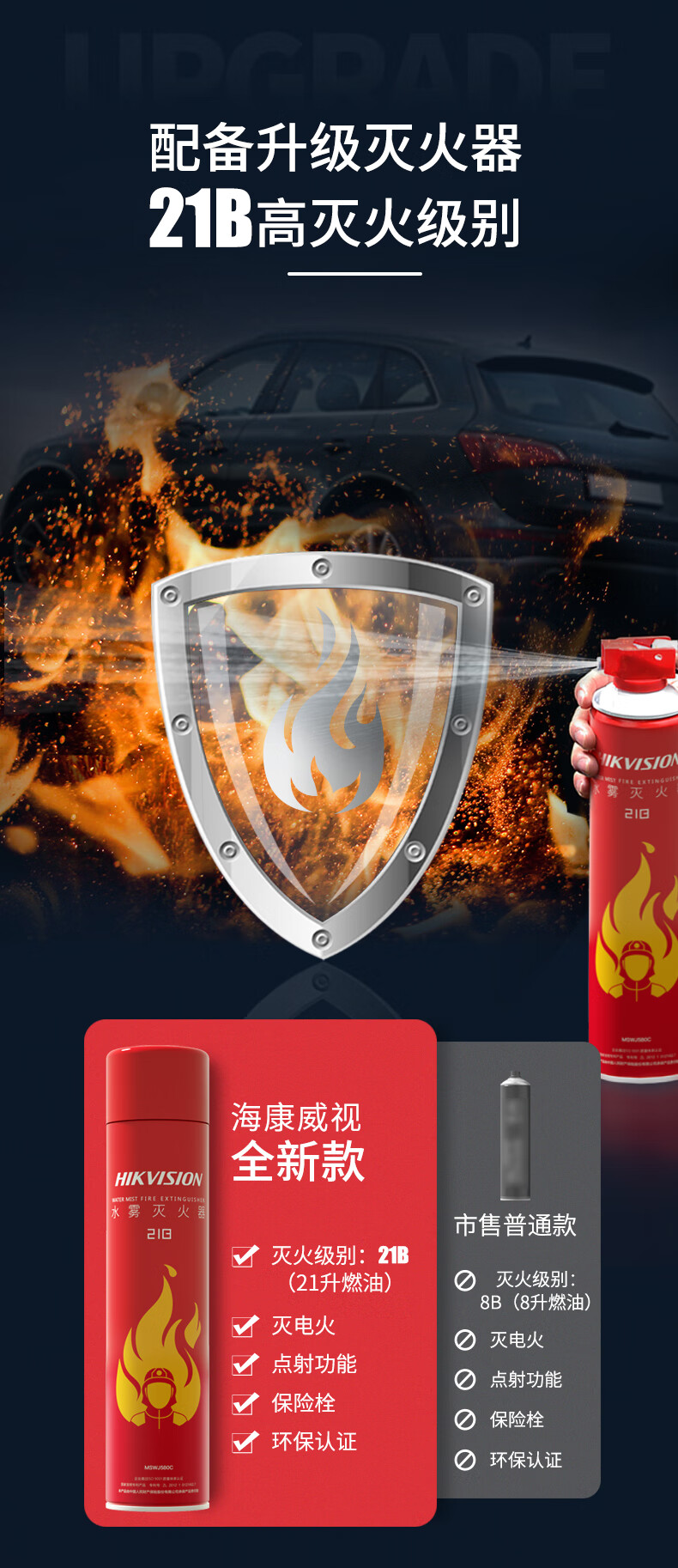 Hikvision car emergency kit fire extinguisher car fire rescue kit portable multi-functional car annual inspection kit 580ml water-based fire extinguisher