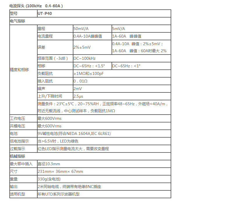 Unilide UT-P40 current probe 0.4-60A oscilloscope probe UT-P41 0.05-100A UT-P40