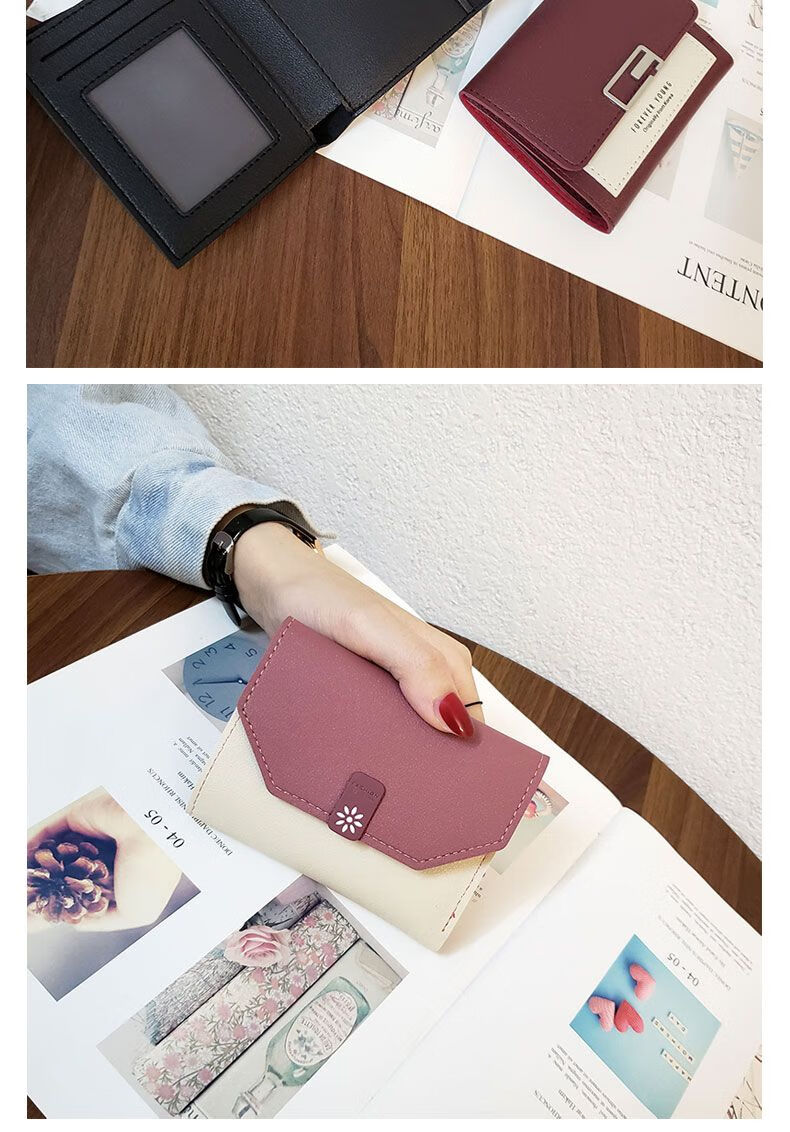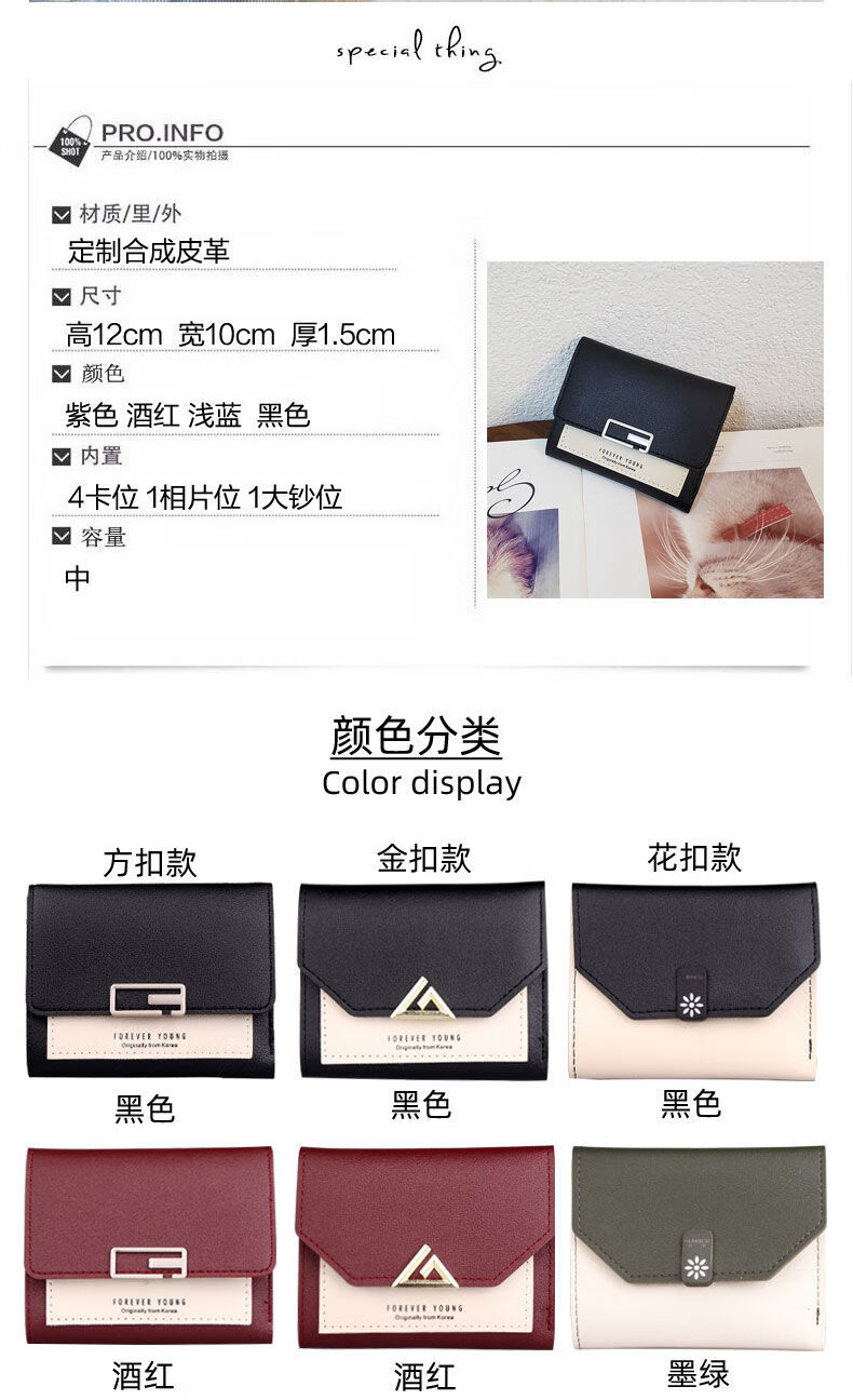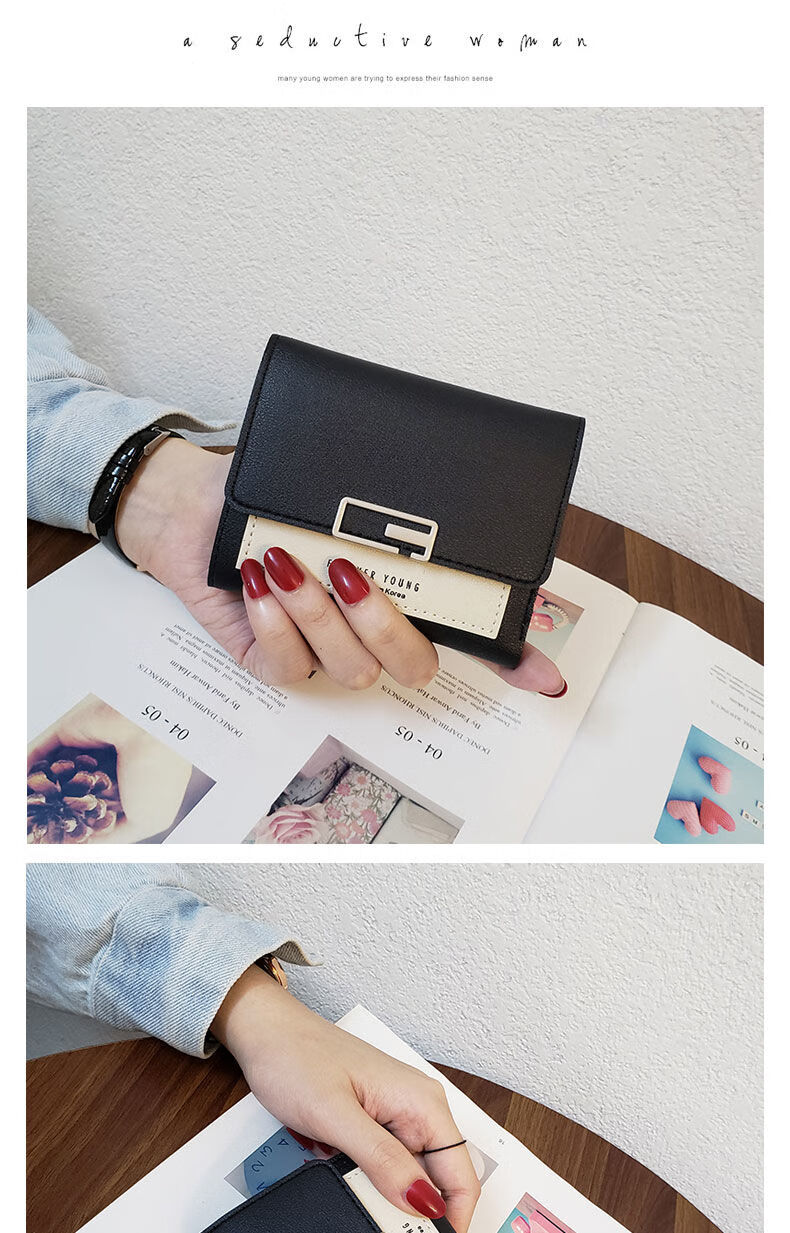 Ye Yu ins new Korean style square small wallet women's short folding simple fashion women's card holder mini coin purse 30% off - black (square buckle)