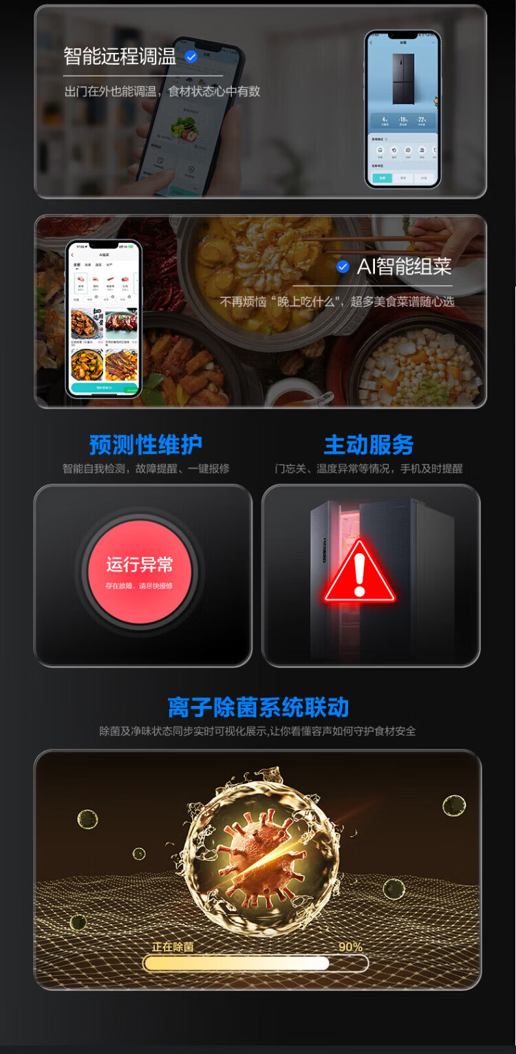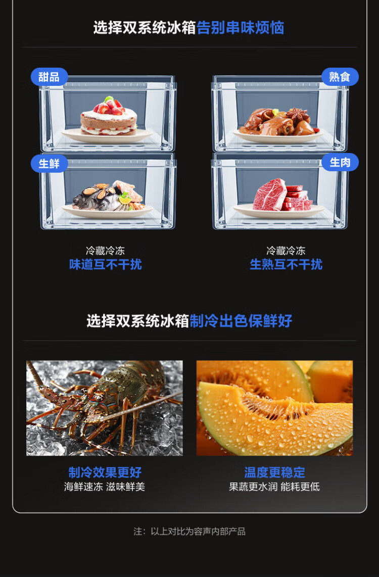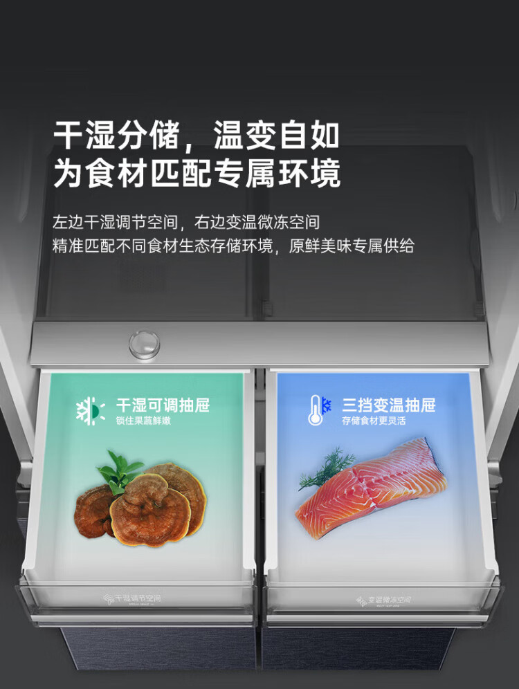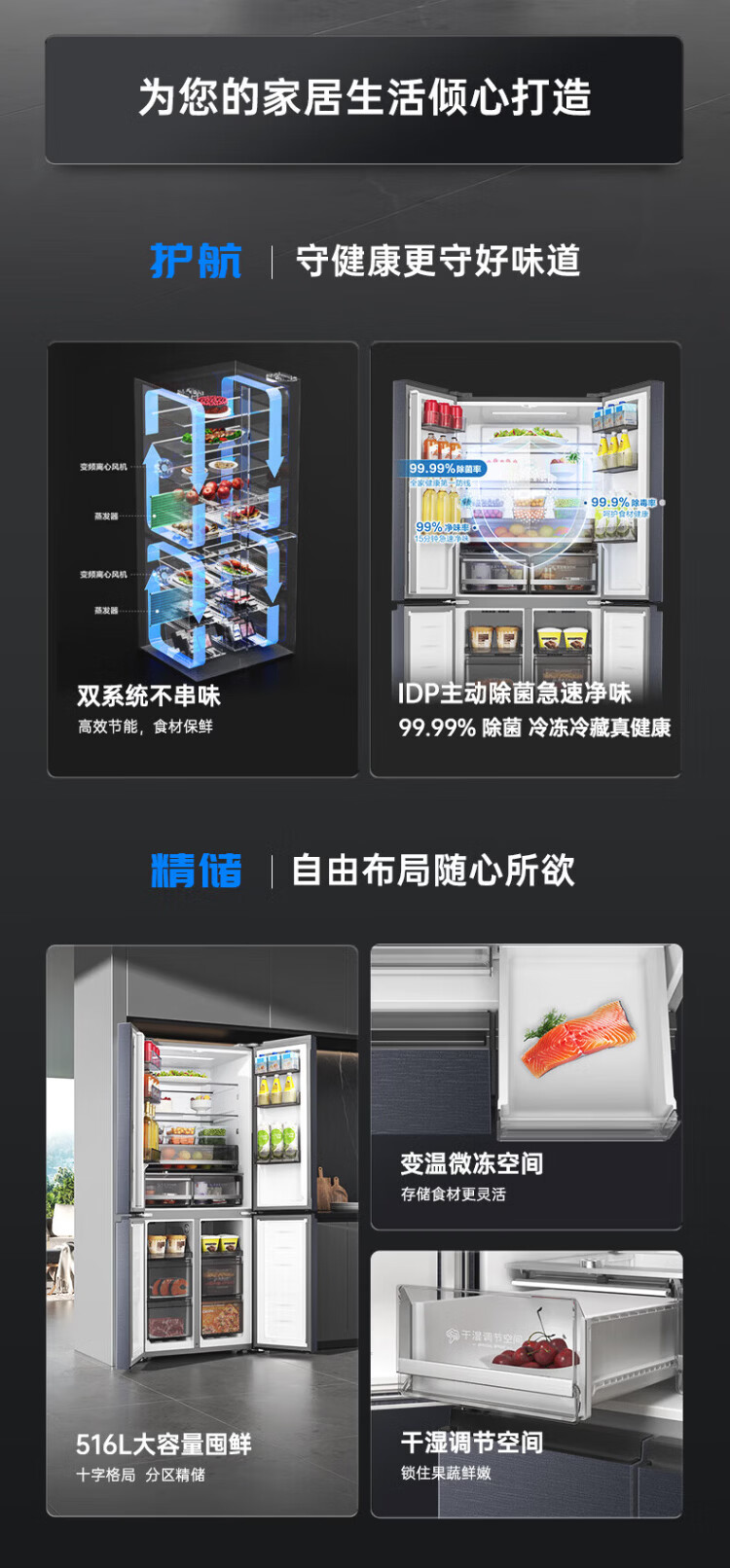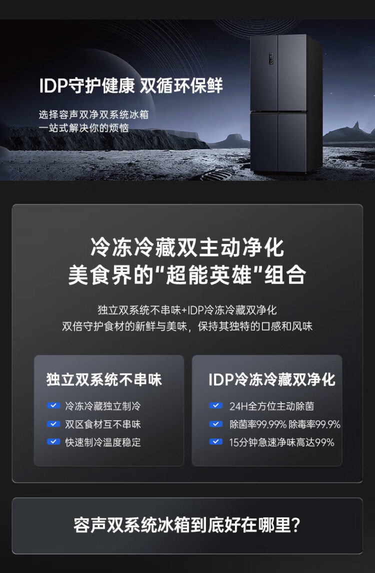 Rongsheng refrigerator 516 liter cross door refrigerator four door side by side dual system dual cycle refrigerator first class energy efficiency air-cooled frost-free frequency conversion energy-saving ultra-thin large capacity national subsidy 516L dual system active sterilization-BCD-516WD1FPA