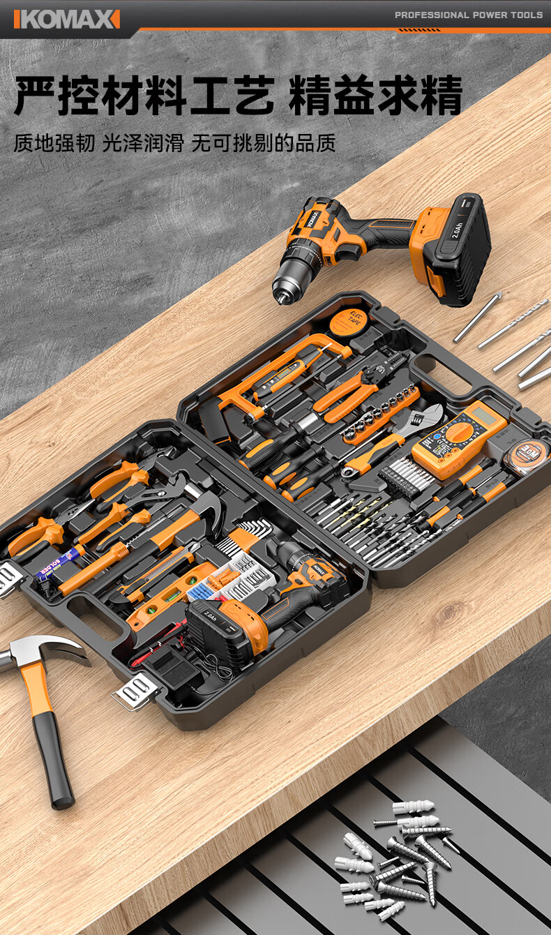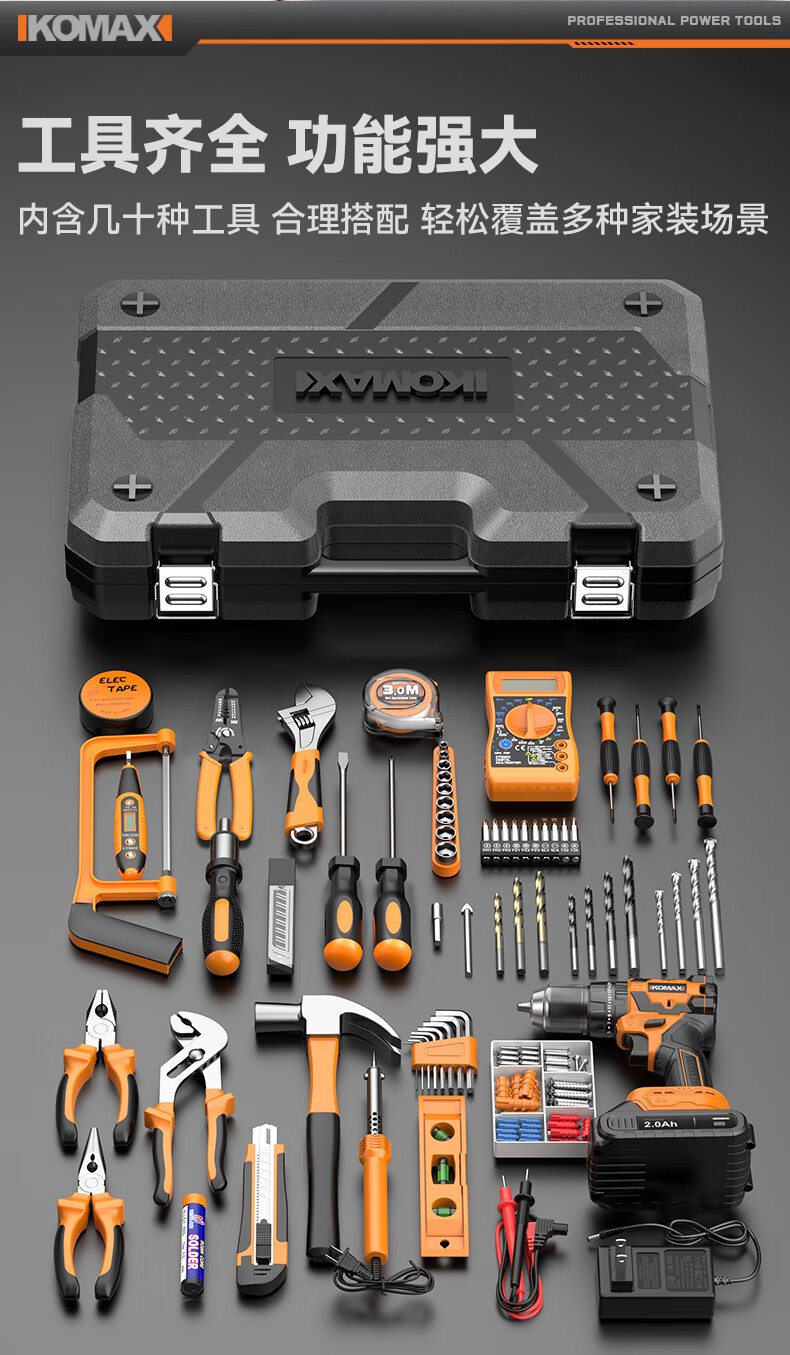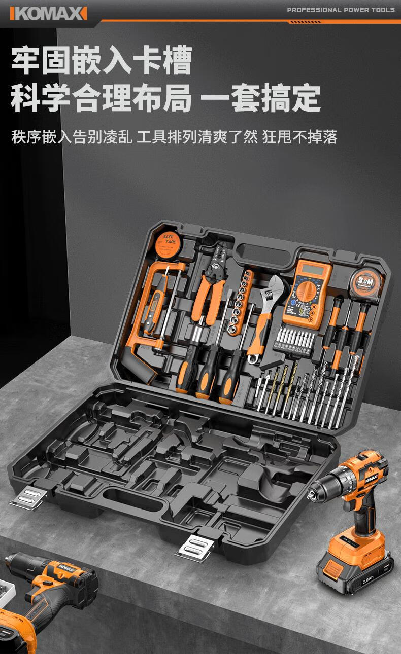 Komax Tool Set Home Toolbox Home Electrician Complete Combination Car Electric Drill Multifunctional Hardware Repair Collection 12V Two-Speed Electric Drill 43-piece Set