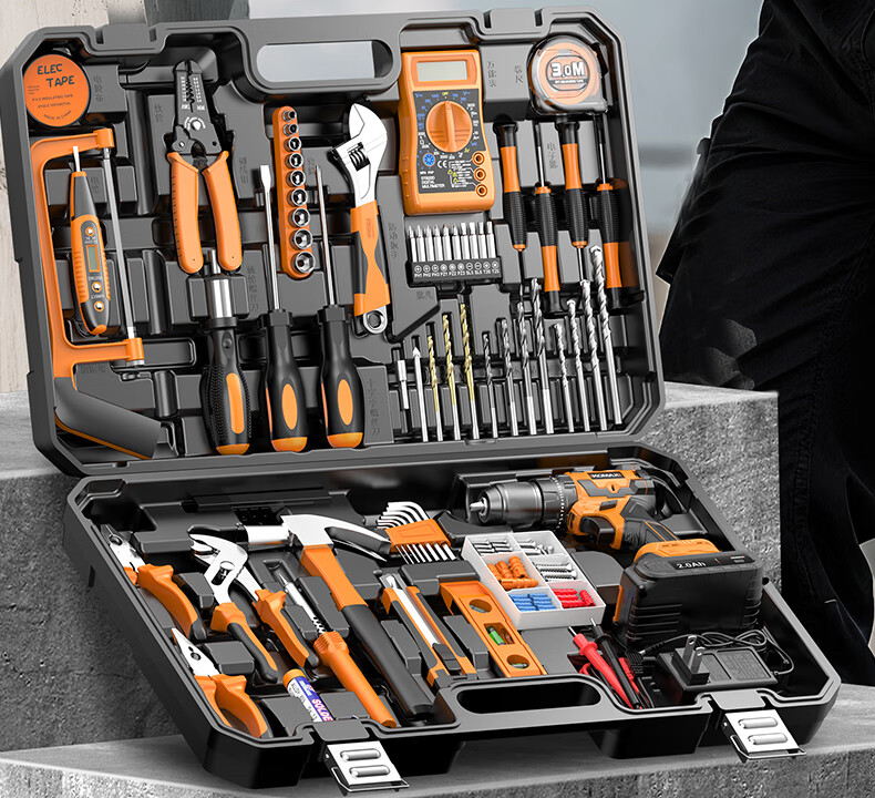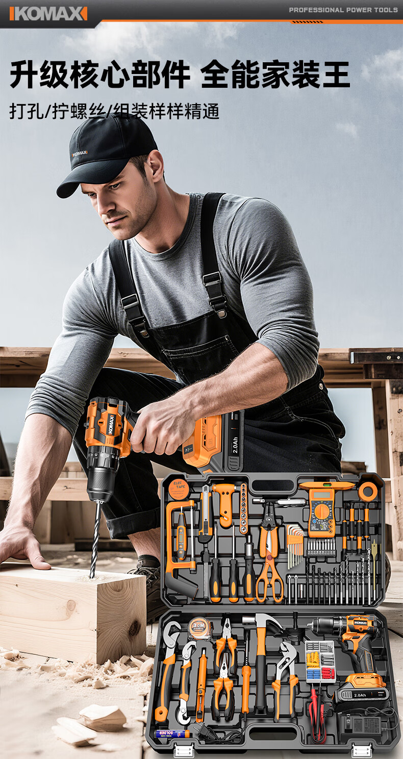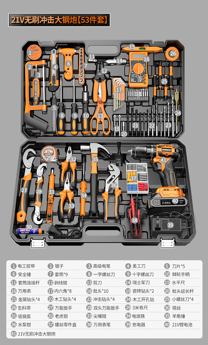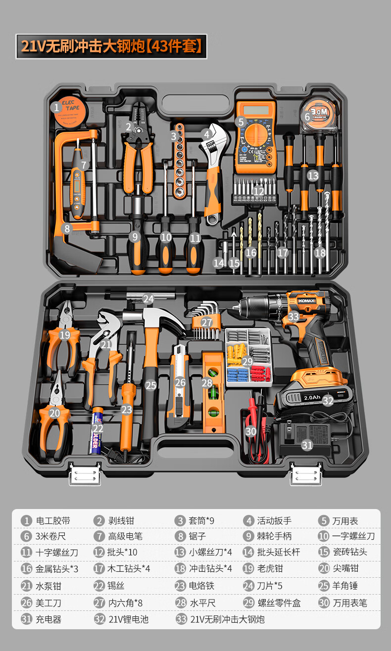 Komax Tool Set Home Toolbox Home Electrician Complete Combination Car Electric Drill Multifunctional Hardware Repair Collection 12V Two-Speed Electric Drill 43-piece Set