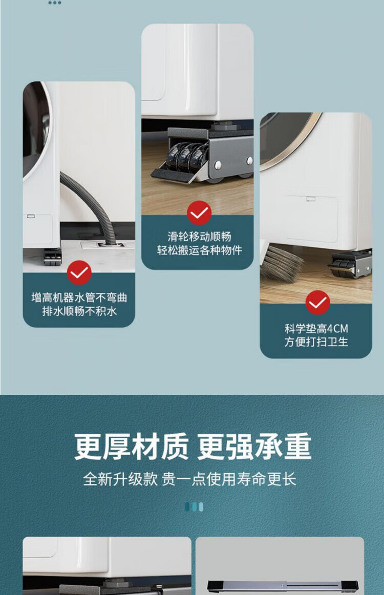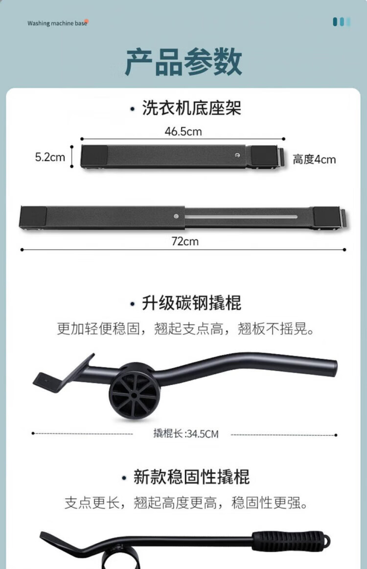 German washing machine base shelf universal wheel refrigerator storage bracket universal roller pulley removable shock-proof pad universal silver gray 24 wheels + crowbar