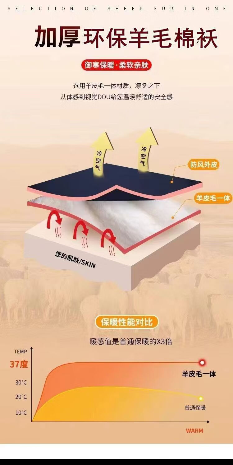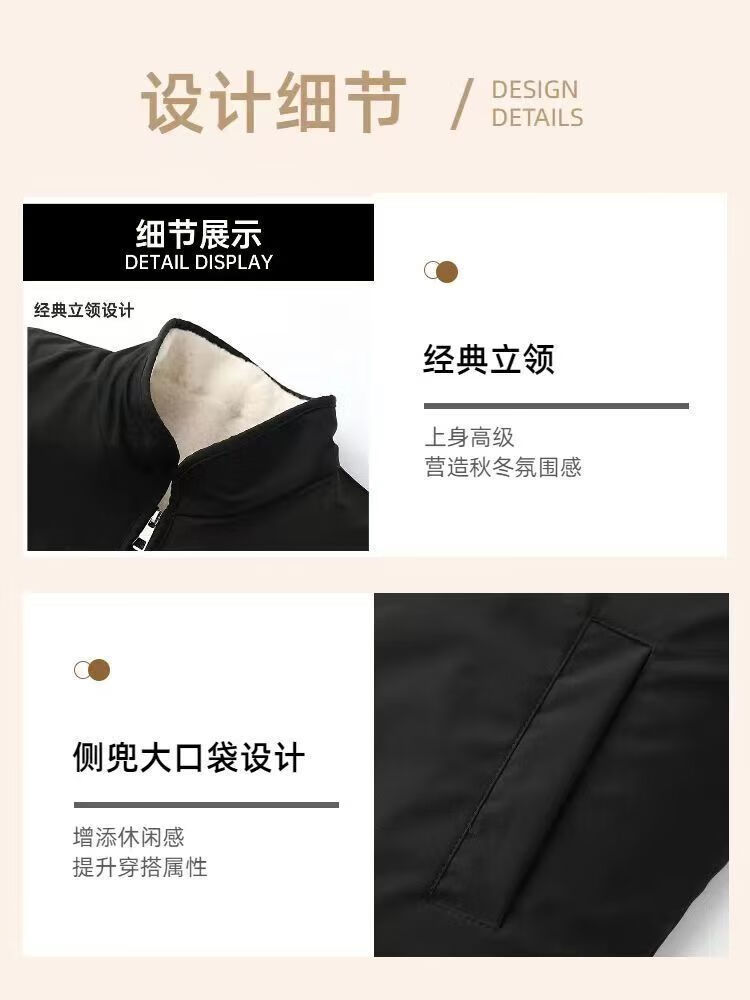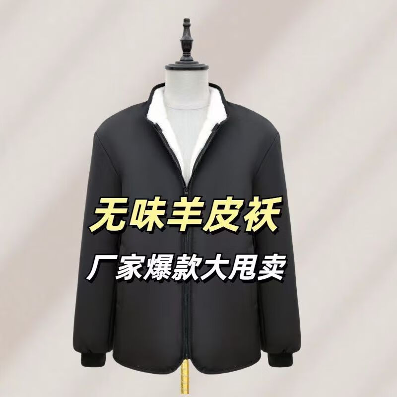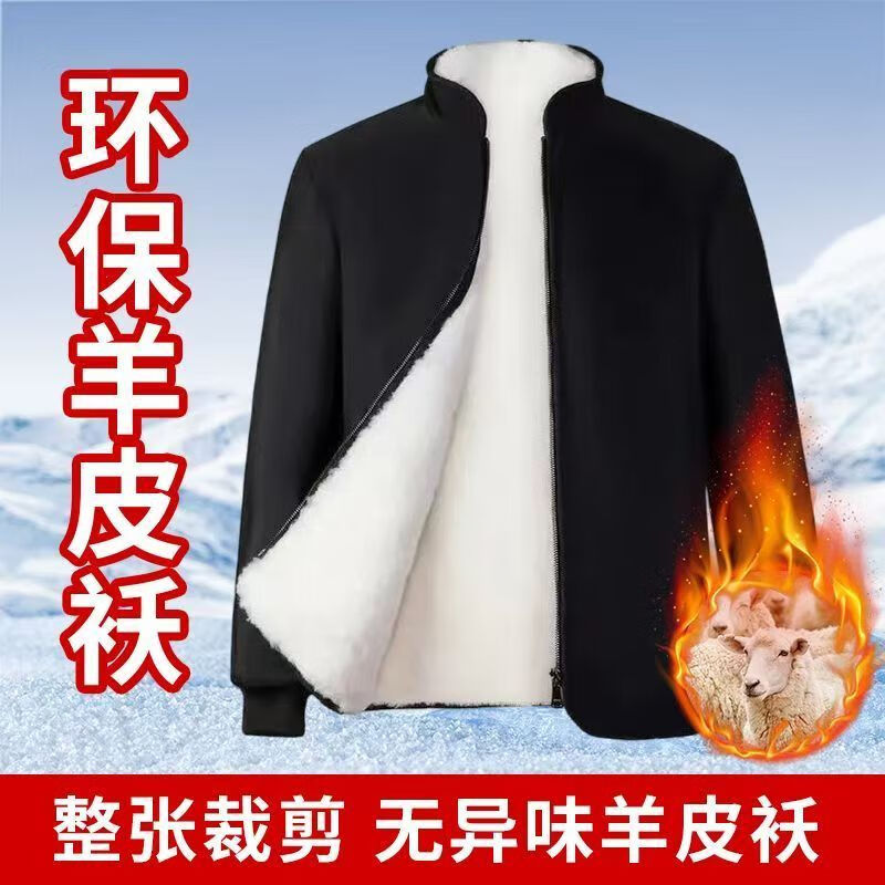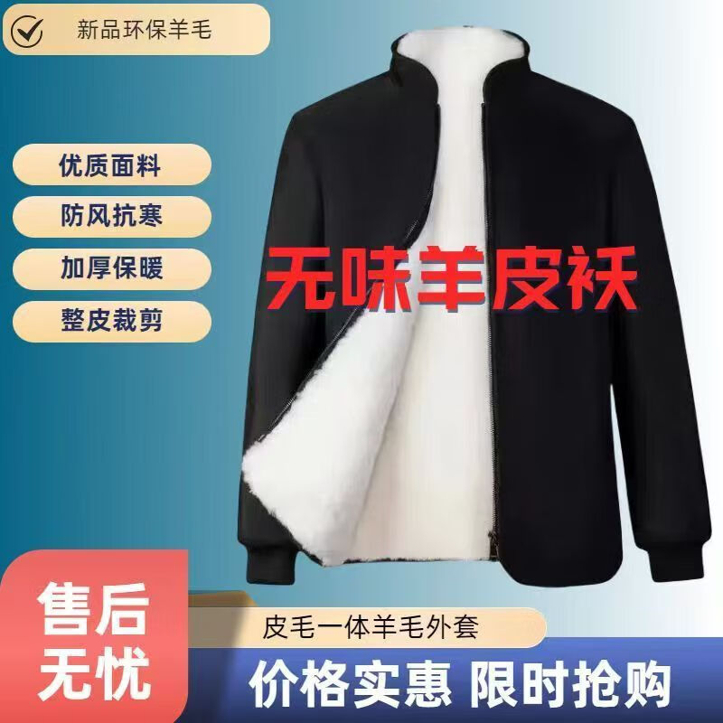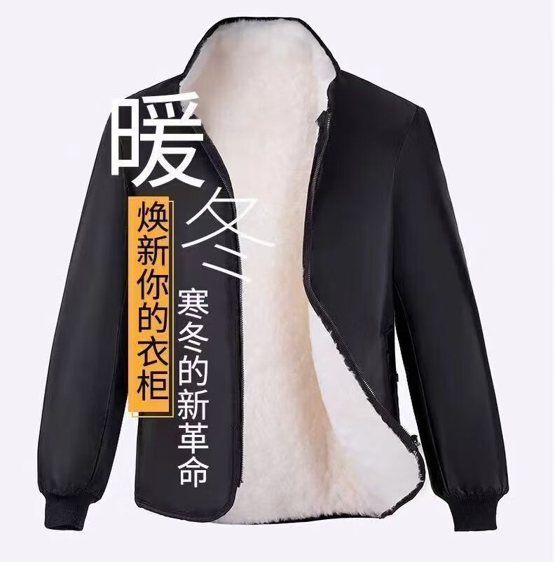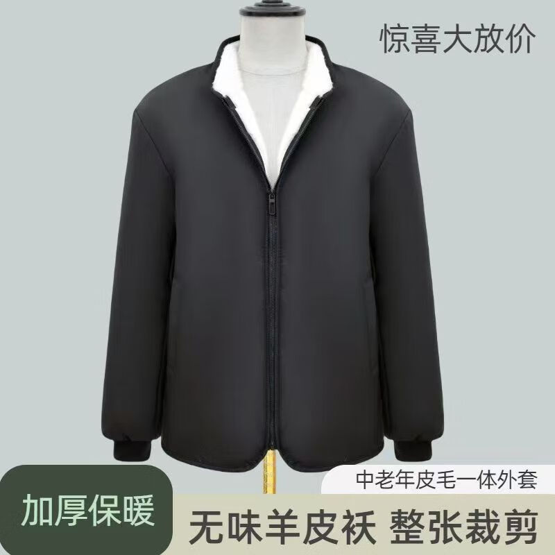 Woodpecker Winter Eco-Friendly Wool Jacket Stand Collar Middle-aged and Elderly Fur One-piece Thickened Coldproof Warm Jacket Liner Cotton Jacket Top Black (White Liner) Brand Special Price Clearance Pickup 2XL 135-155 Jin