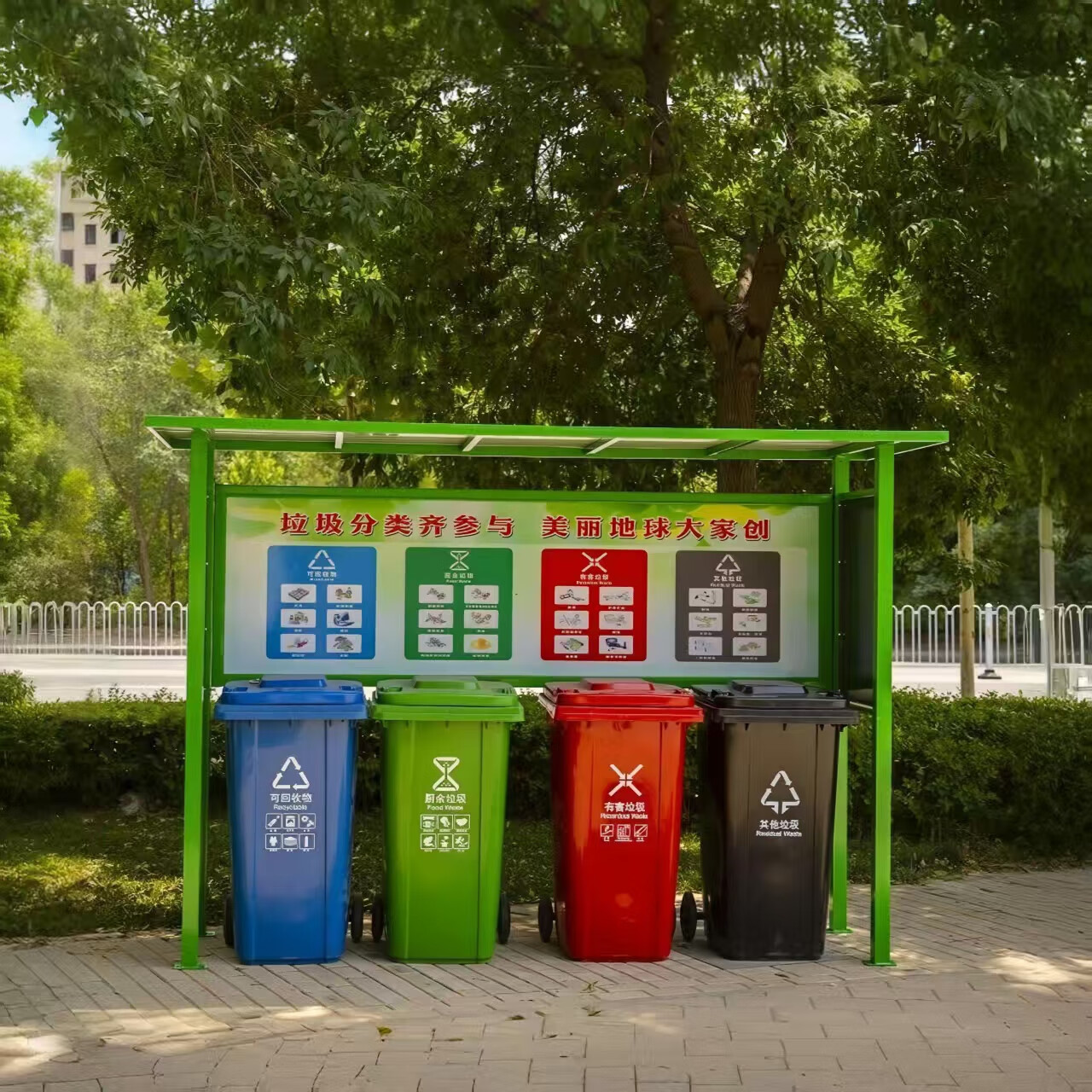 Garbage classification kiosk outdoor garbage collection kiosk garbage classification shed community sanitation garbage kiosk garbage recycling station gray 60-column four-bucket garbage kiosk without bucket