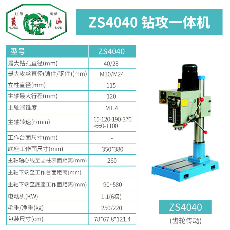Anhui Huangshan multifunctional drilling and tapping machine for drilling and tapping industry ZS4116B ZS4120B ZS4125B ZS4112B/380V/550W cast M10 steel M8