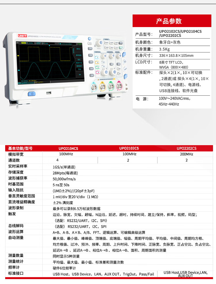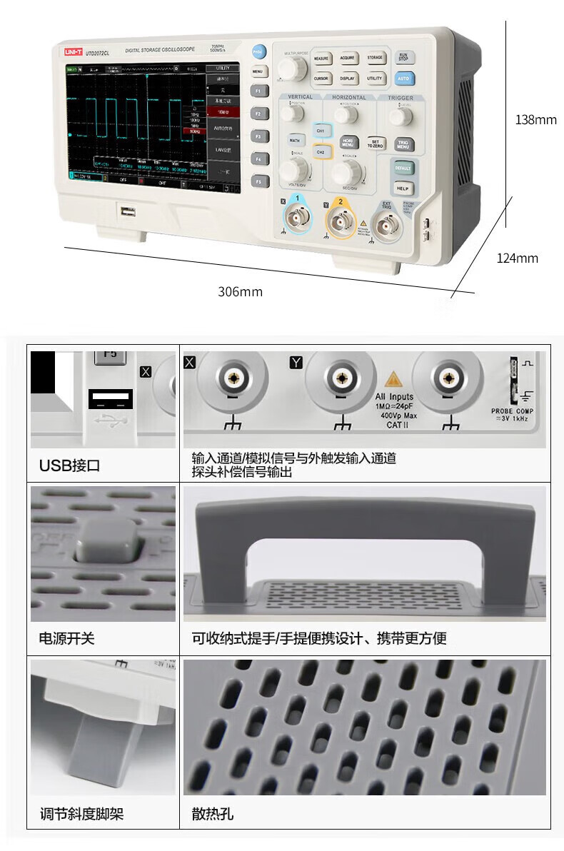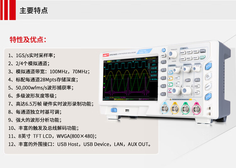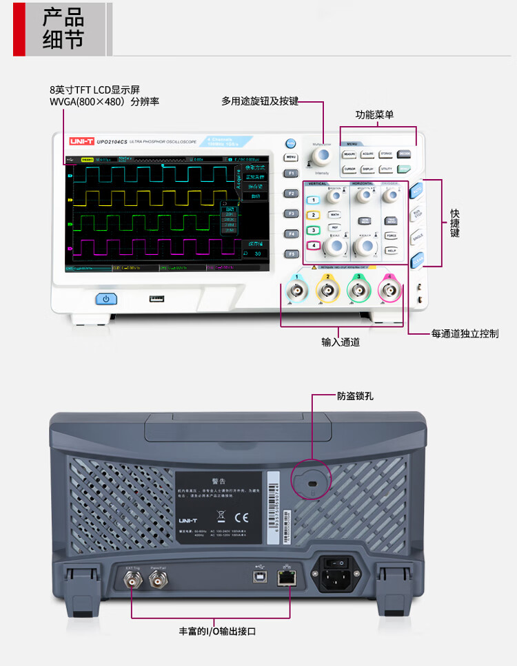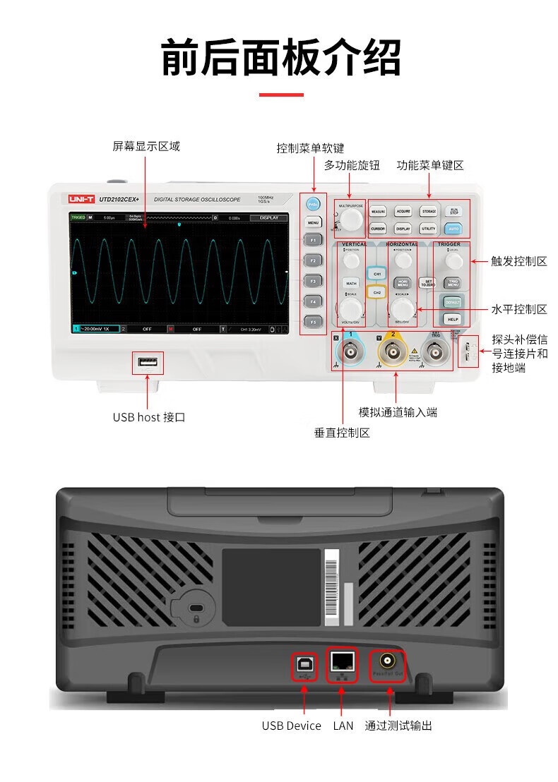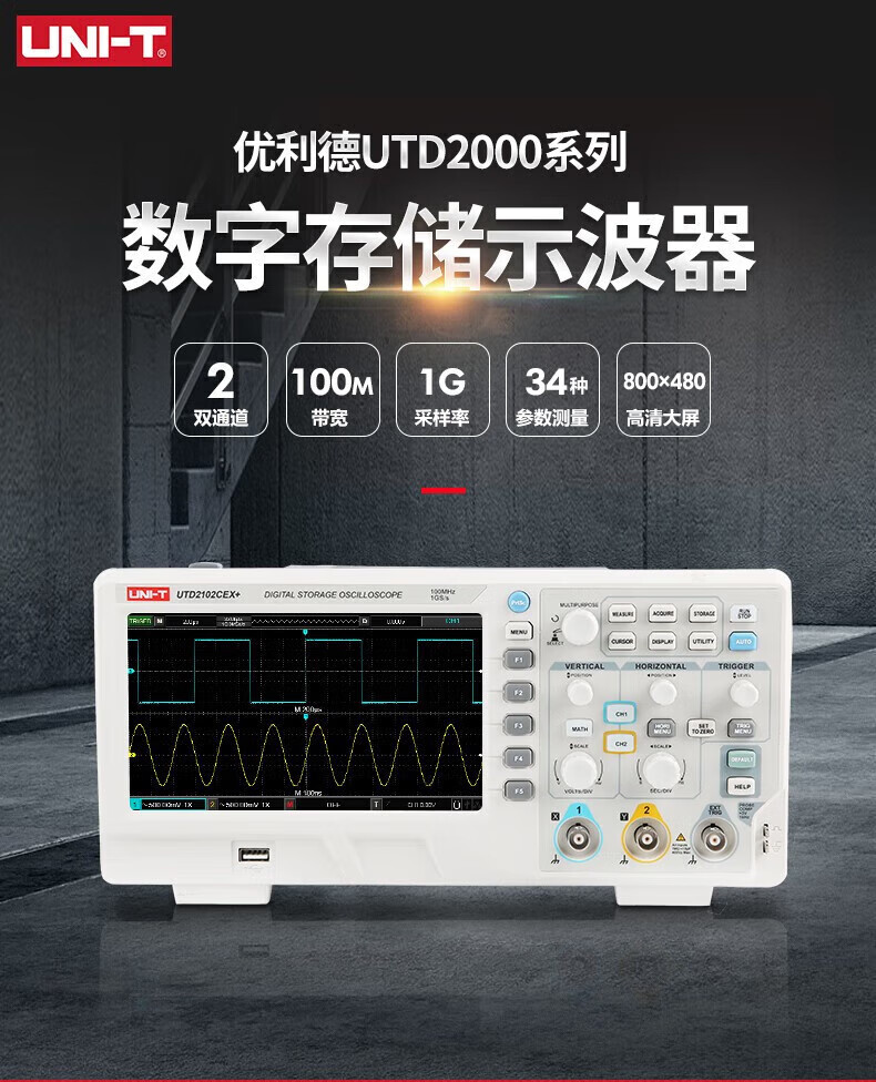 Unilide UTD2102CEX+ digital storage oscilloscope dual-channel 100M large-screen color dedicated oscilloscope UTD2102CEX+ official standard dual-channel 100