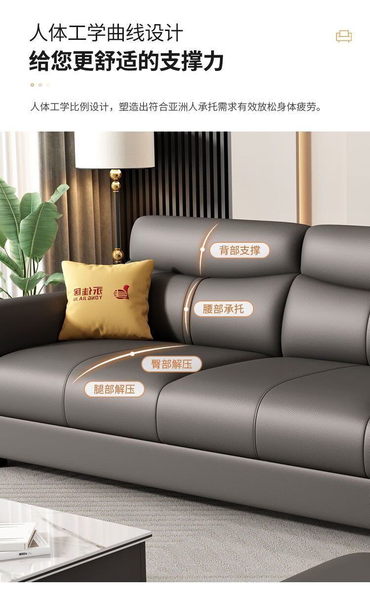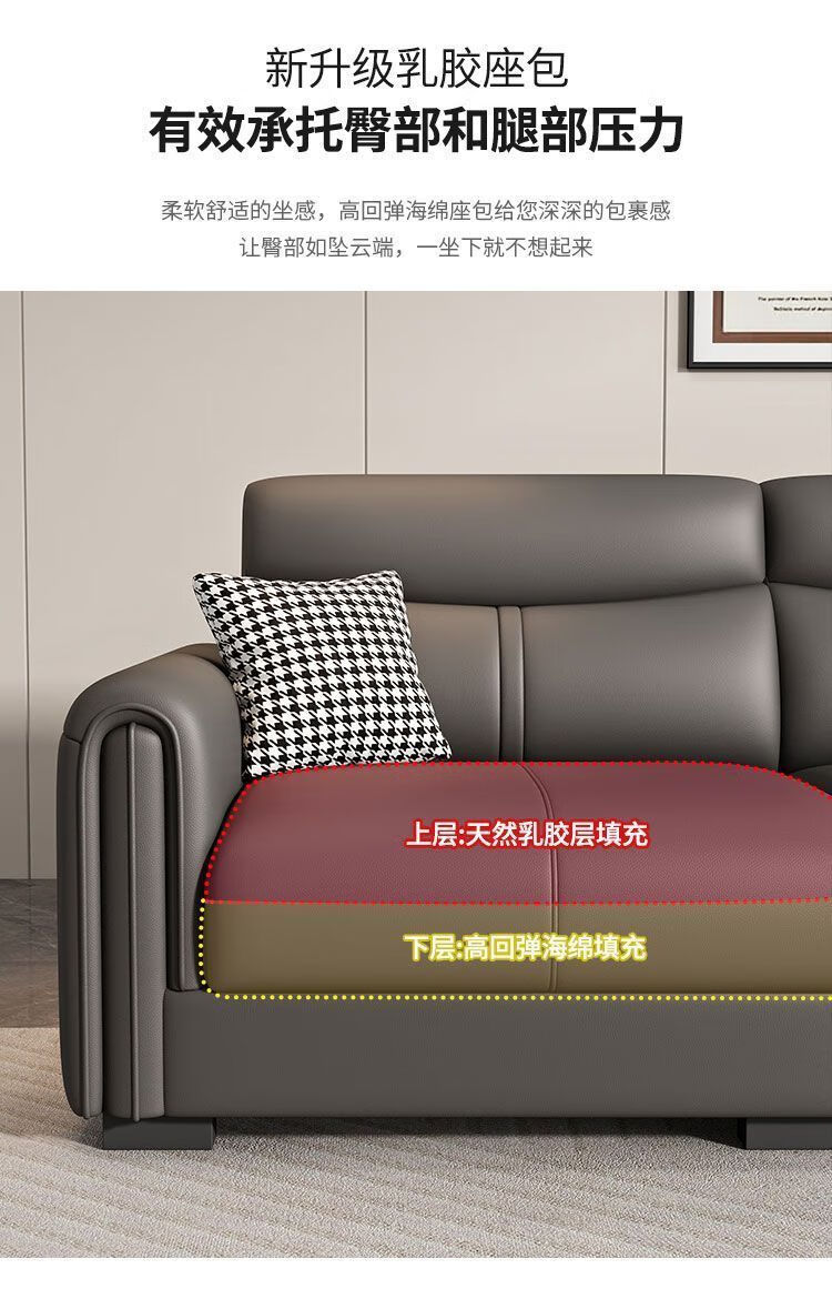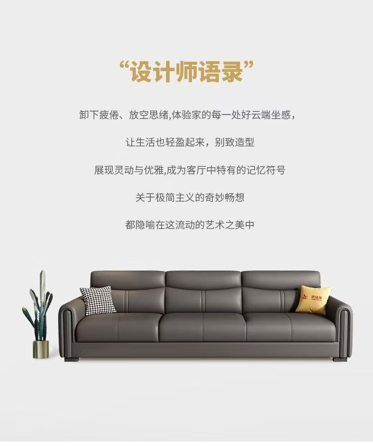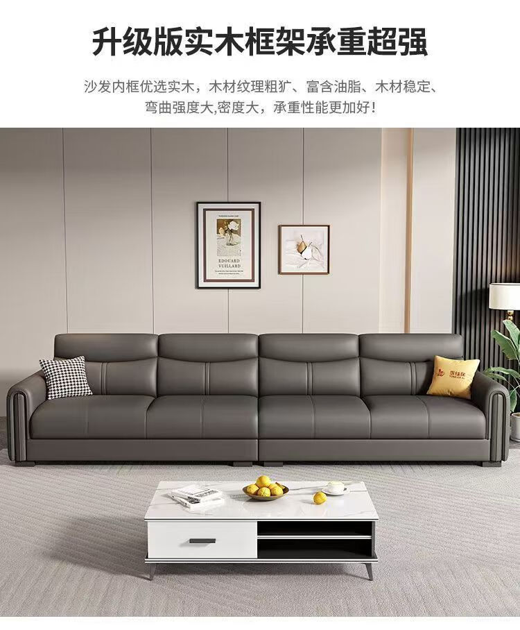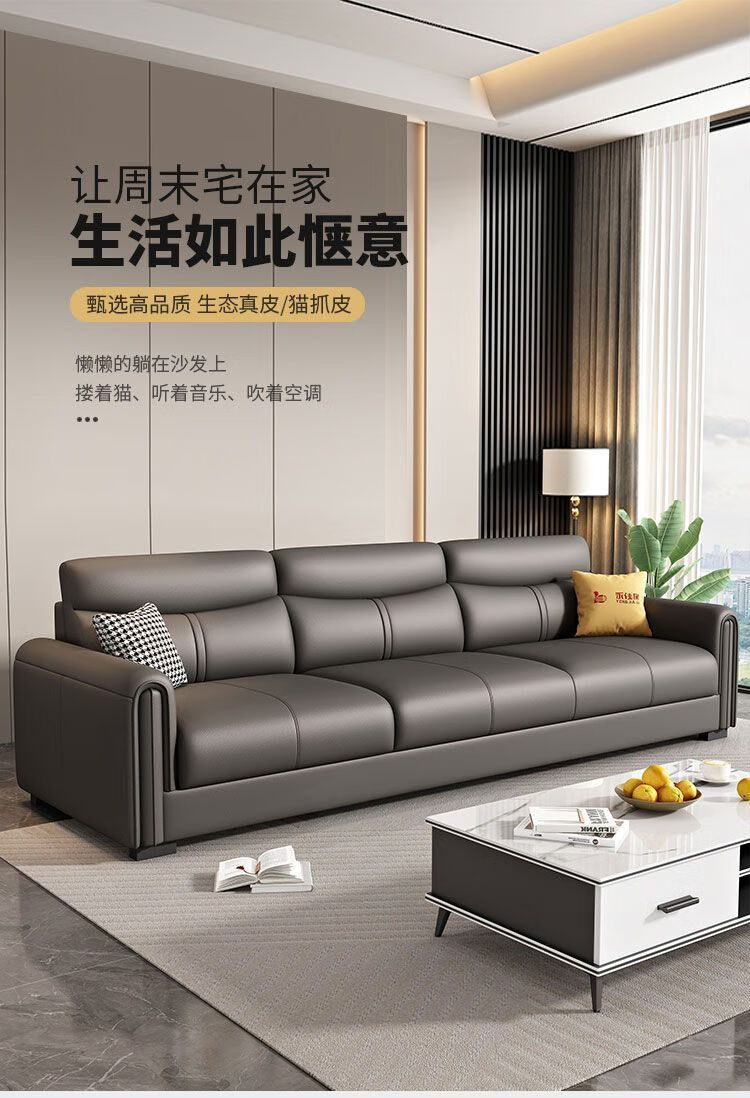Gu Jia Shufu 2025 new living room sofa leather sofa small apartment straight row cowhide sofa modern simple Italian sofa flagship version Q elastic sitting feeling ecological leather (natural latex version) four-person large four-person 3.2 meters