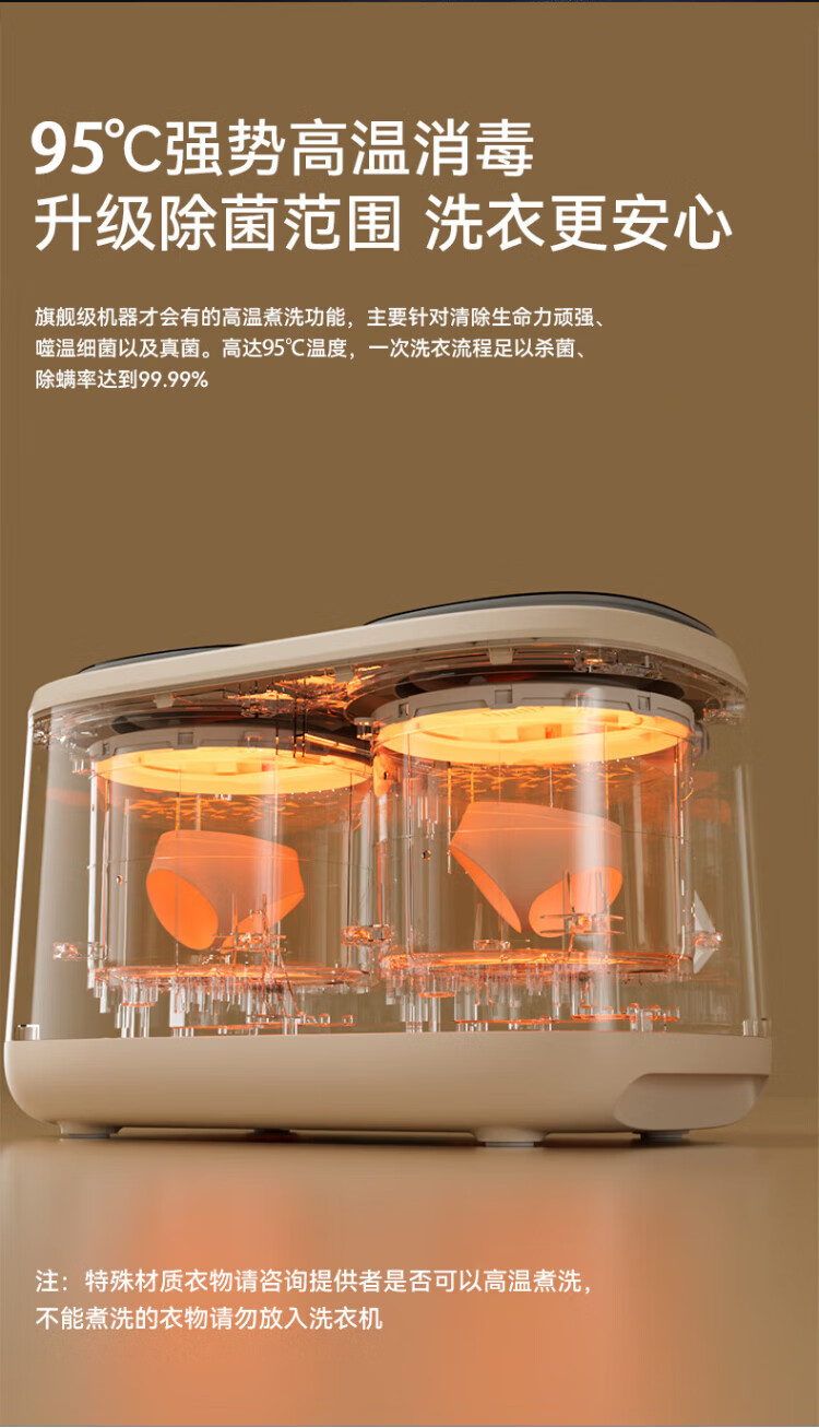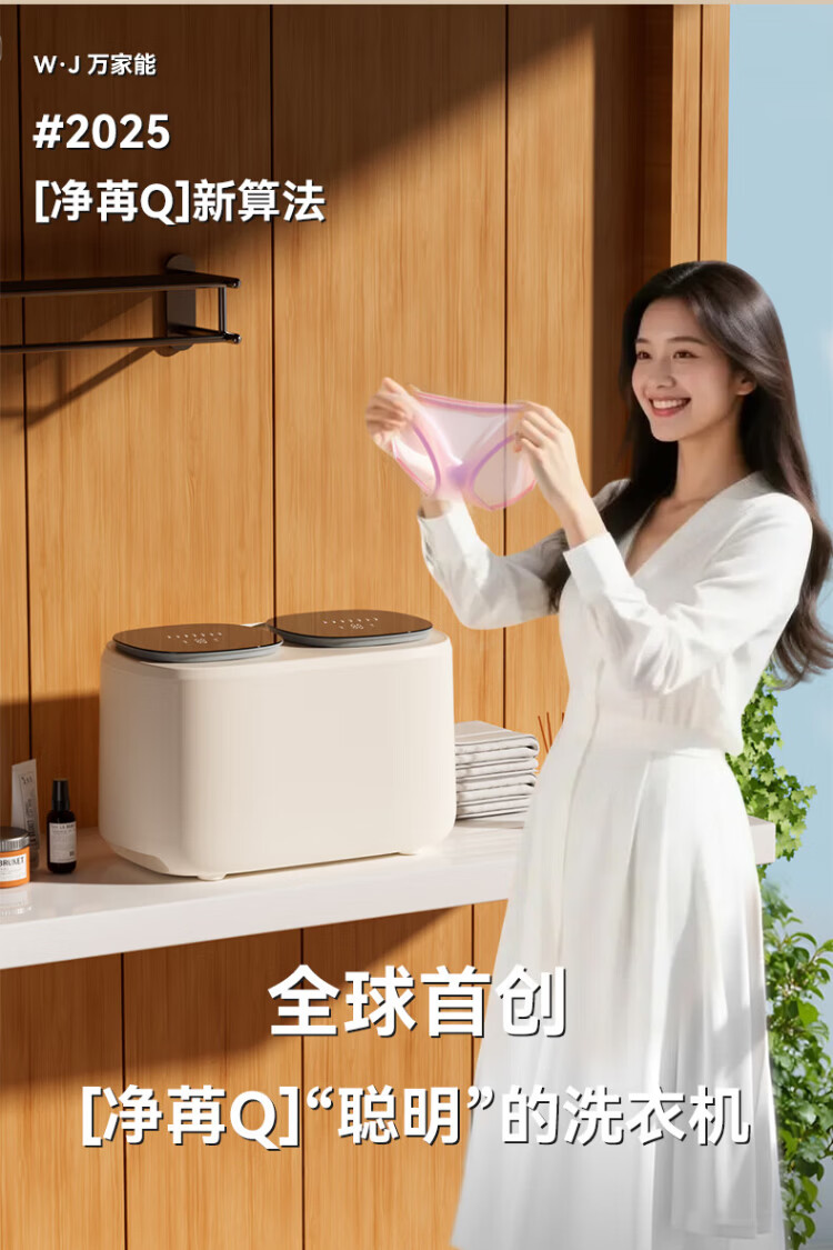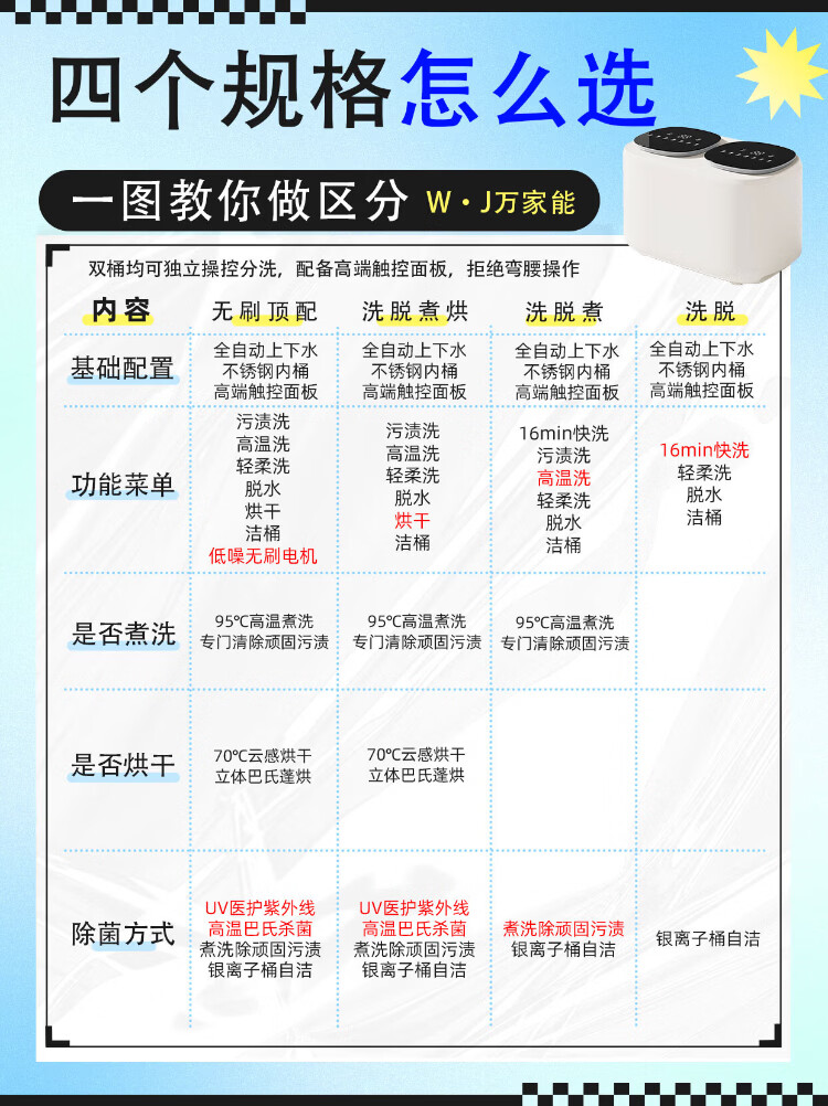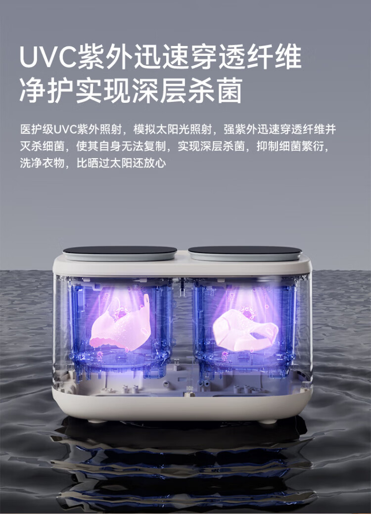 Wanjiaeng double-bin washing machine, special washing and drying for underwear and socks, fully automatic turbine dehydrator, high temperature cooking and washing, ultraviolet sterilization, mini small lazy laundry machine, washing and drying, double cylinder, cloud drying + UV ultraviolet sterilization + stainless steel bucket