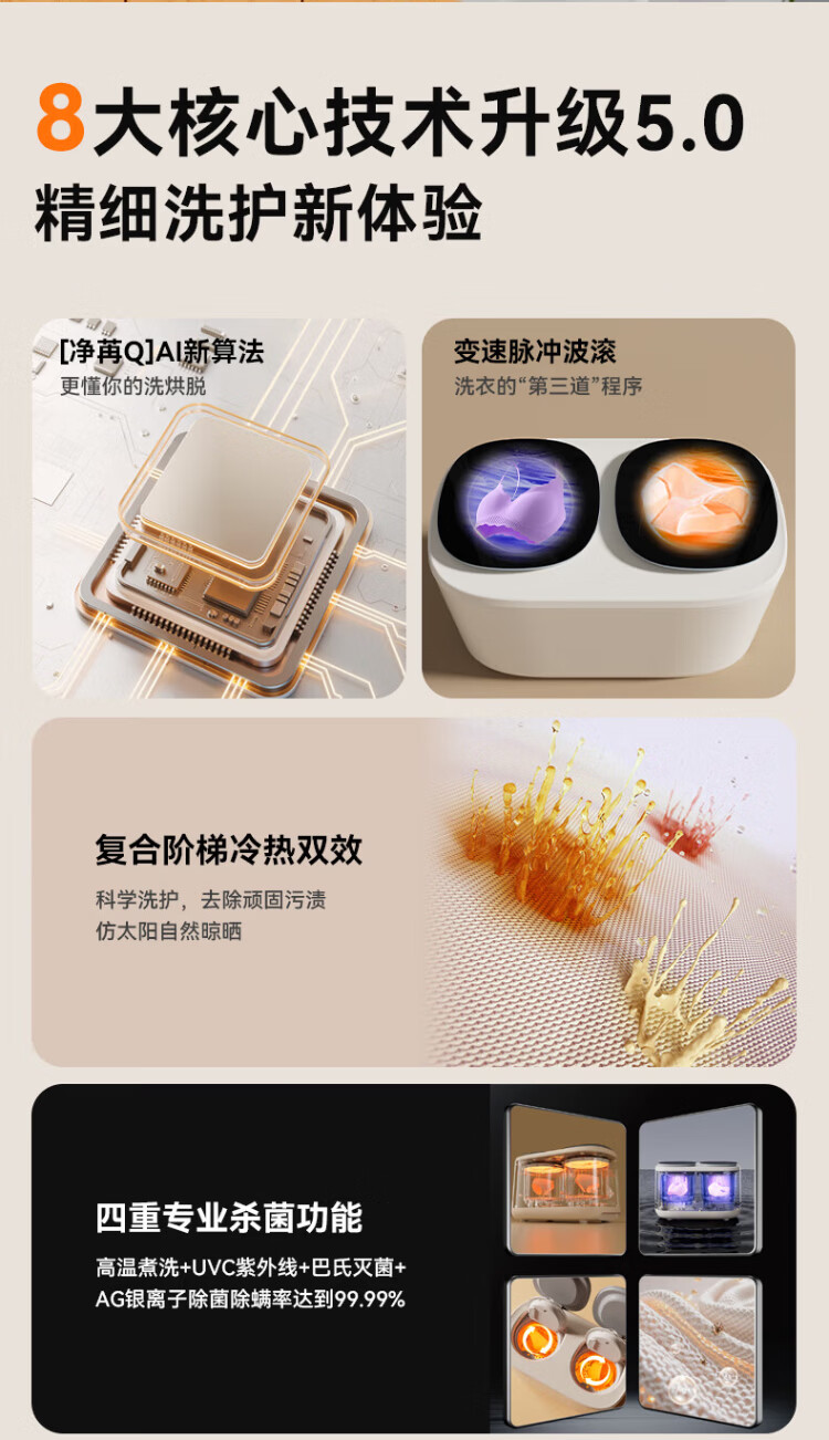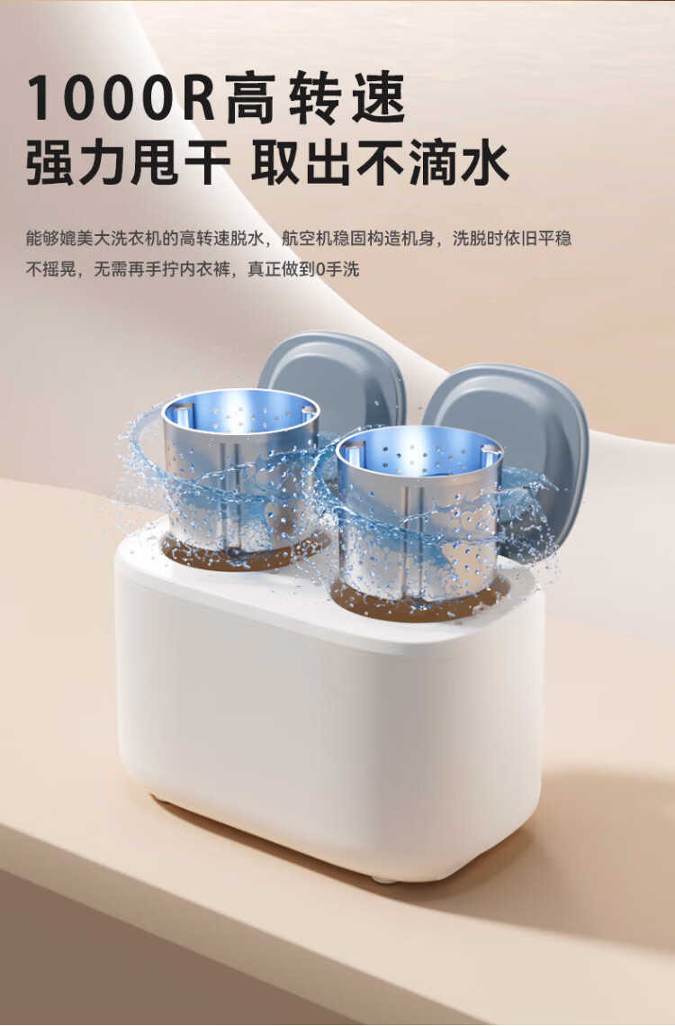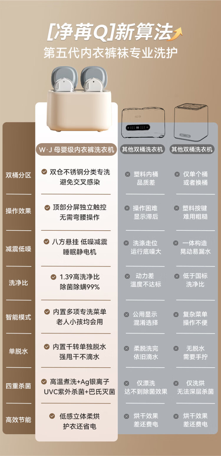 Wanjiaeng double-bin washing machine, special washing and drying for underwear and socks, fully automatic turbine dehydrator, high temperature cooking and washing, ultraviolet sterilization, mini small lazy laundry machine, washing and drying, double cylinder, cloud drying + UV ultraviolet sterilization + stainless steel bucket