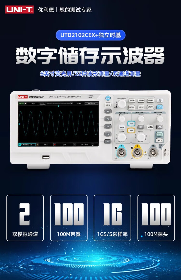 Uliide UTD2102CEX digital storage oscilloscope 100M dual-channel oscilloscope 200M storage 21 UPO1204X-E official standard 4-channel 200M