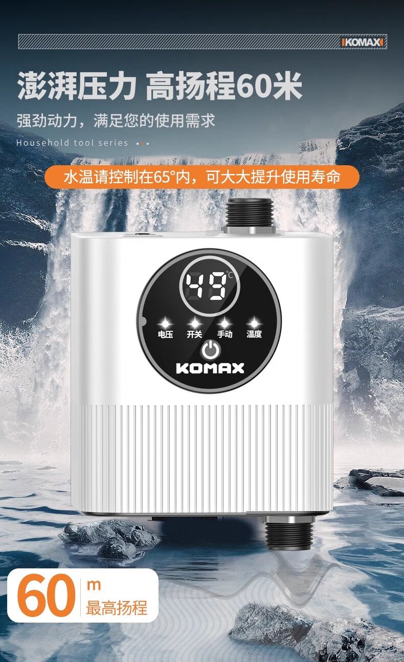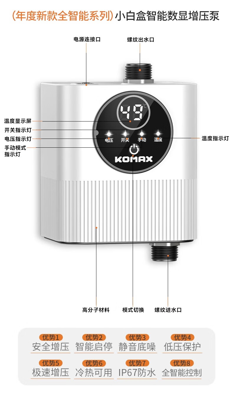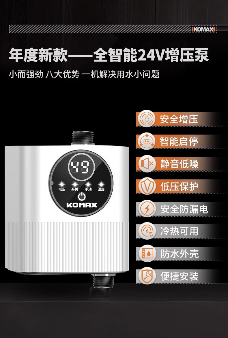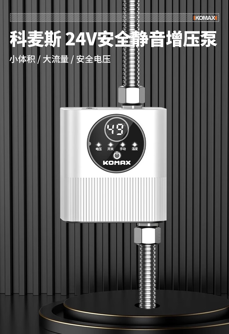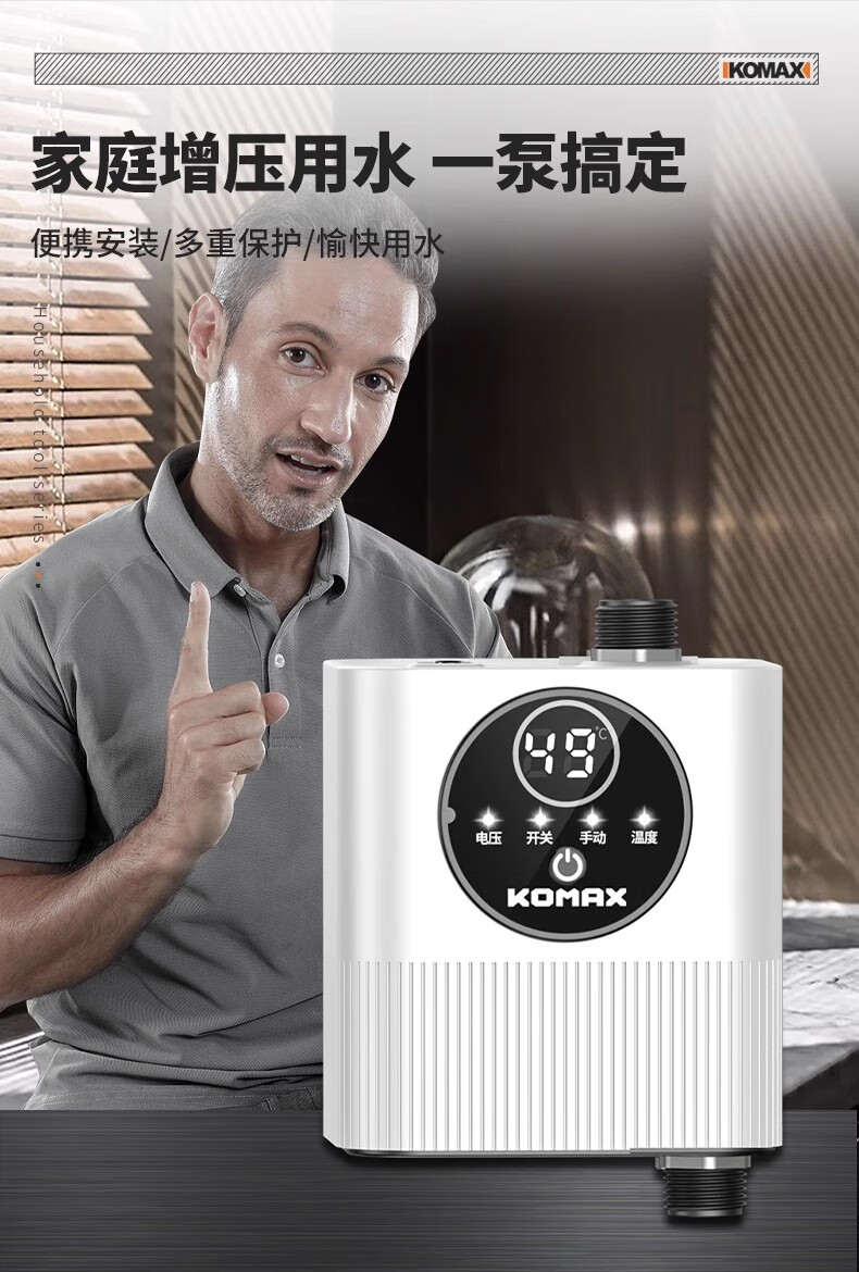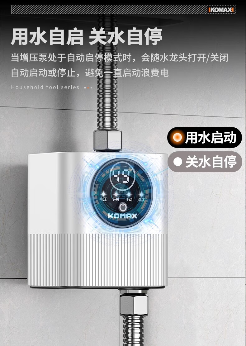 Komax fully automatic silent water heater booster pump household tap water shower booster 24v small booster pump 290 type booster ivory white large screen digital display luxury model