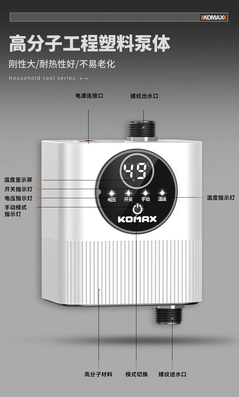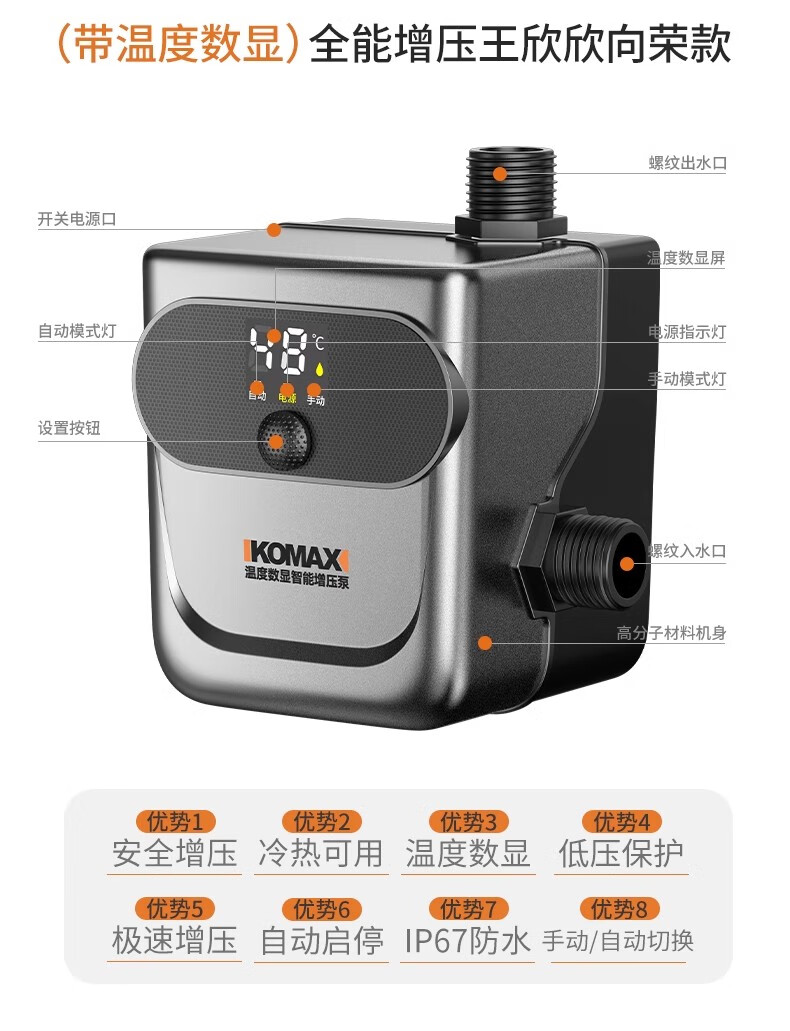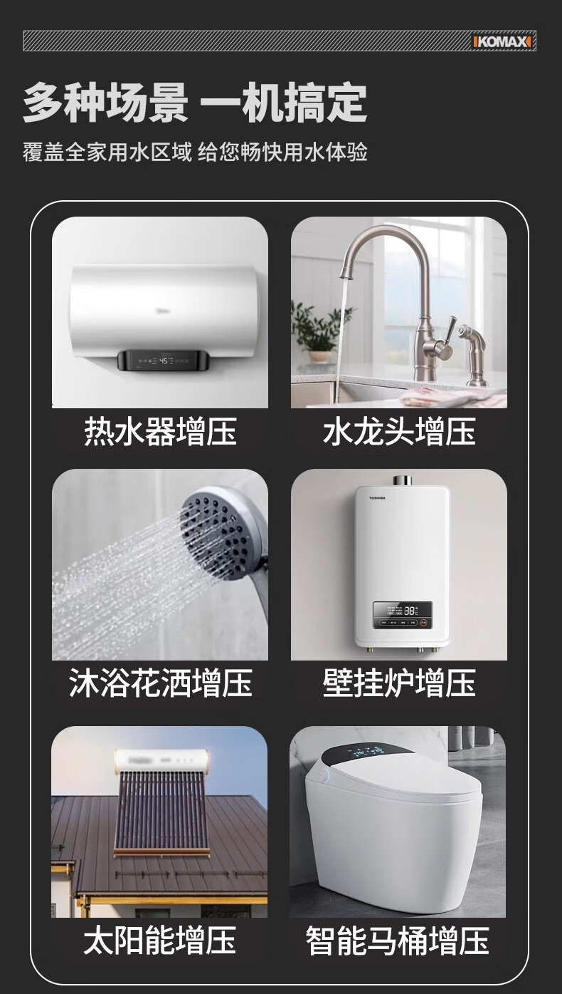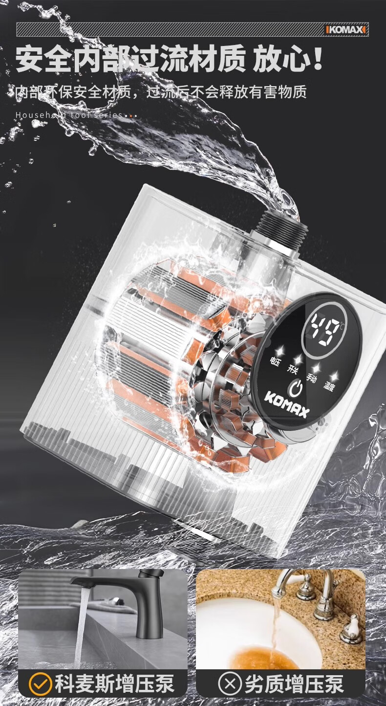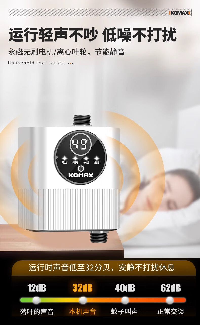 Komax fully automatic silent water heater booster pump household tap water shower booster 24v small booster pump 290 type booster ivory white large screen digital display luxury model