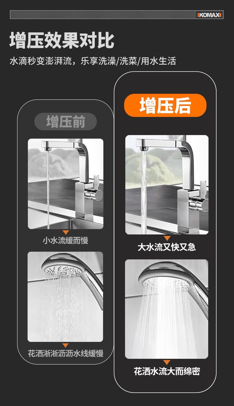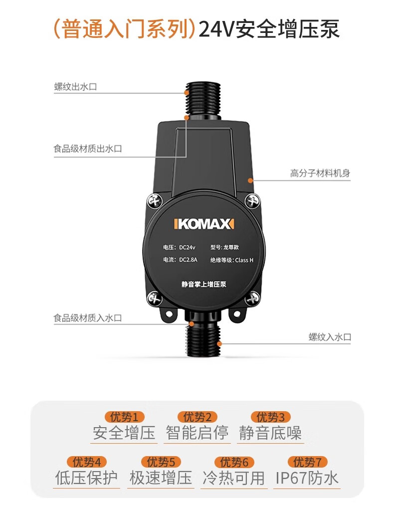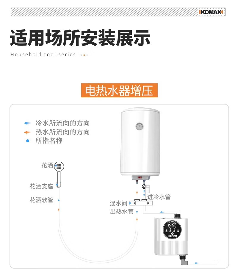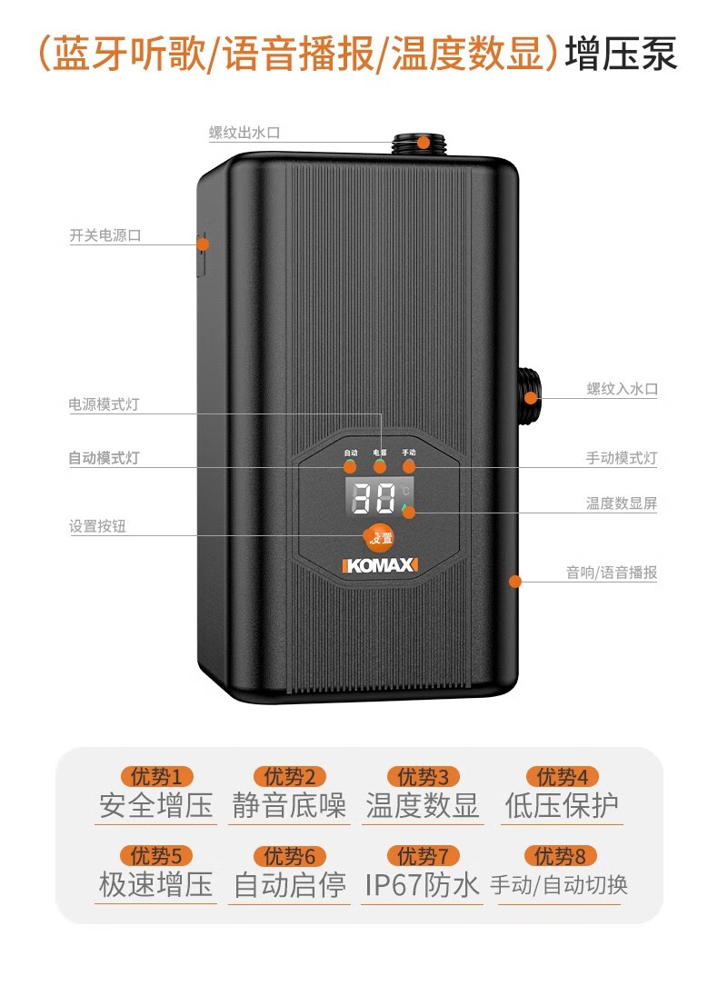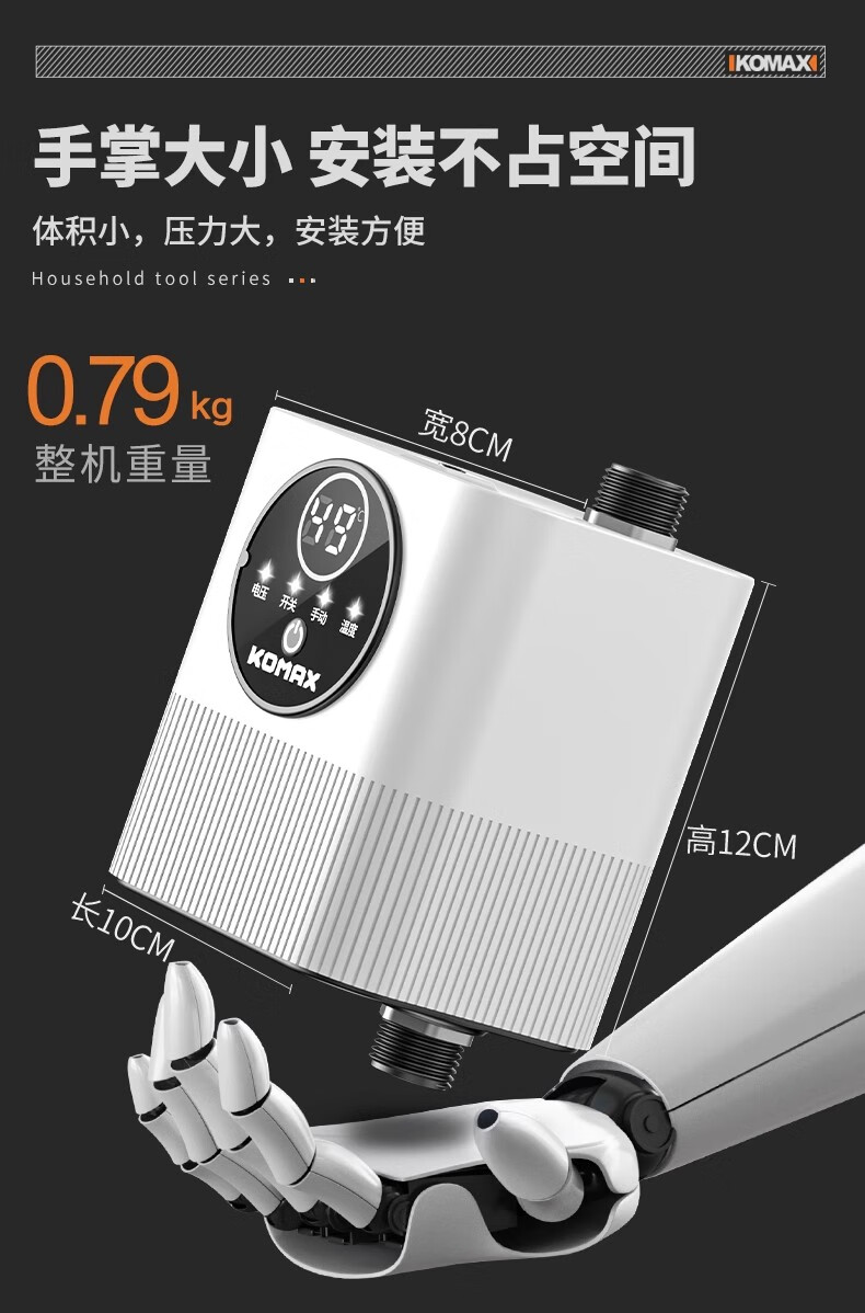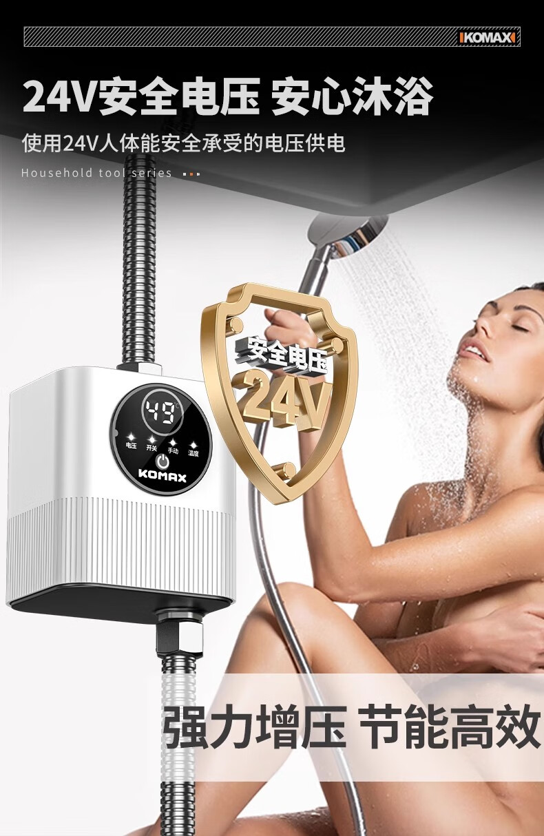 Komax fully automatic silent water heater booster pump household tap water shower booster 24v small booster pump 290 type booster ivory white large screen digital display luxury model