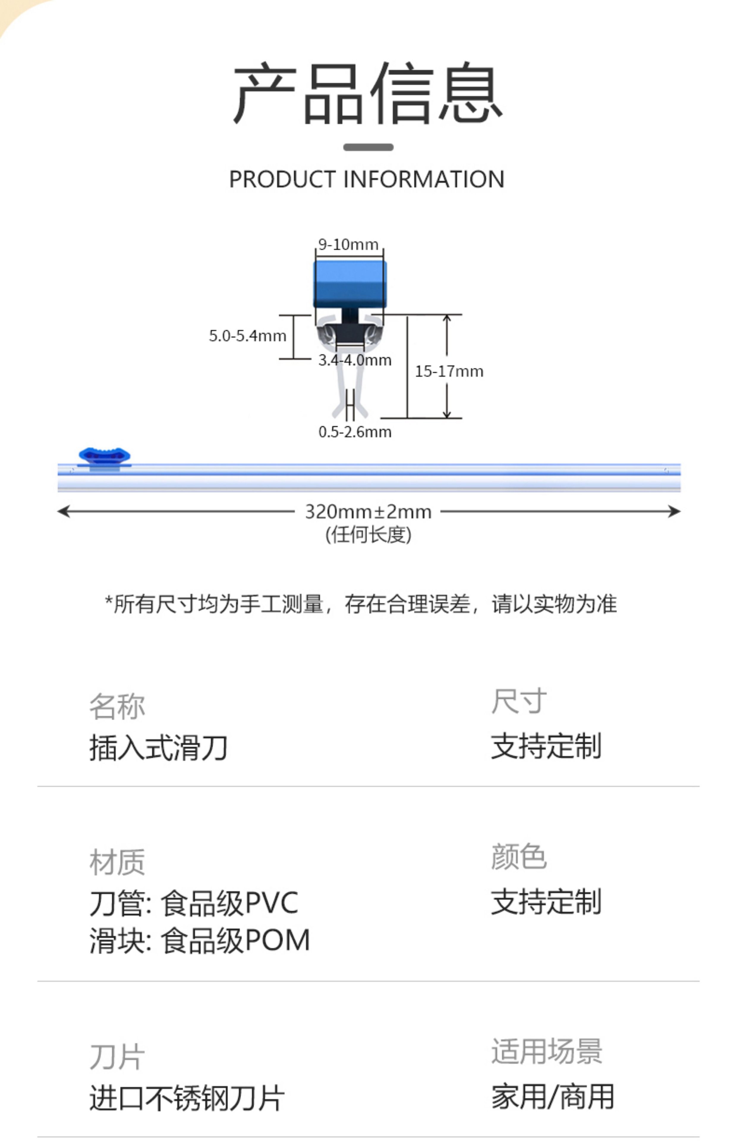 Wing Fantasy insert cutting sliding knife cling film cutter replaceable sliding knife baking paper packaging machine packaging machine cutter 33cm