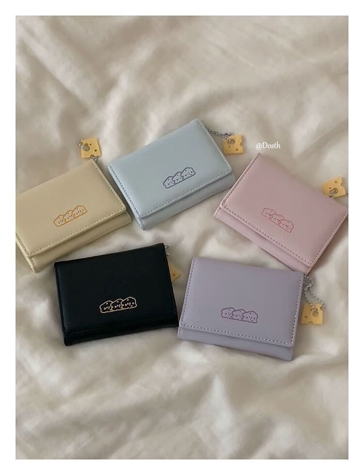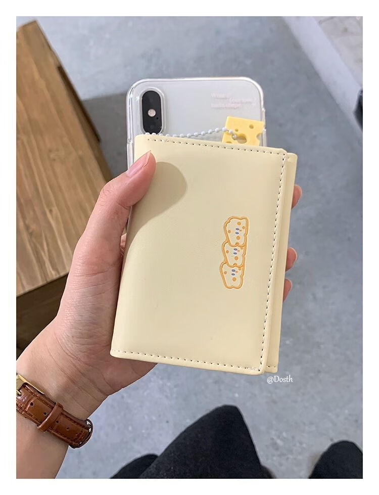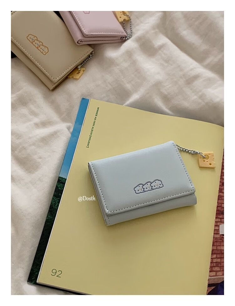 Ye Yu Cheese Short Wallet Women's 2023 New Student Cute Cartoon Large Capacity Card Holder Tri-fold Wallet Blue Cheese Style Ordinary Anti-Degaussing