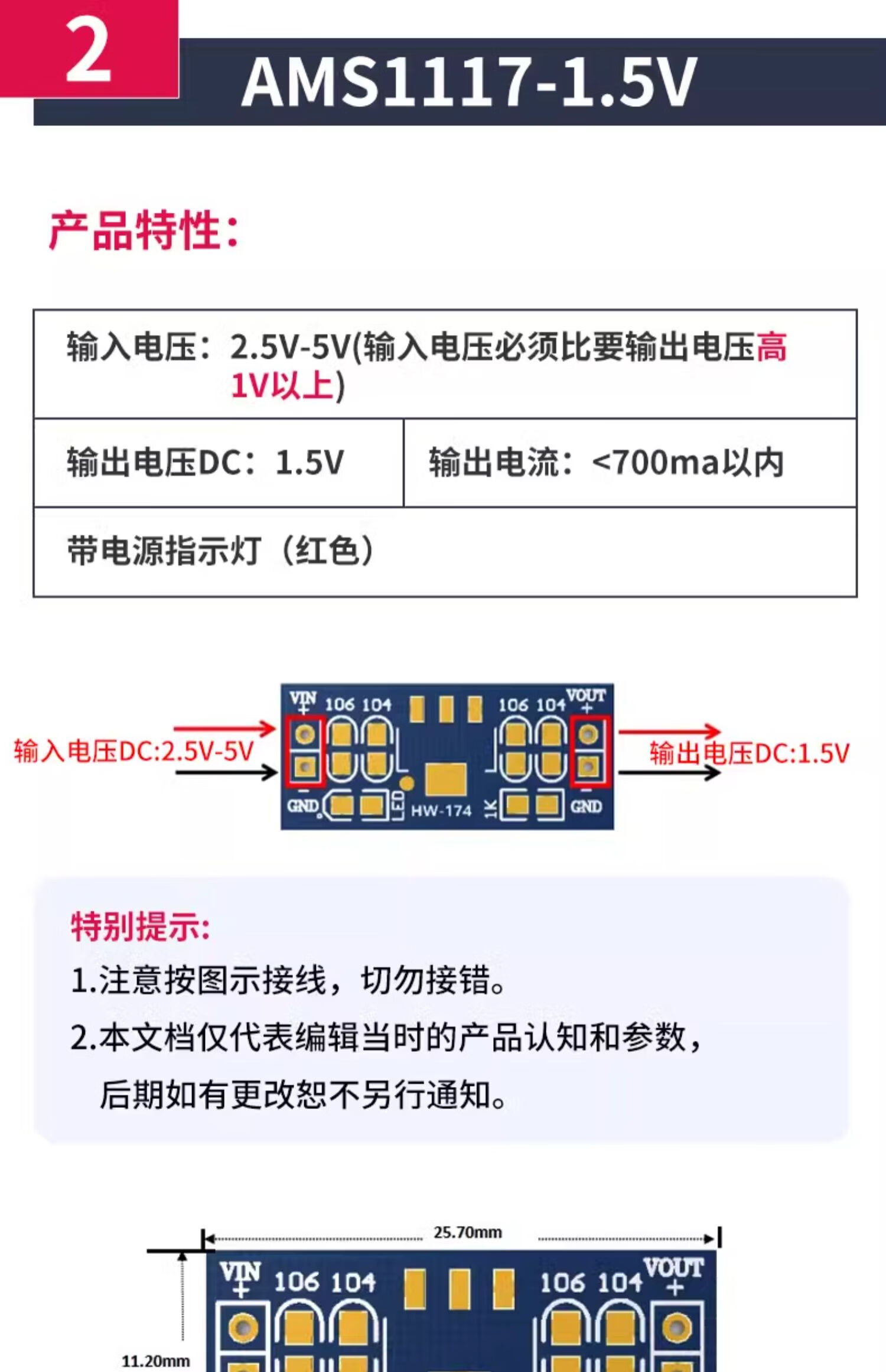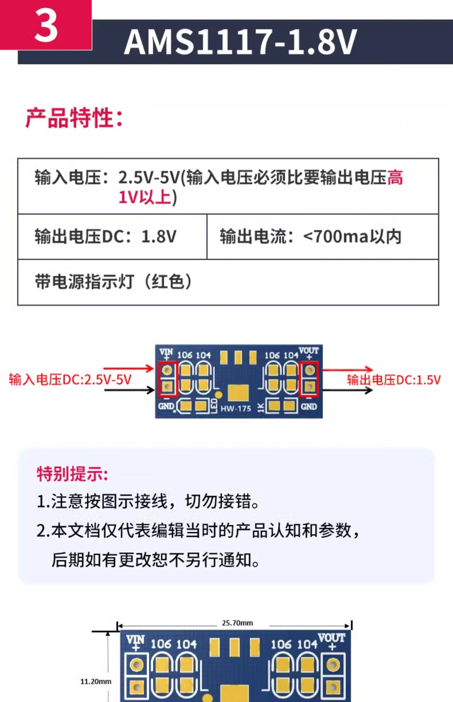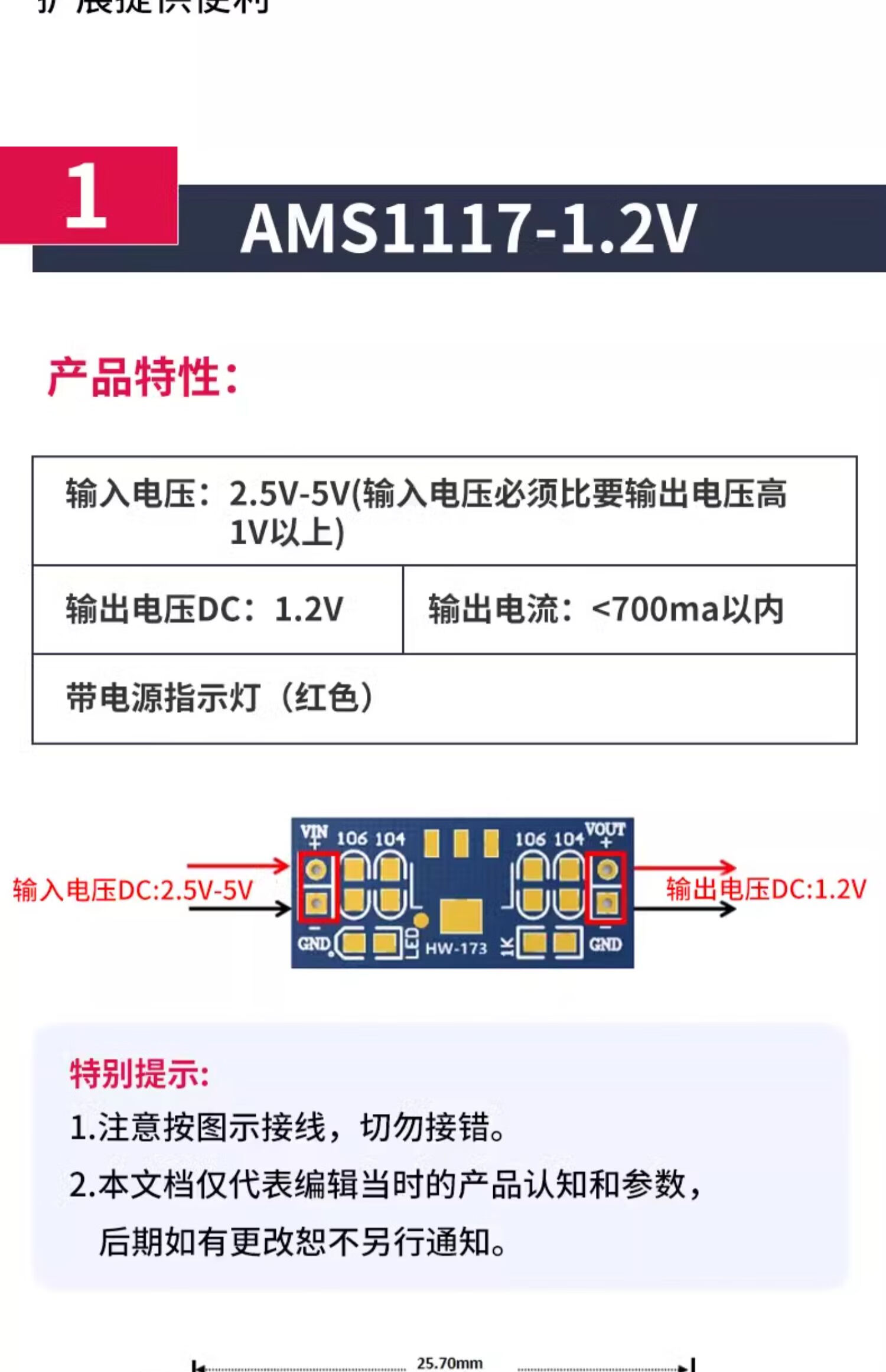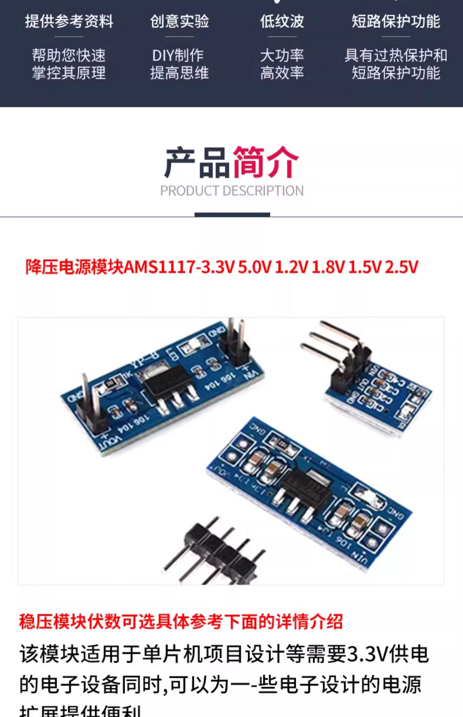 AMS1117 1.2/1.5/1.8/2.5/5.0/ 3.3V power module step-down regulated power supply board pins step-down module 1117-1.2V no specifications