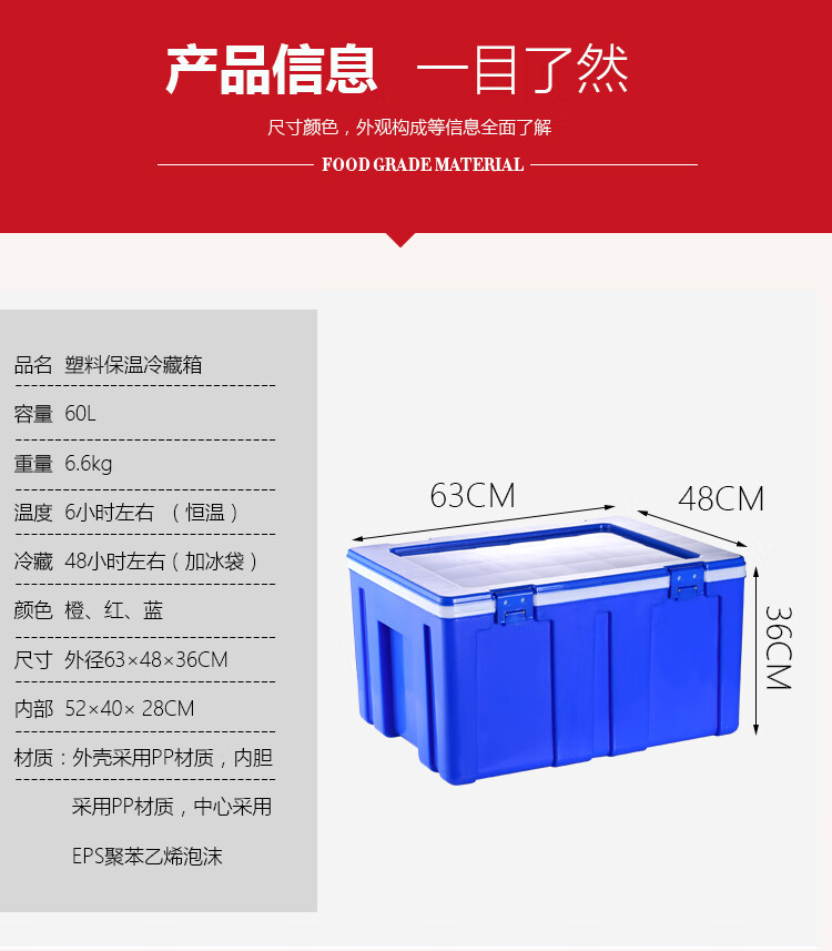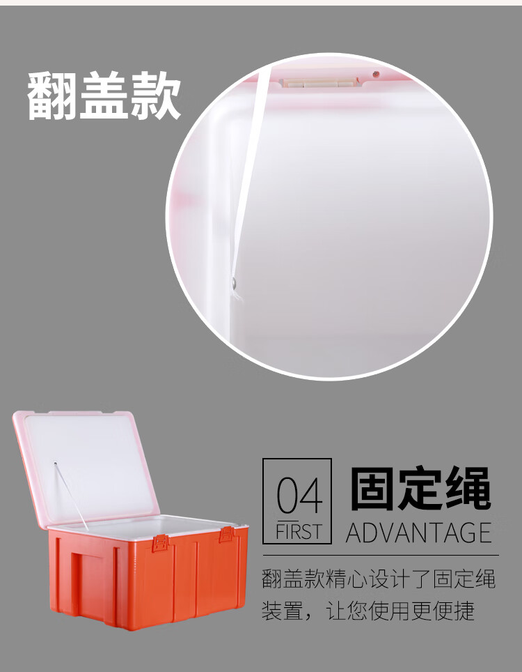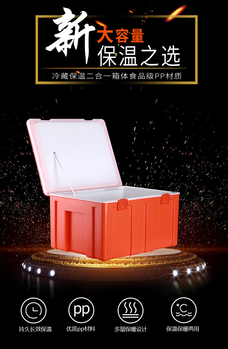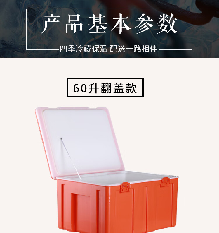 60L Insulated Refrigerator Commercial Food Steamed Bun Rice Takeaway Food Delivery Large Stall Vehicle Mounted Plastic Ice Bag 65L Thickened Hinge Orange
