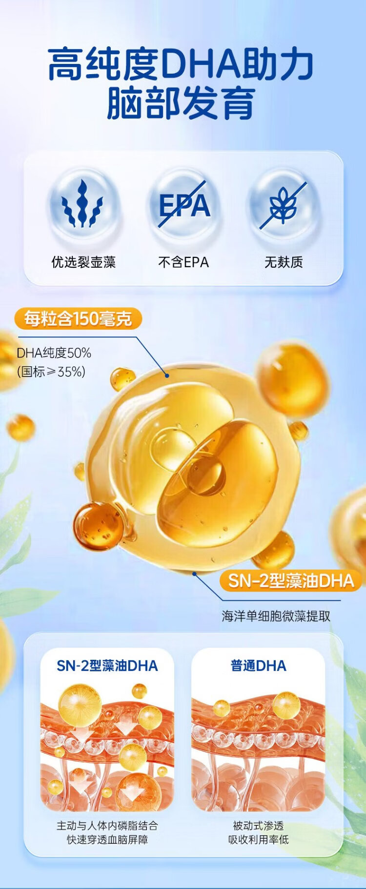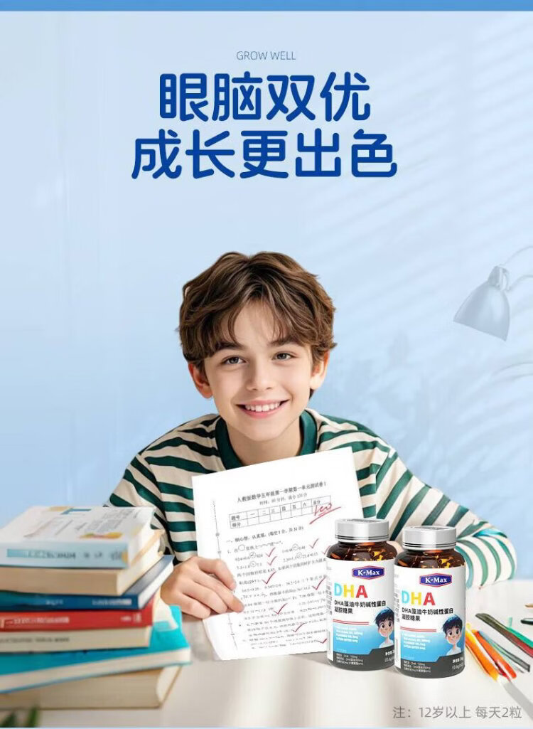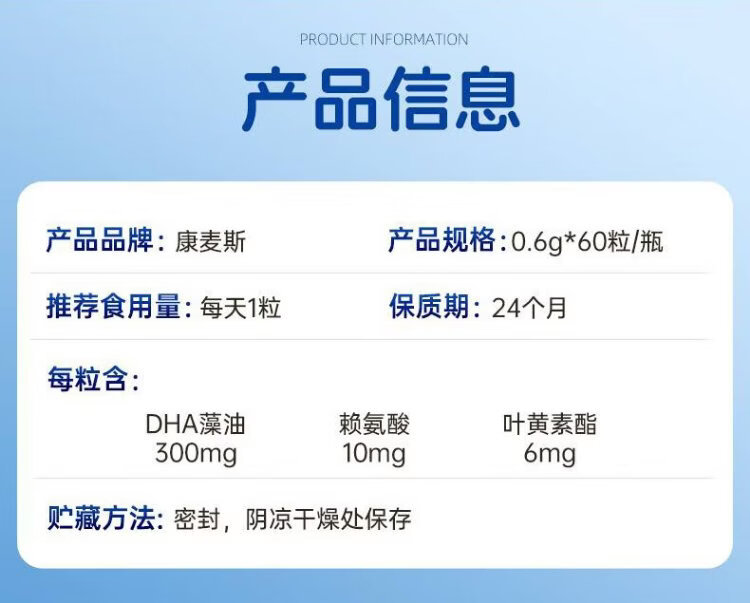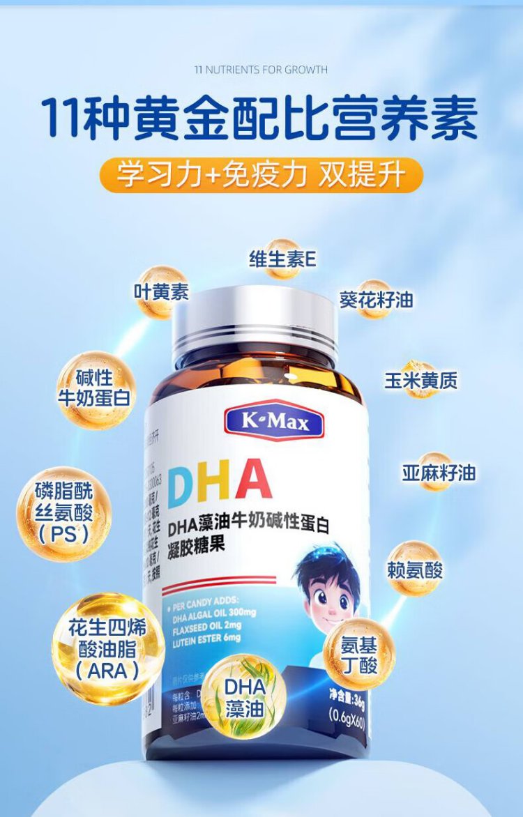 Comex children's dha algae oil, toddlers and students aged 3 and above, 6-12-18 years old, walnut oil, lutein, 60 capsules * 1 bottle, trial pack