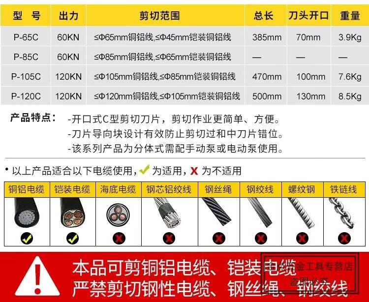 Lanpody open-type electric hydraulic cable cutter split cable cutter P65C105C120C quick disconnection cable cutter P-150C with 1.5KW solenoid valve