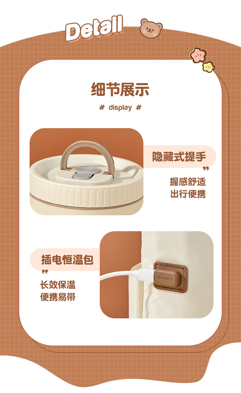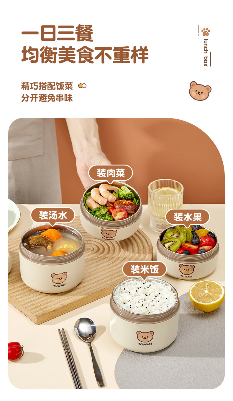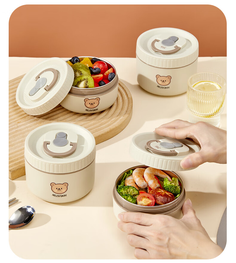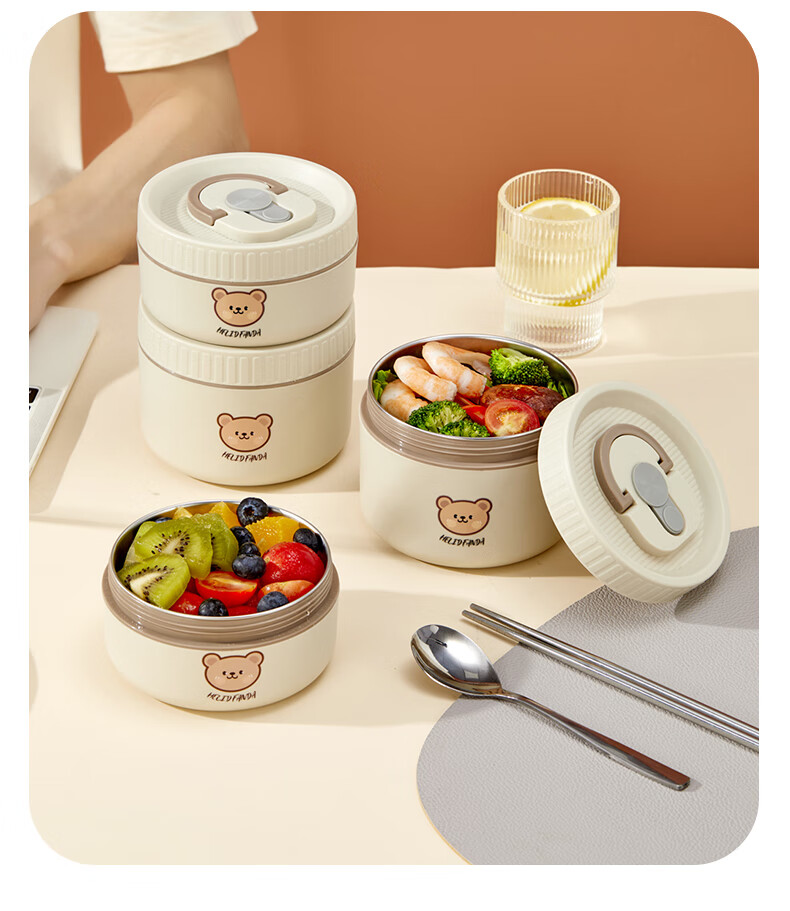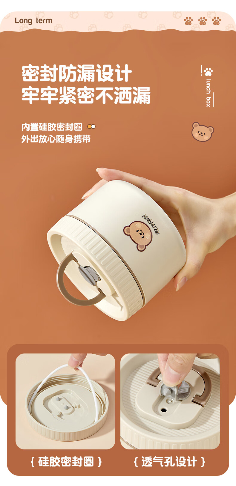 WORTHBUY 24-hour extra long insulated lunch box 316 stainless steel barrel office workers and students plug-in heated lunch box sealed box 304 rice white (1000ml) large + small + tableware + constant temperature bag