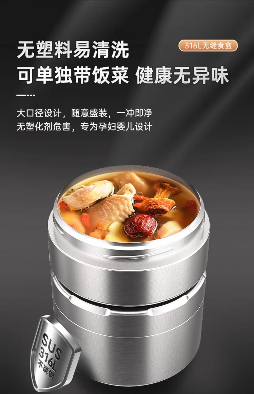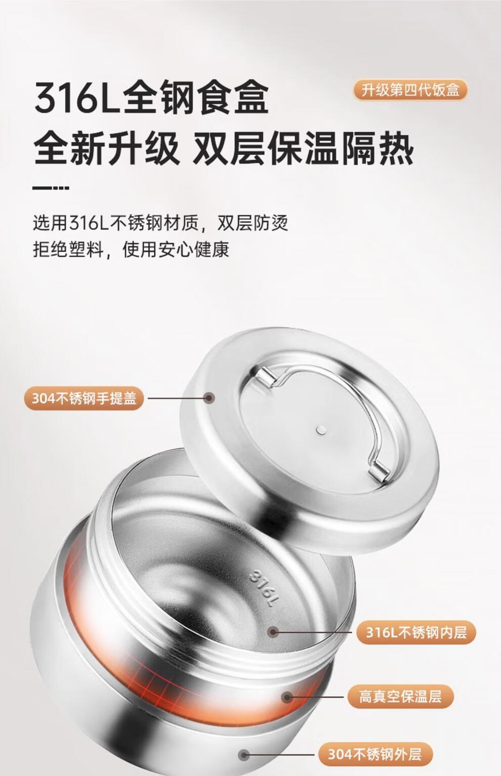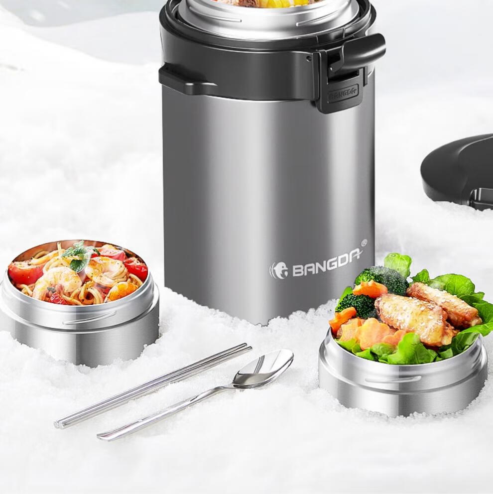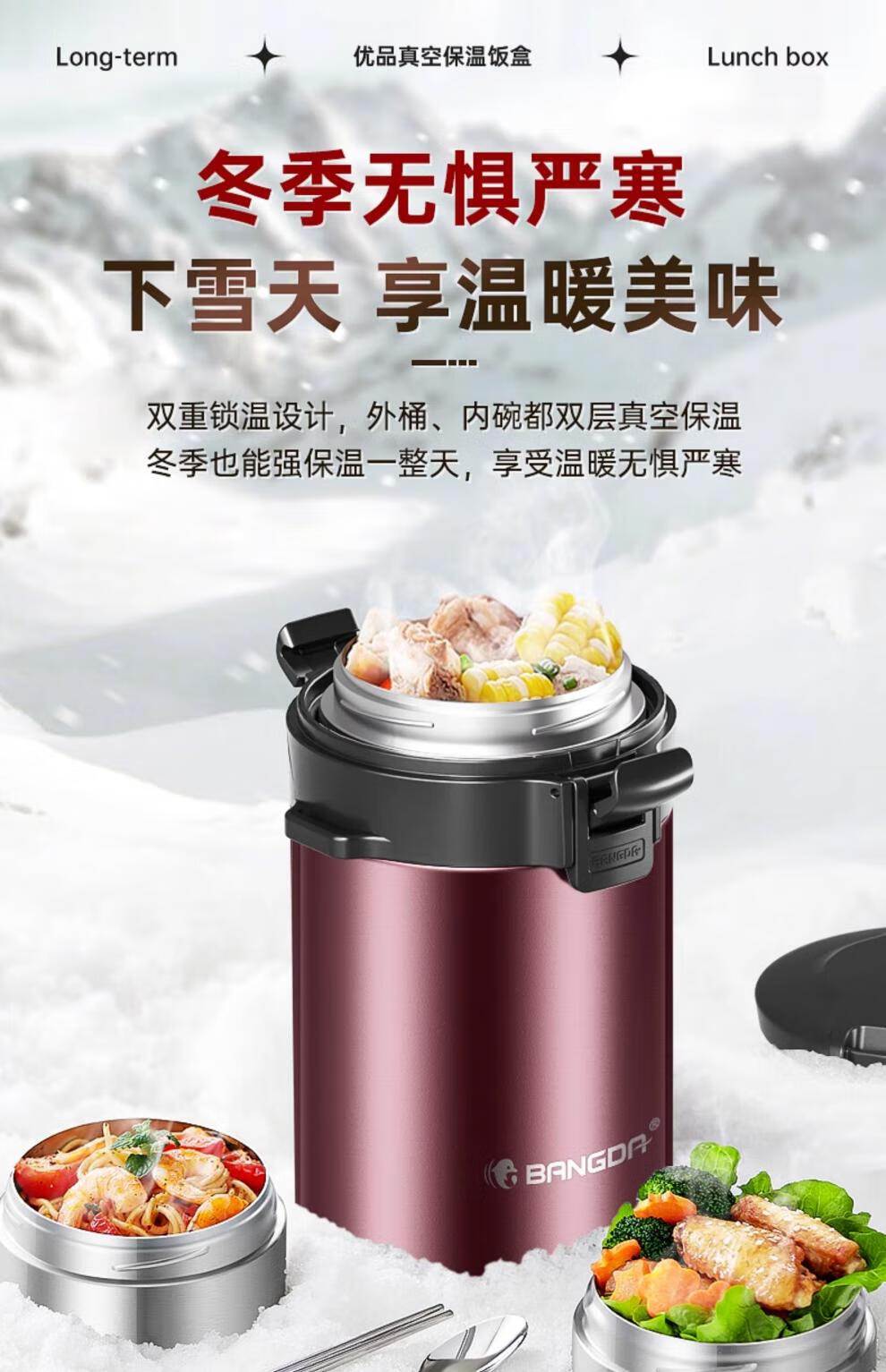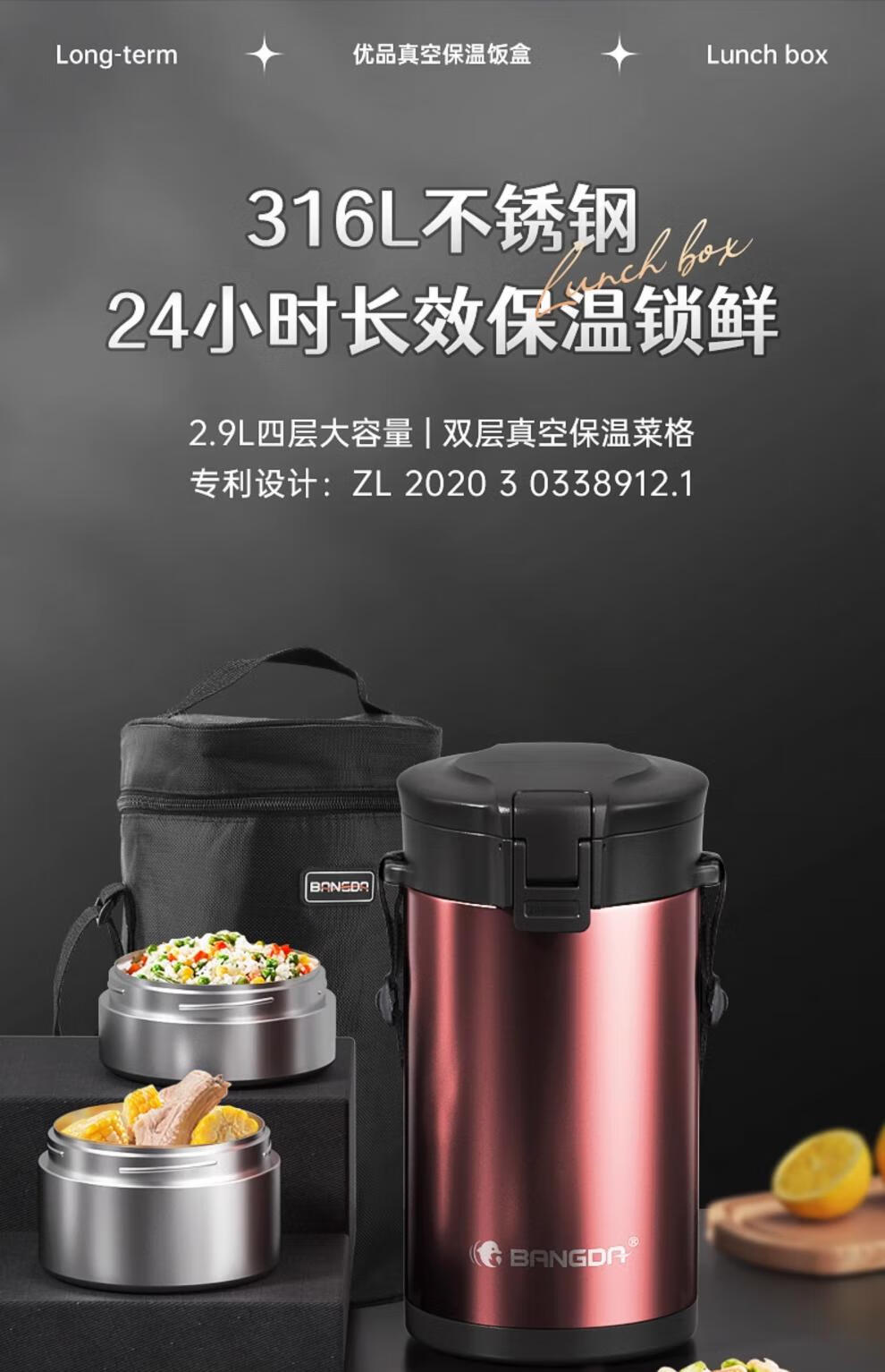 Bangda 24-hour extra long insulated lunch box bucket 316L stainless steel office workers and students large capacity multi-layer lunch box 316L stainless steel noble purple 2.9L_4 layers_free insulation bag+