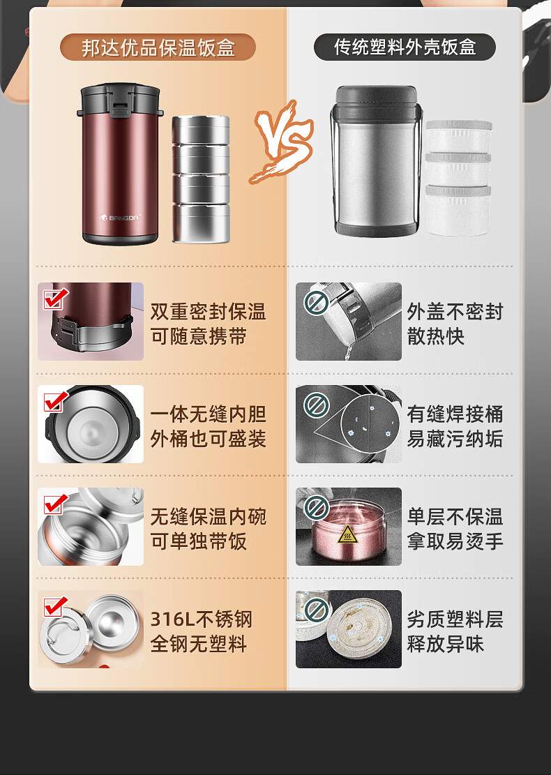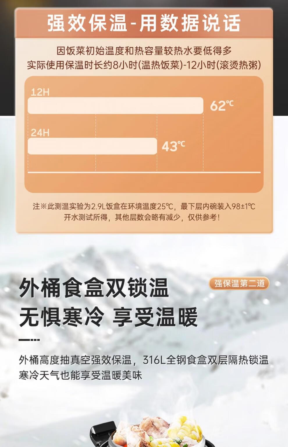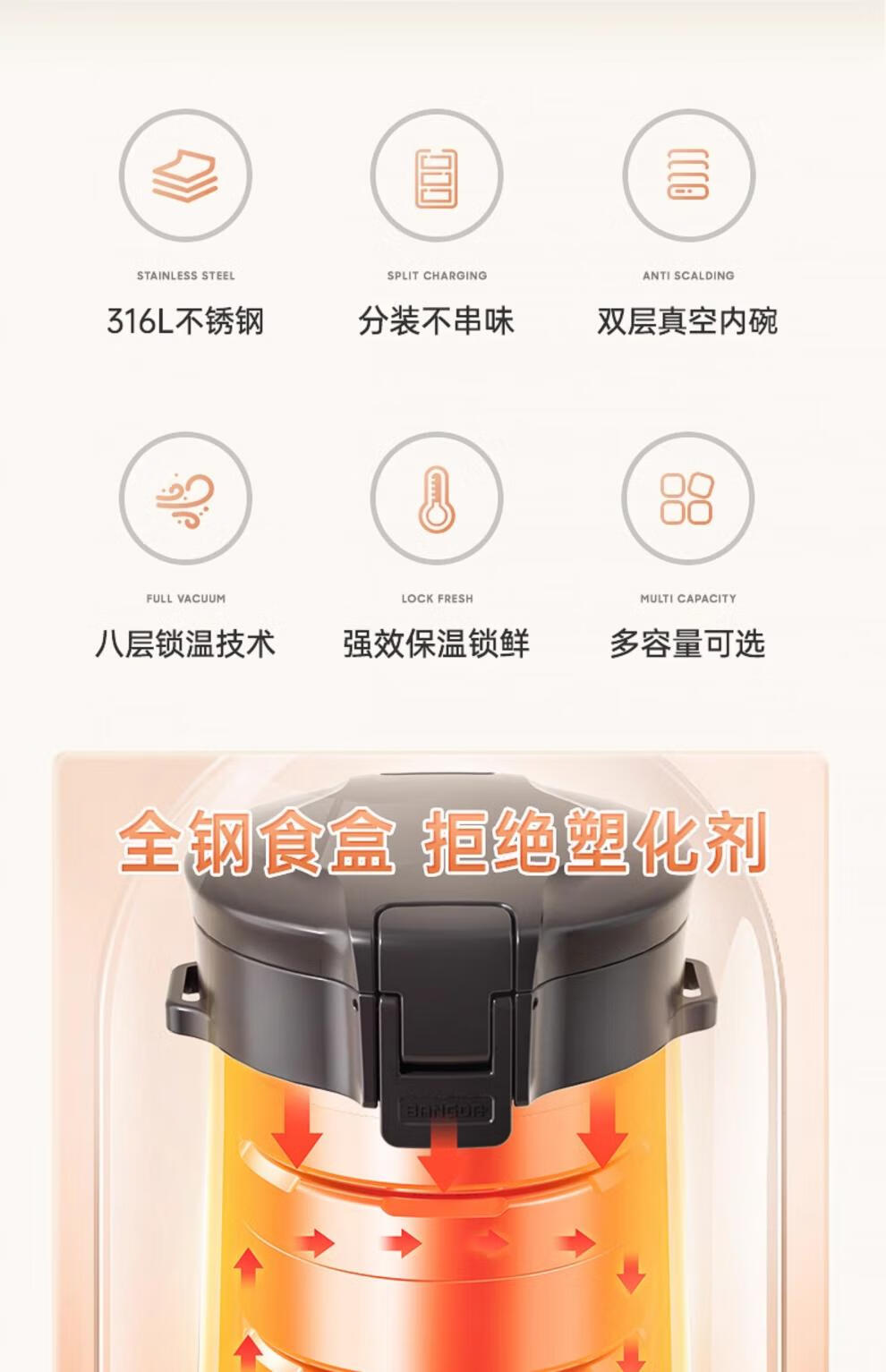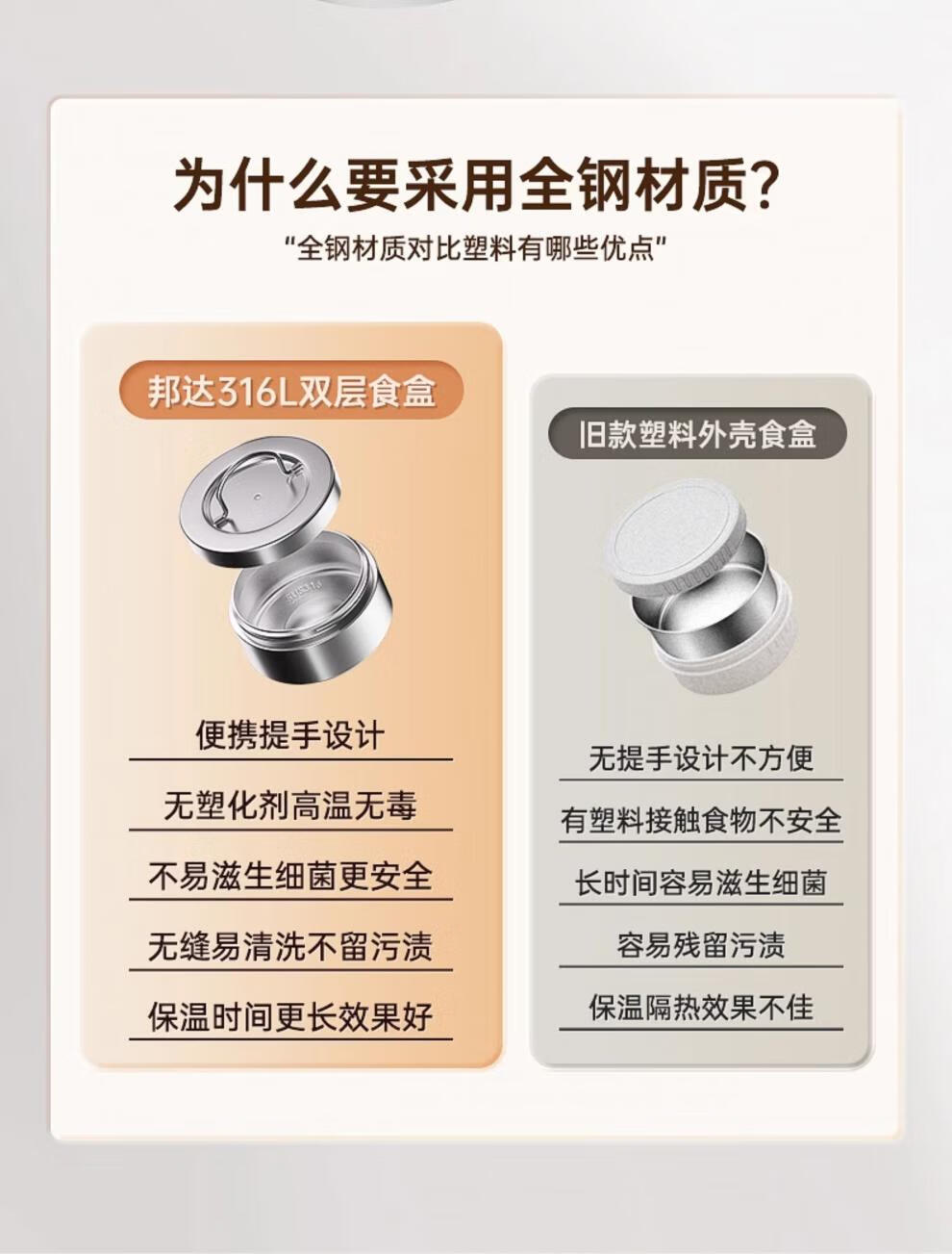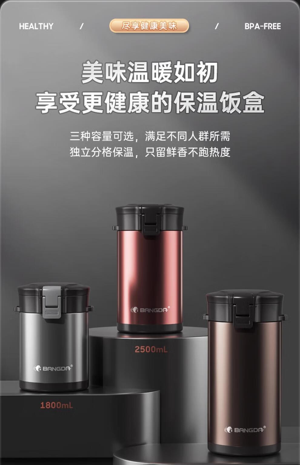 Bangda 24-hour extra long insulated lunch box bucket 316L stainless steel office workers and students large capacity multi-layer lunch box 316L stainless steel noble purple 2.9L_4 layers_free insulation bag+