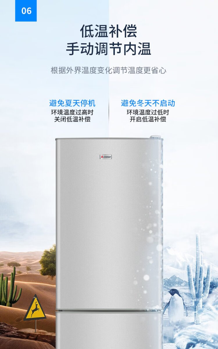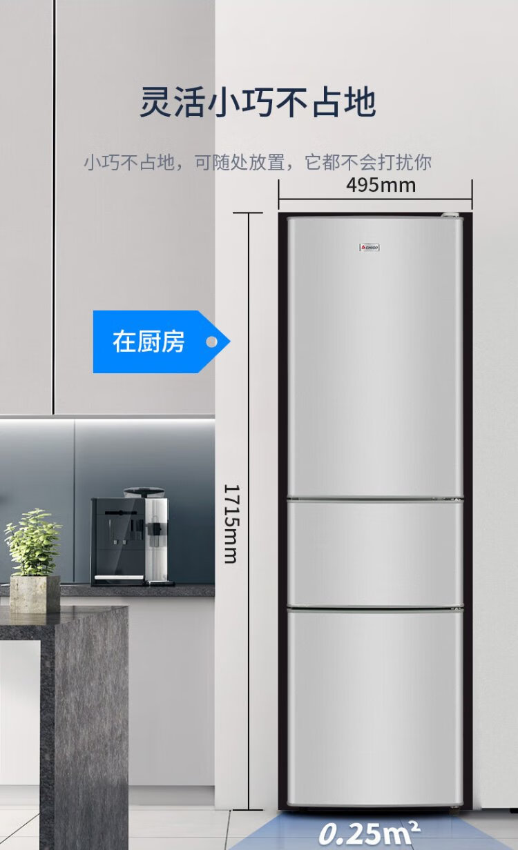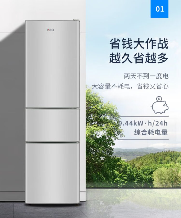 CHIGO 268-liter double-door refrigerator first-class energy efficiency household small double-door refrigeration-freezer energy-saving refrigerator office rental room large capacity power-saving bass trade-in 268 liters purification and deodorization upper refrigeration four layers lower freezer three-layer shelves dark gray