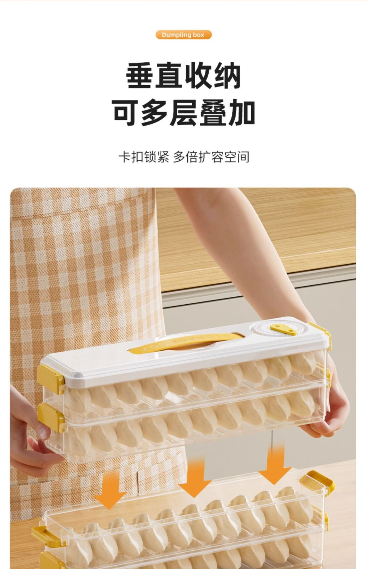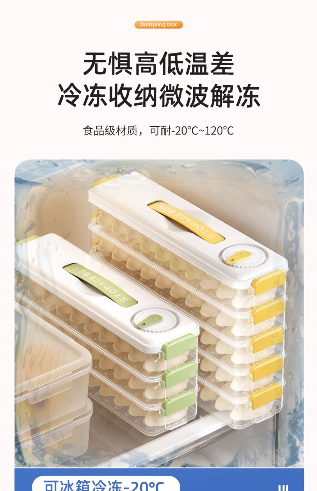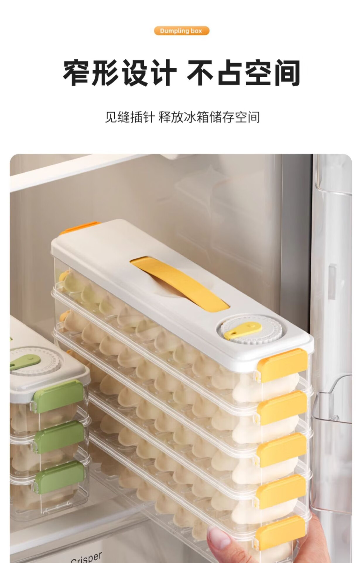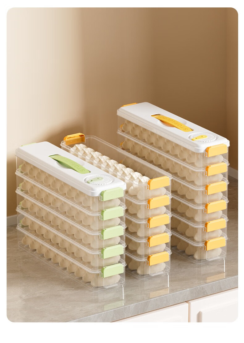 Seam dumpling freezer box refrigerator side door special crisper food-grade packing and organizing box space-saving dumpling box 5 layers 60 pieces yellow